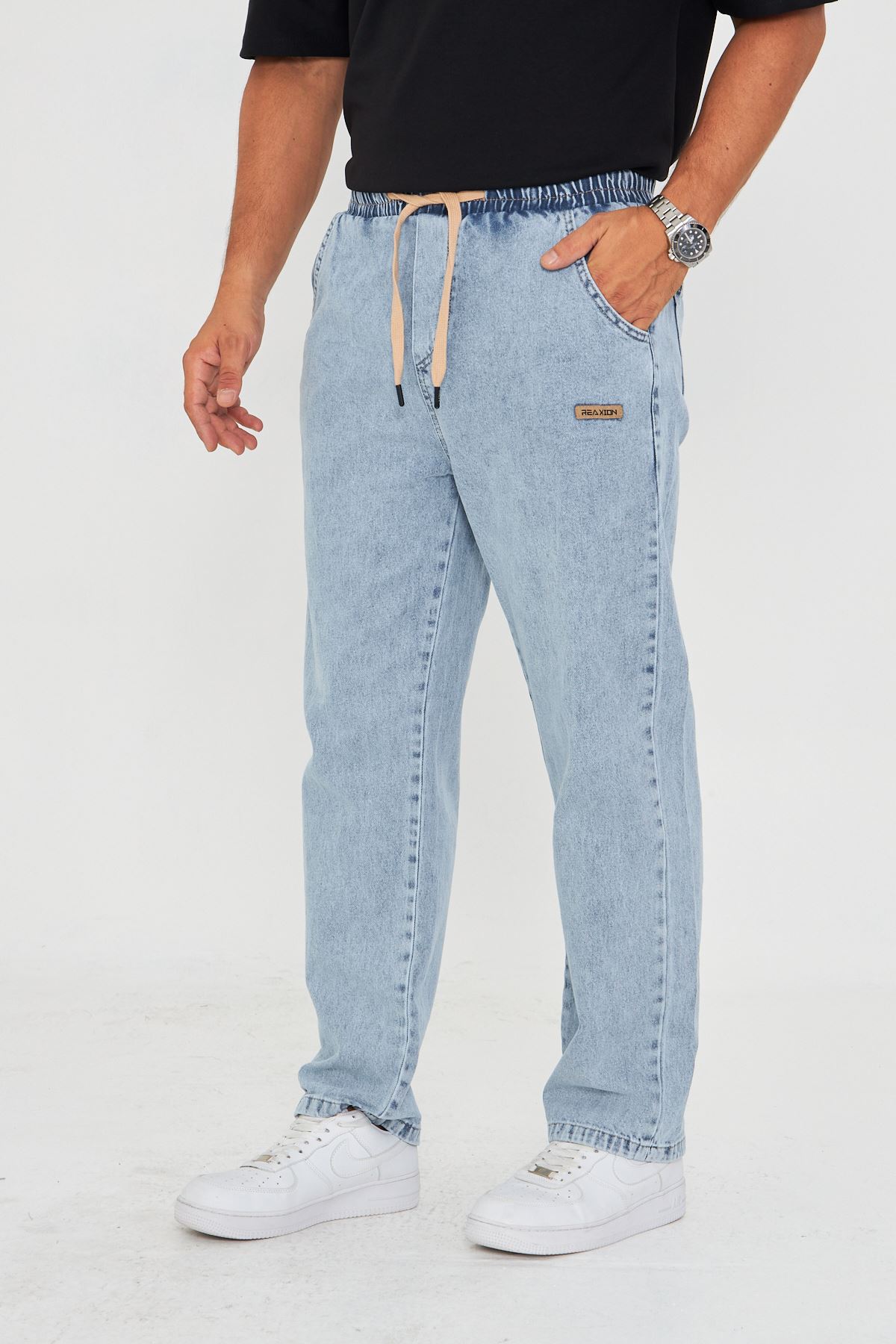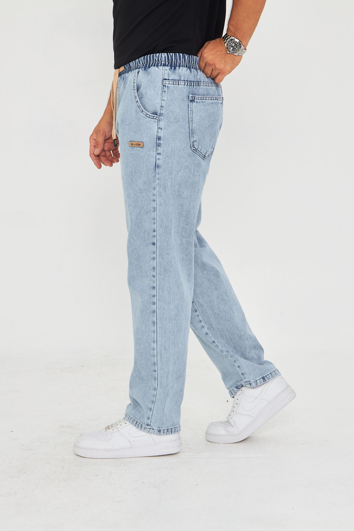Erkek Baggy Düz Şık Etiket Detaylı Kot Pantolon 713