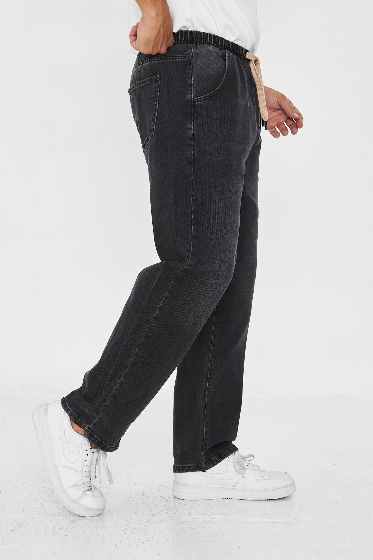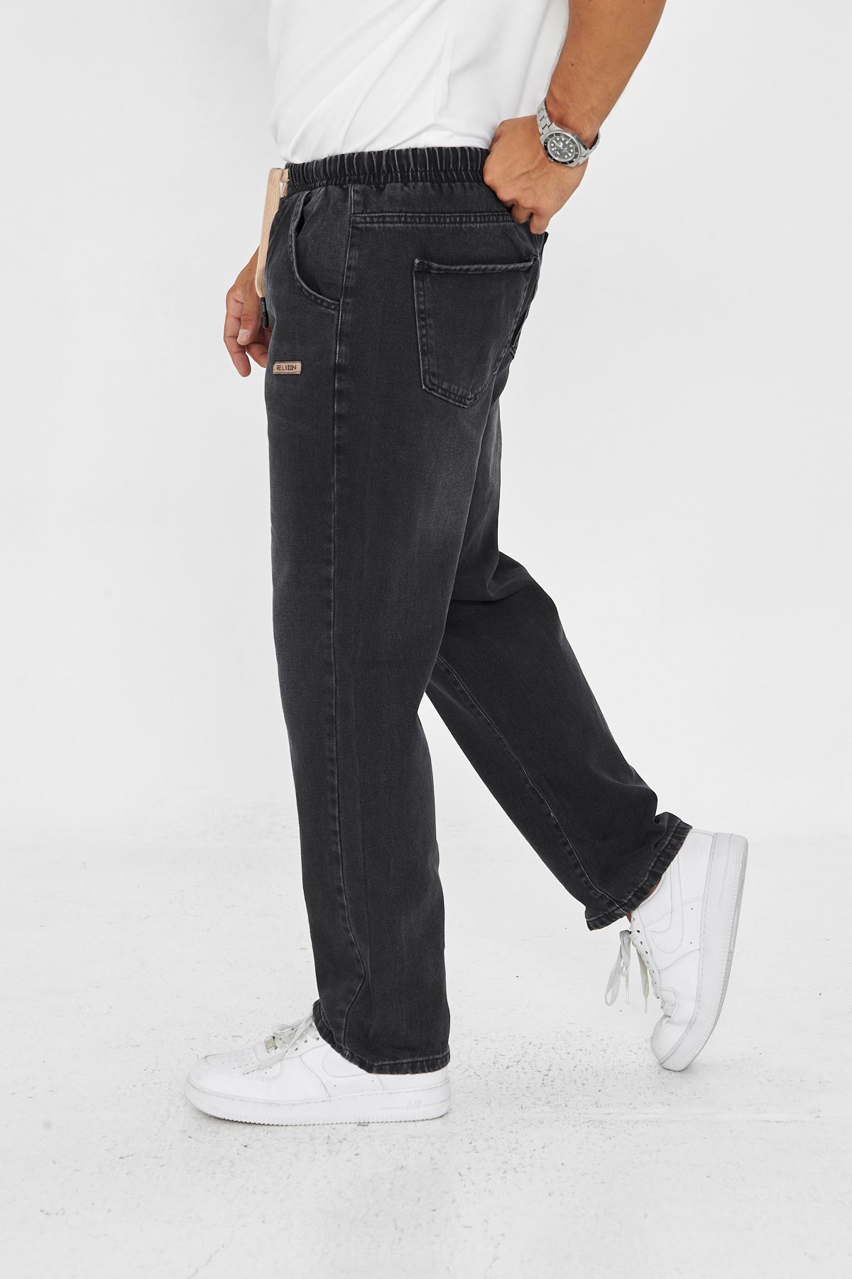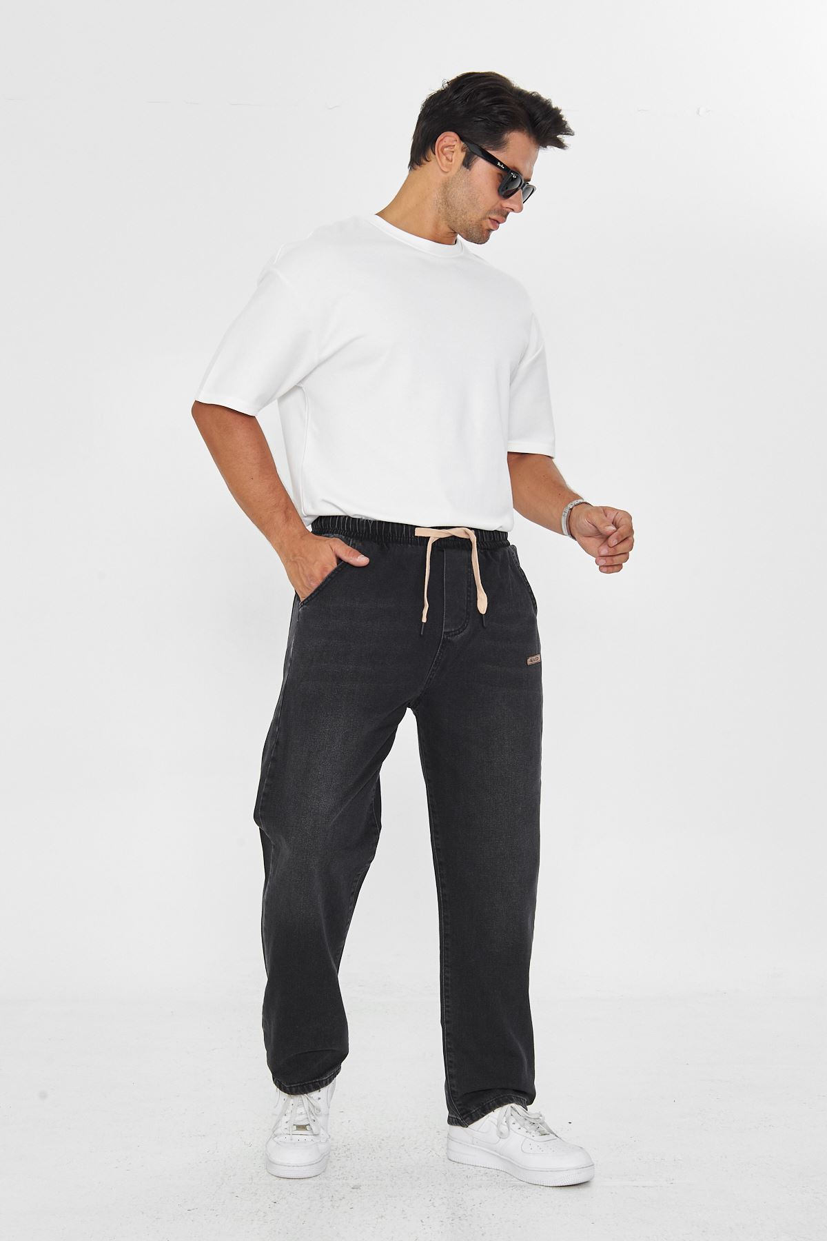 Erkek Baggy Düz Şık Etiket Detaylı Kot Pantolon 713