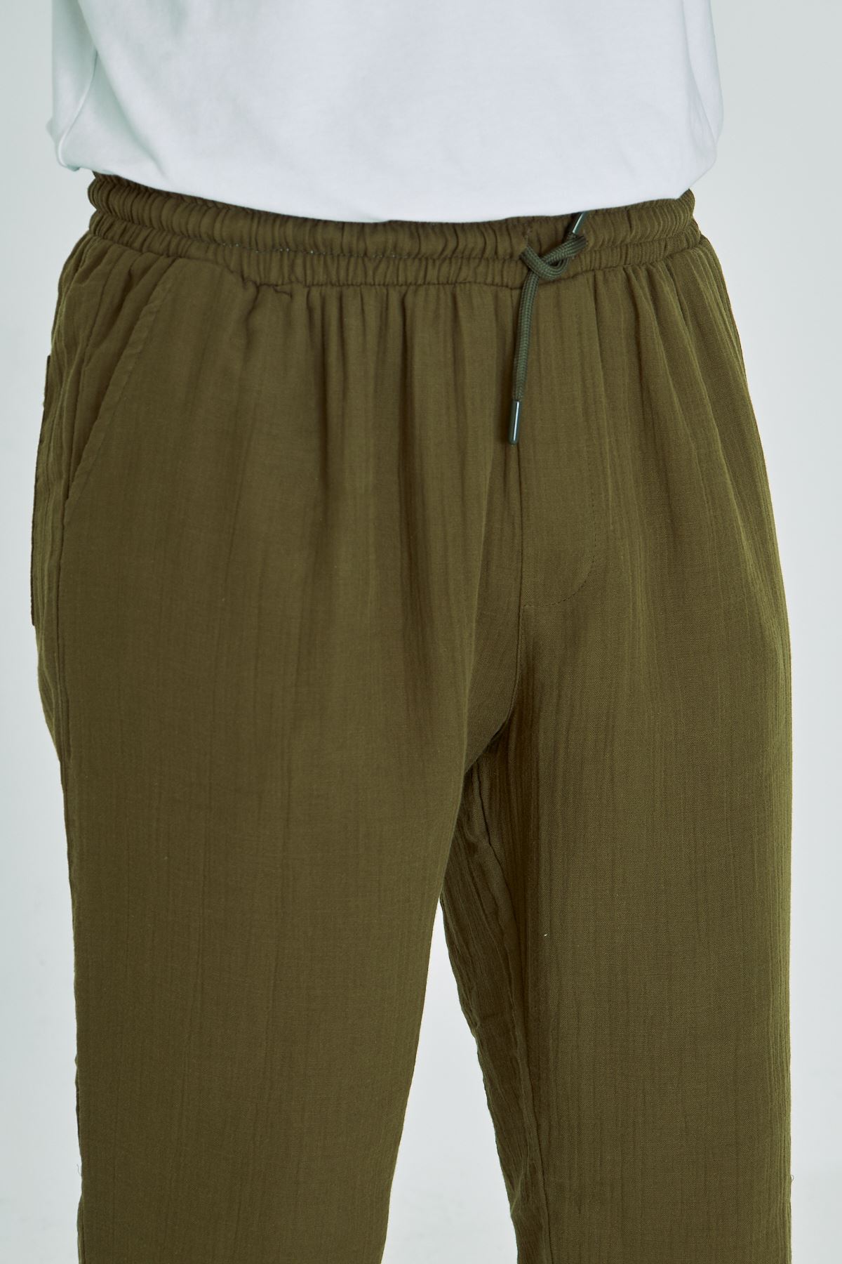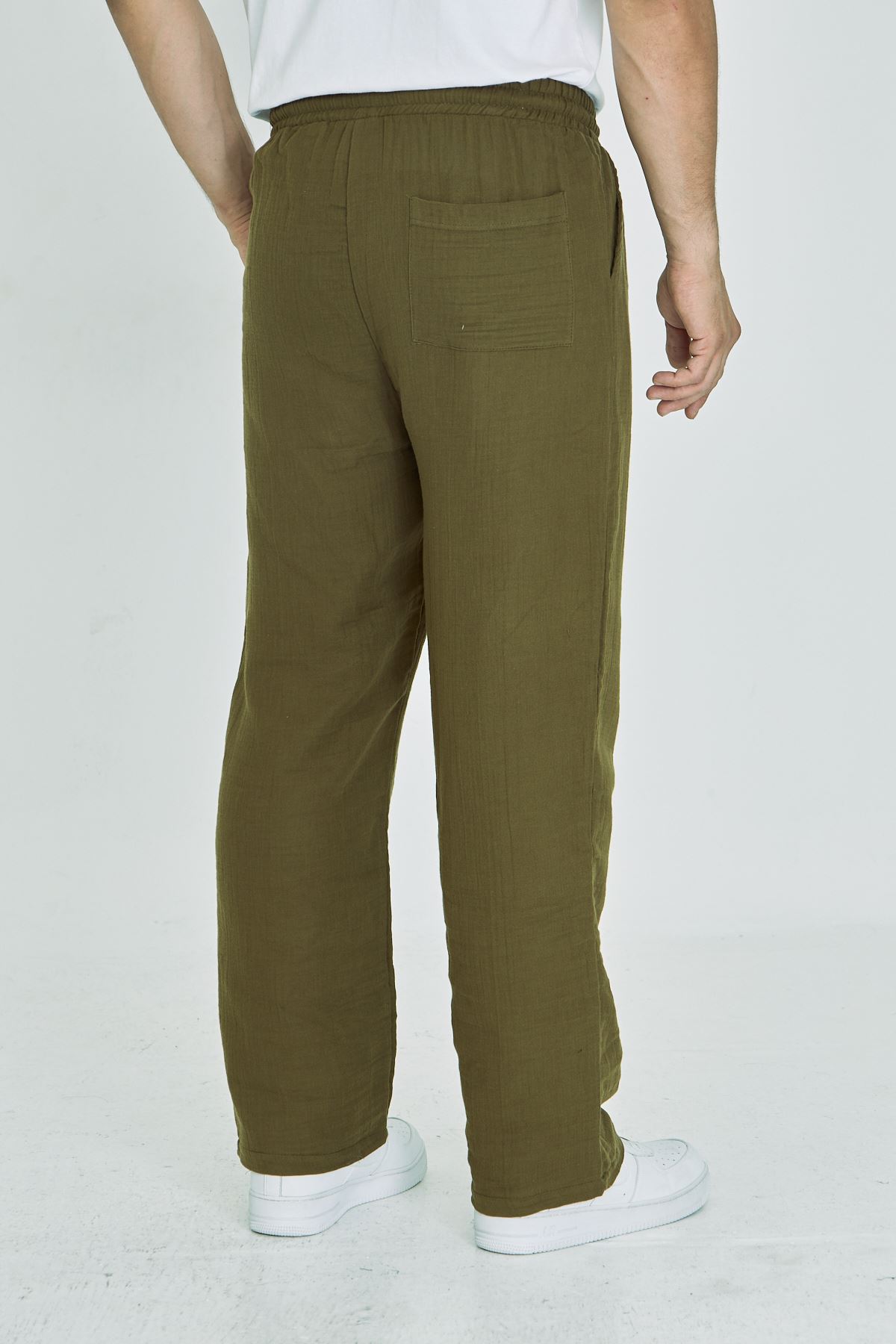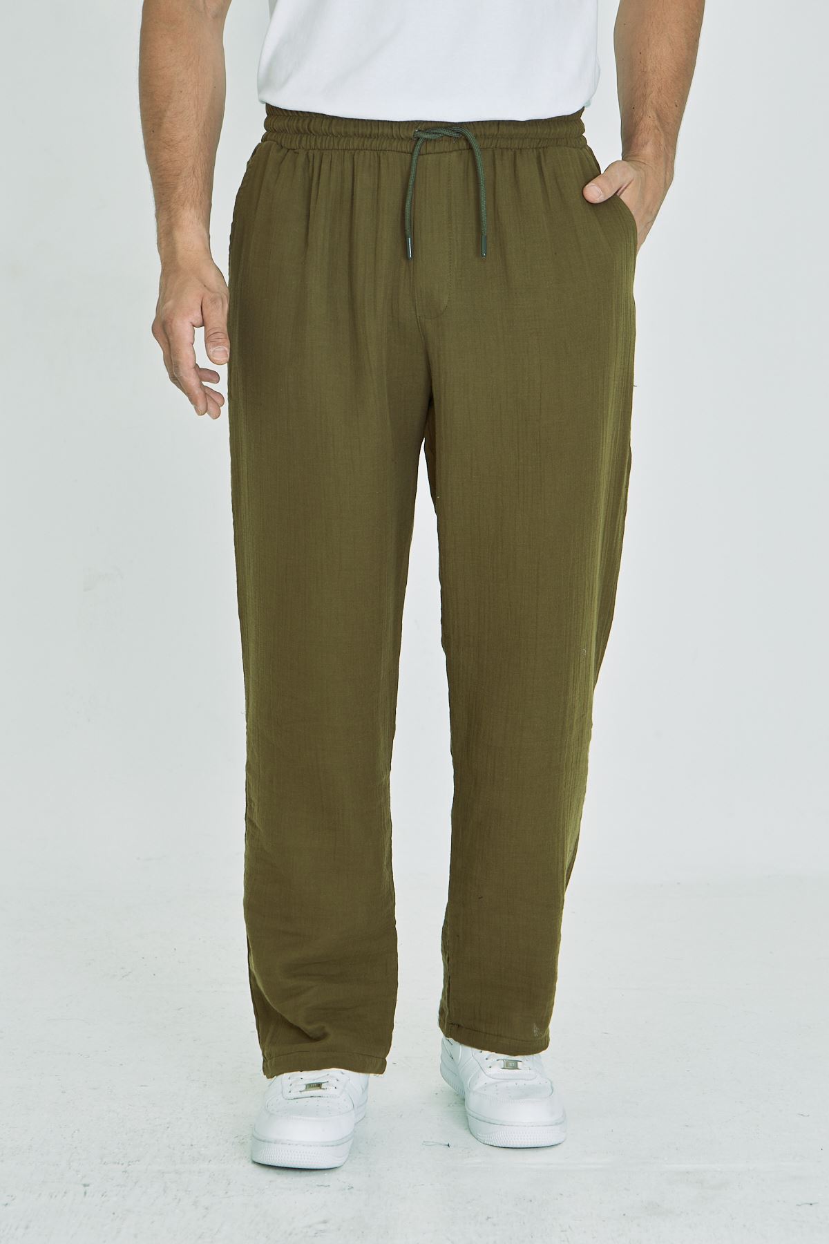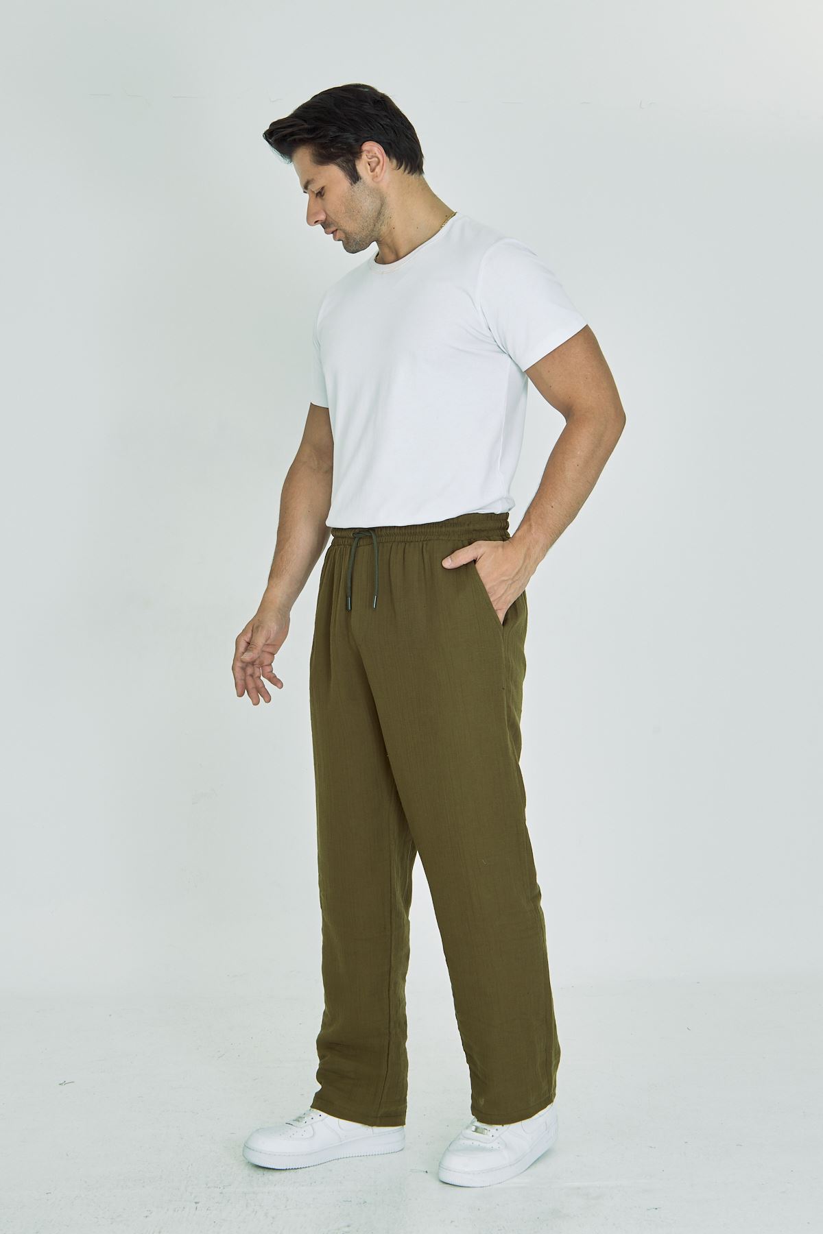Erkek Baggy Müslin Keten Bel Bağcıklı Lastikli Düz Paça Pantolon