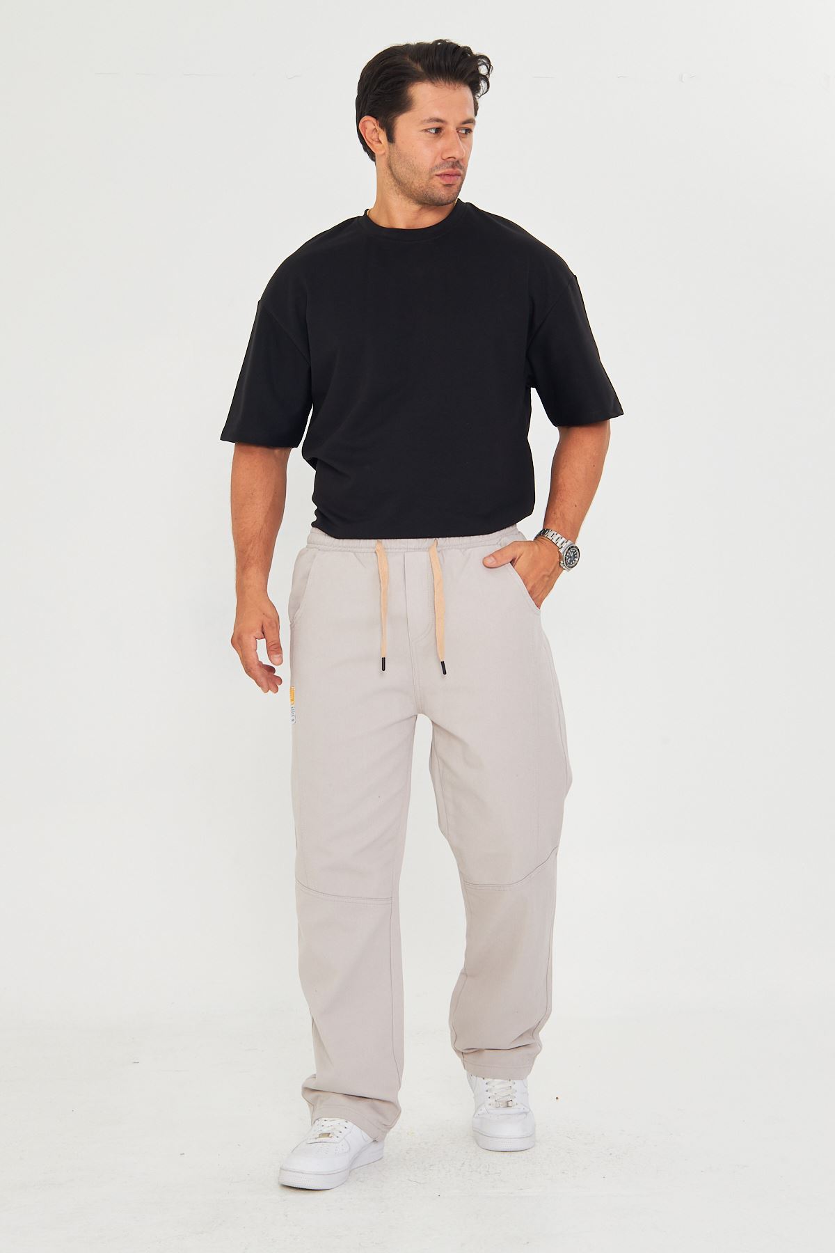 Erkek Baggy Parçalı Desen Yan Etiketli Gabardin Pantolon 721