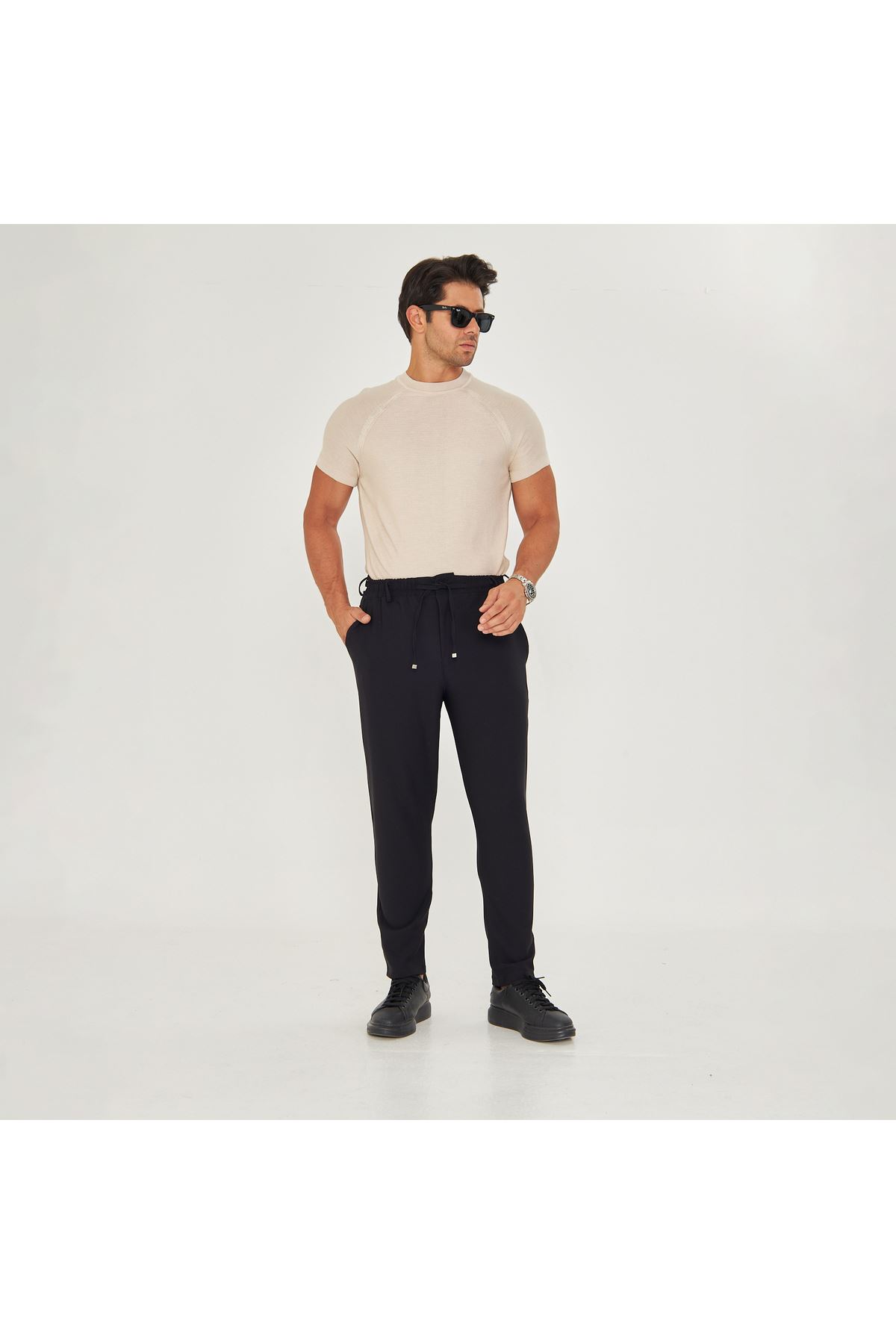 - Klasik tasarımıyla her ortamda şıklığınızı koruyun; düğümlü bel kemerleri ve bağcıklı yapısı ile kolayca ayarlama imkanı sunar.; - Her mevsim rahatlıkla tercih edebileceğiniz bu pantolon, orta kalınlığı sayesinde dört mevsim konfor sağlar.; - Sade ve düz deseniyle zamansız bir tarz yaratırken, 4 cep detayı pratik kullanım sunar.; - Baskısız ve astarsız yapısıyla minimalist bir görünüm elde etmenize olanak tanır.; - Orta silueti ve yarım pat fermuar kapama şekliyle modern bir dokunuş katarken esnekliği sayesinde gün boyu rahat hareket etme özgürlüğü verir.; - Günlük kullanım için ideal olan bu pantolon, slim fit kesimiyle vücut hatlarınıza mükemmel uyum sağlar.; - Esnek yapısı sayesinde farklı bedenlere kolayca uyum göstererek konforlu bir deneyim yaşatır.; - Genç ve yetişkin erkeklerin beğenisine sunulan bu ürün, günlük giyimin vazgeçilmez parçasıdır.; - Türkiye'de üretilmiş olup yerel malzemelerle kalite standartlarına uygun şekilde hazırlanmıştır.; - Dokuma kumaşı dayanıklılığı artırarak uzun süreli kullanım vaad ederken regular boy kesimiyle her vücut tipine hitap eder.; - Normal bel yüksekliği ile hem rahatlık hem de şık duruş sunarken düz paça tasarımı modern çizgilere sahiptir.