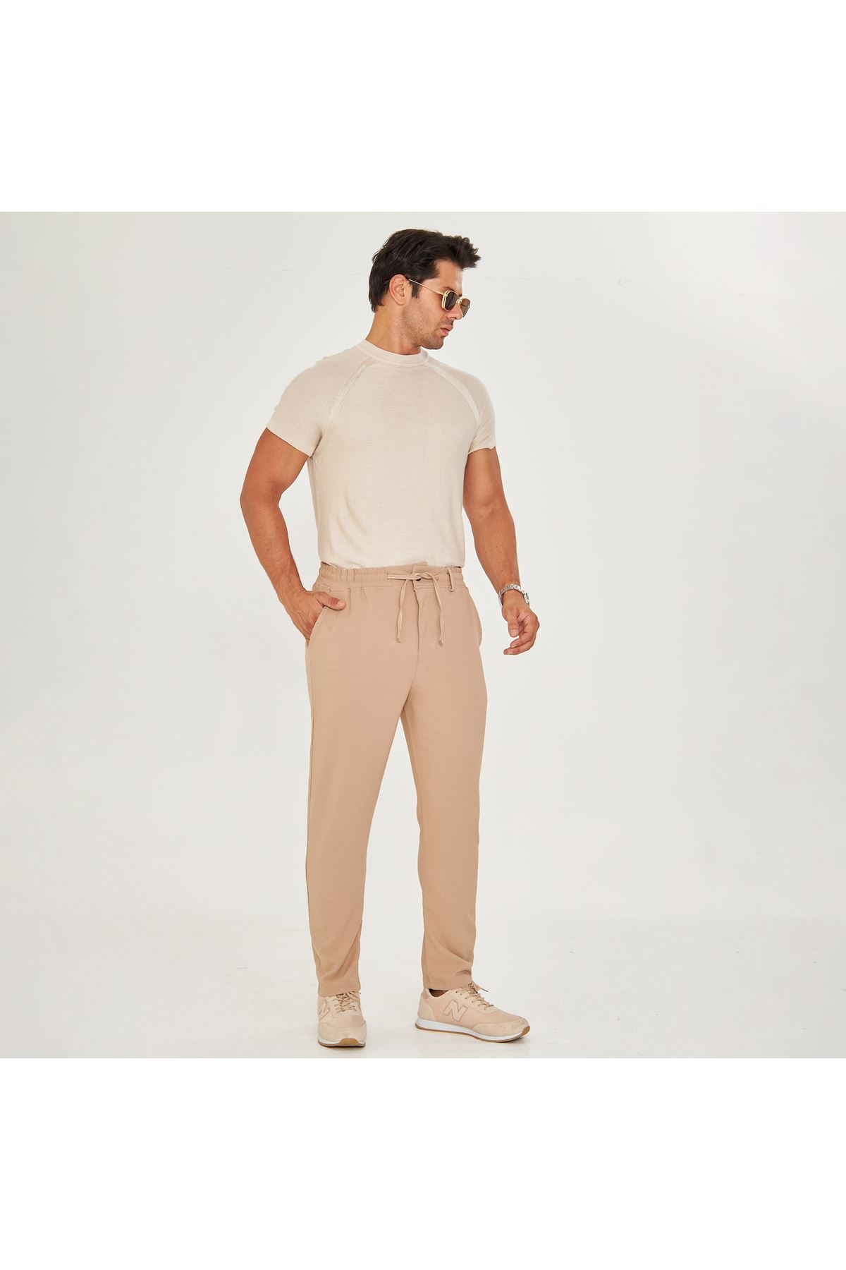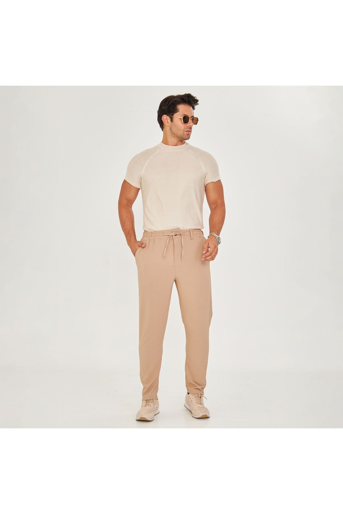 Erkek Bel Kemerli Klasik Bez Ayağı Kumaş Jogger