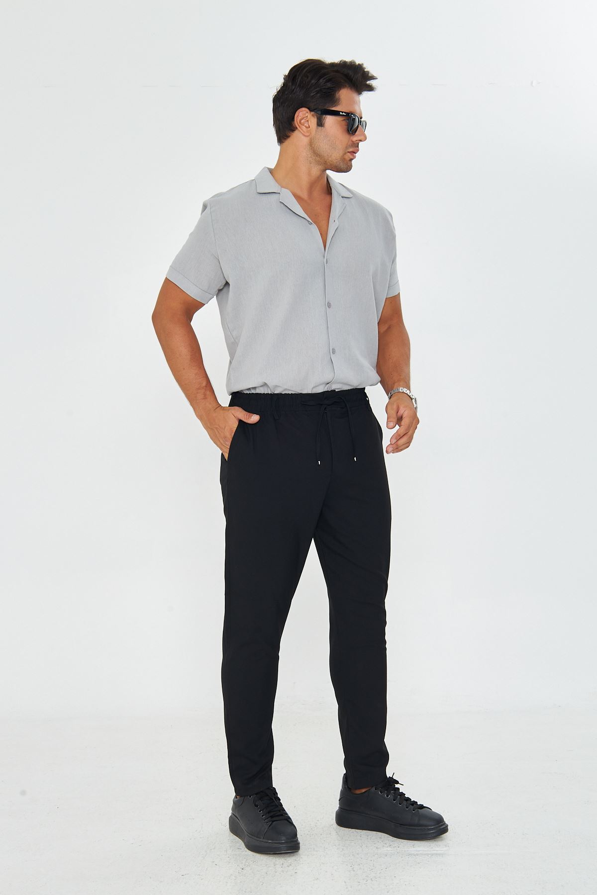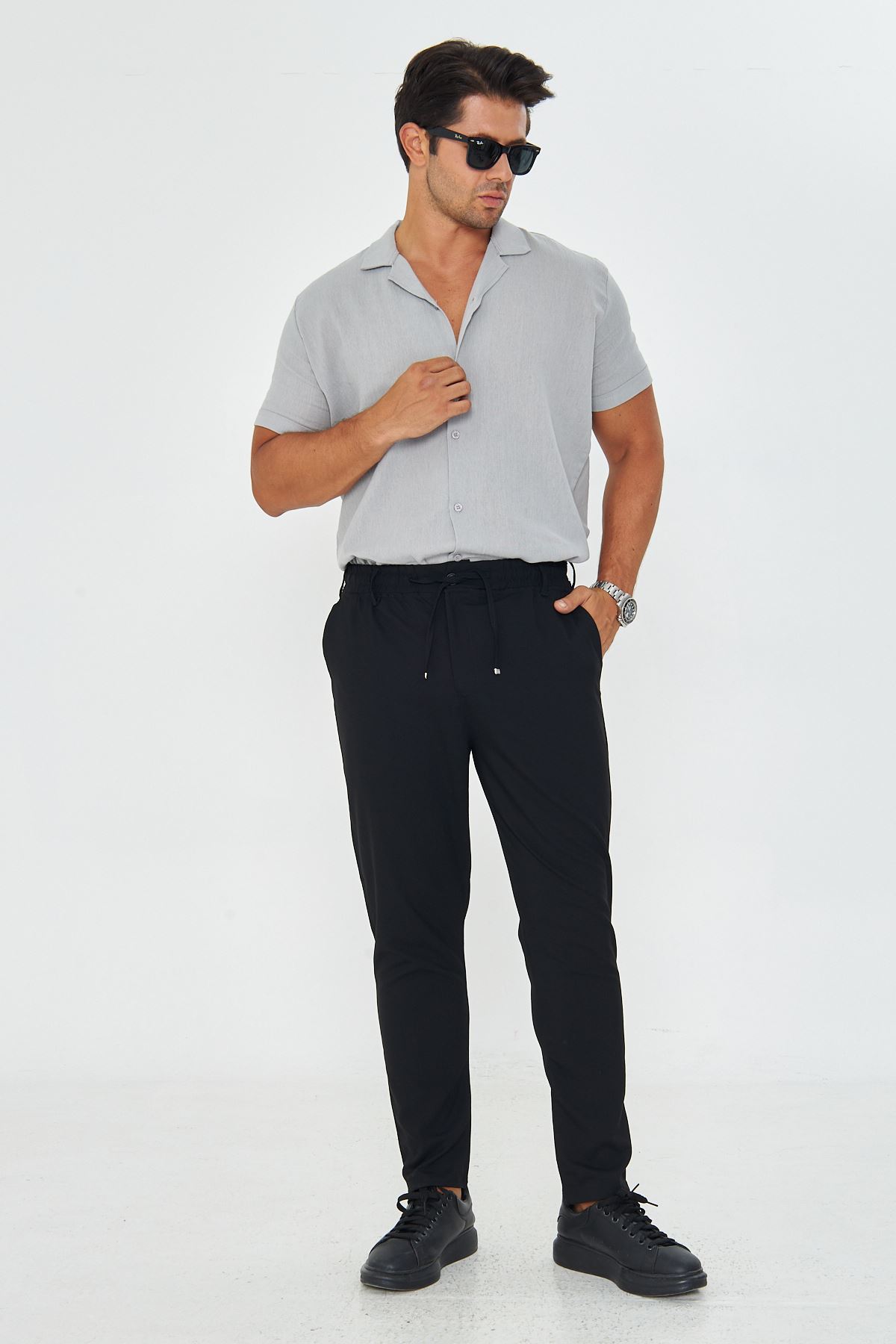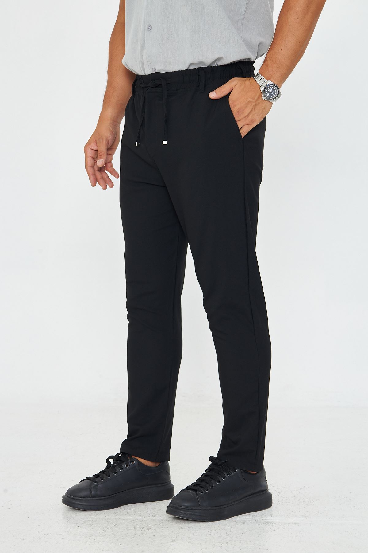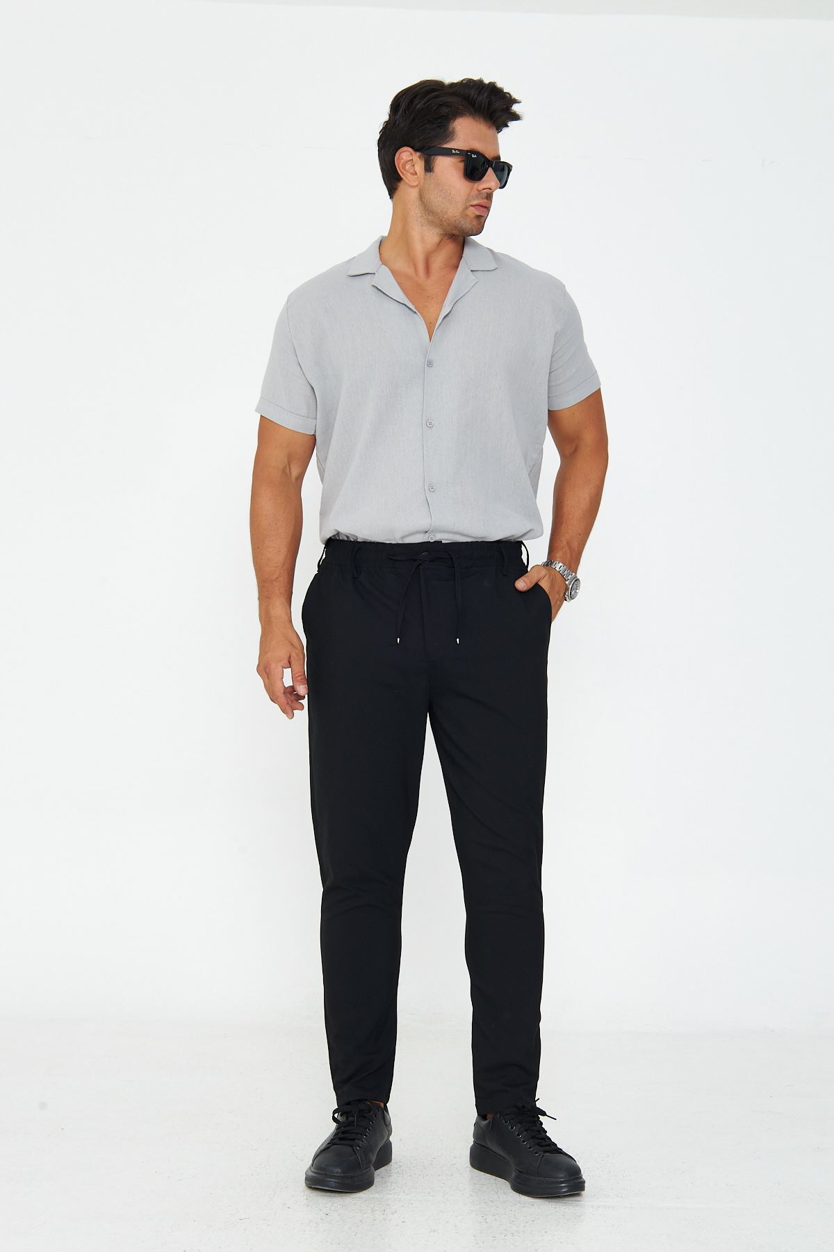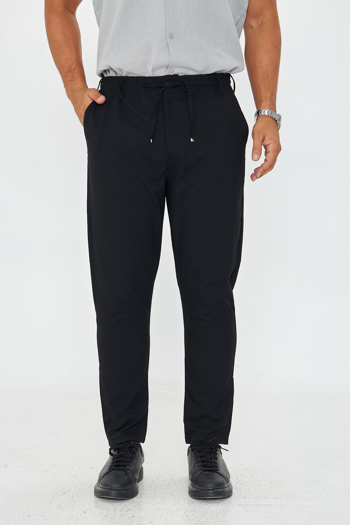 Erkek Bel Kemerli Klasik Bez Ayağı Kumaş Jogger