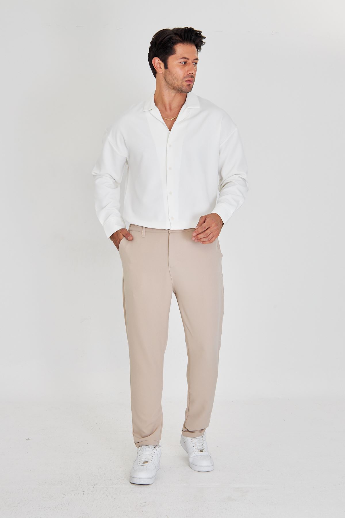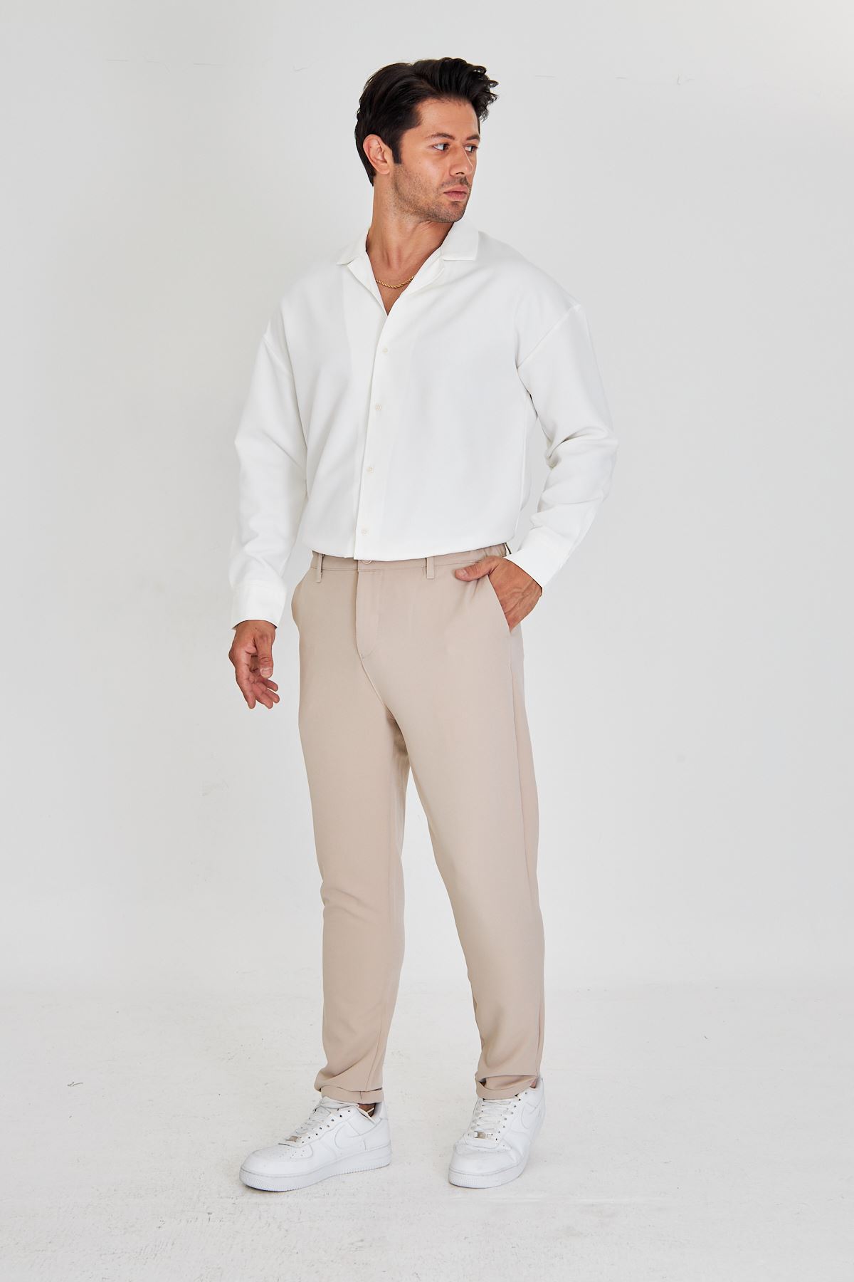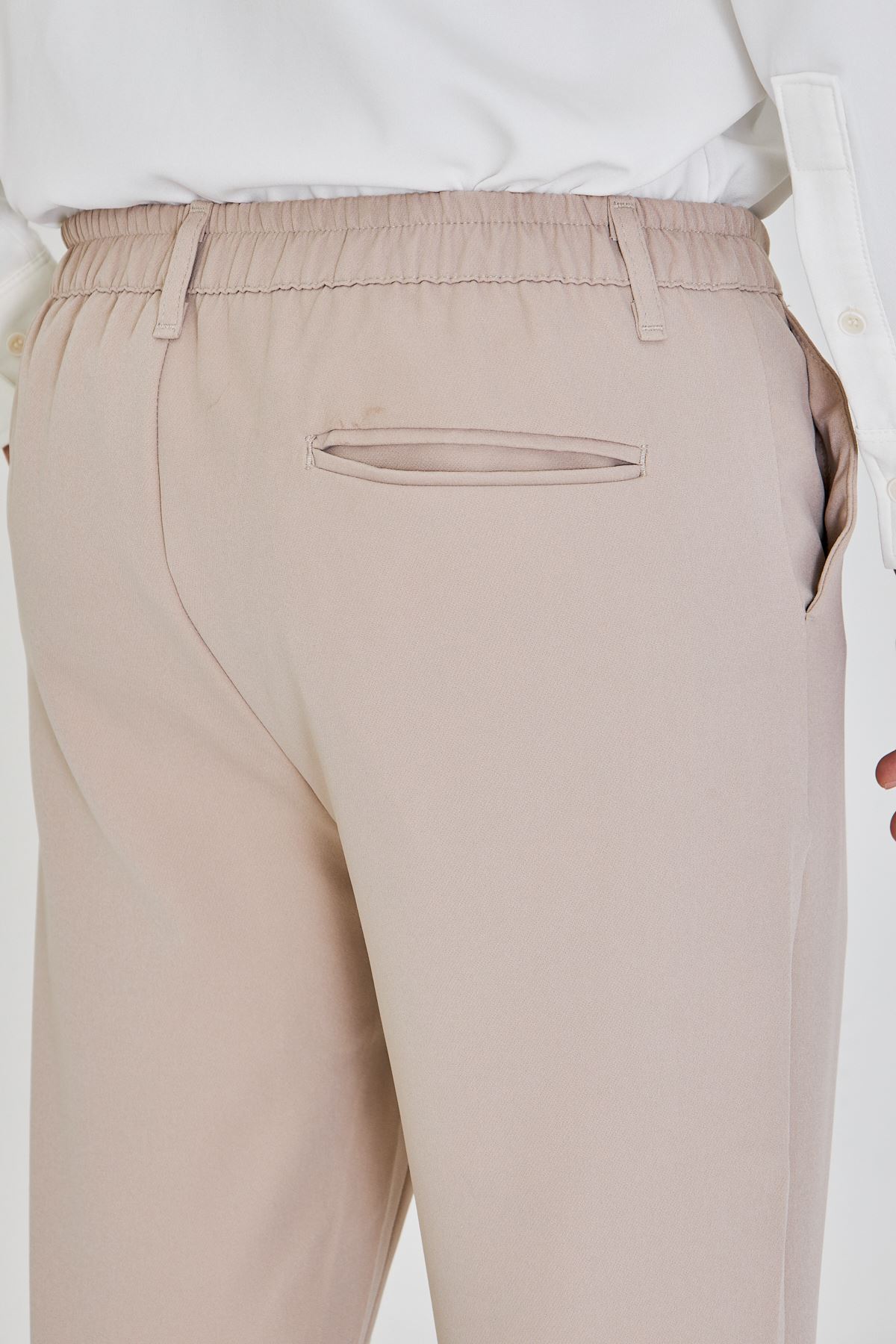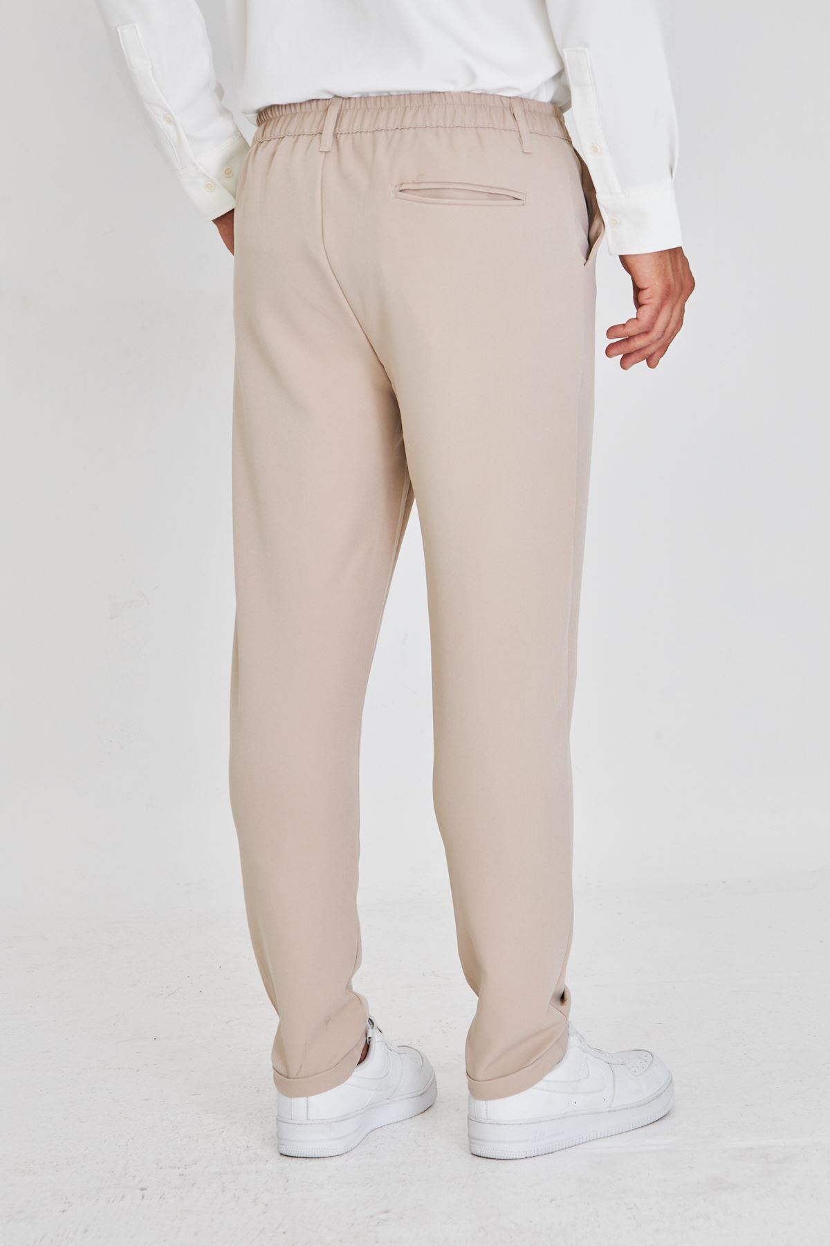 - Rahatlık ve şıklığı bir arada sunan beli lastikli tasarımı ile gün boyu konfor sağlar.; - Üç adet fonksiyonel cep detayı, günlük eşyalarınız için pratik saklama alanları sunar.; - Orta kalınlıkta dokusuyla mevsim geçişlerinde ideal kullanım imkanı tanır.; - Her sezon tercih edilebilen klasik tarzıyla gardırobunuzun vazgeçilmezi olacak.; - Keten görünümlü dokuması sayesinde hafif ve nefes alabilen bir yapıya sahiptir.; - Jogger siluetiyle modern ve rahat bir görünüm kazandırırken, slim fit kesimi vücut hatlarınıza mükemmel uyum sağlar.; - Cool & comfort persona'sına hitap ederek günlük kullanım için idealdir; hem şık hem de konforlu hissetmenizi sağlar.; - Tekli paketiyle kolayca tercih edebileceğiniz bu pantolon, pratikliği ön planda tutan kullanıcılar için uygundur.; - Kemerli yapısı sayesinde belinizi istediğiniz şekilde ayarlayabilirsiniz; böylece kişisel tarzınıza göre özelleştirme imkanına sahip olursunuz.; - Yarım pat fermuar kapama şekliyle pratik giyip çıkarma avantajına sahip olursunuz.; - Baskısız tasarım ile sade ve zamansız bir stil sunarken, düz deseniyle her türlü üst giyimle uyum içinde kombinlenebilir.; - Klasik ortamlarda bile şıklığınızdan ödün vermeden rahatlıkla tercih edebileceğiniz bir seçenektir.; - Duble paça detayı modern çizgilere sahipken aynı zamanda hareket özgürlüğü de tanır.; - Dokuma materyali dayanıklılığı arttırarak uzun süreli kullanım vaat eder.; - Türkiye menşeli olmasıyla yerel üretim avantajlarından faydalanırken kalite standartlarına da güvenebilirsiniz.