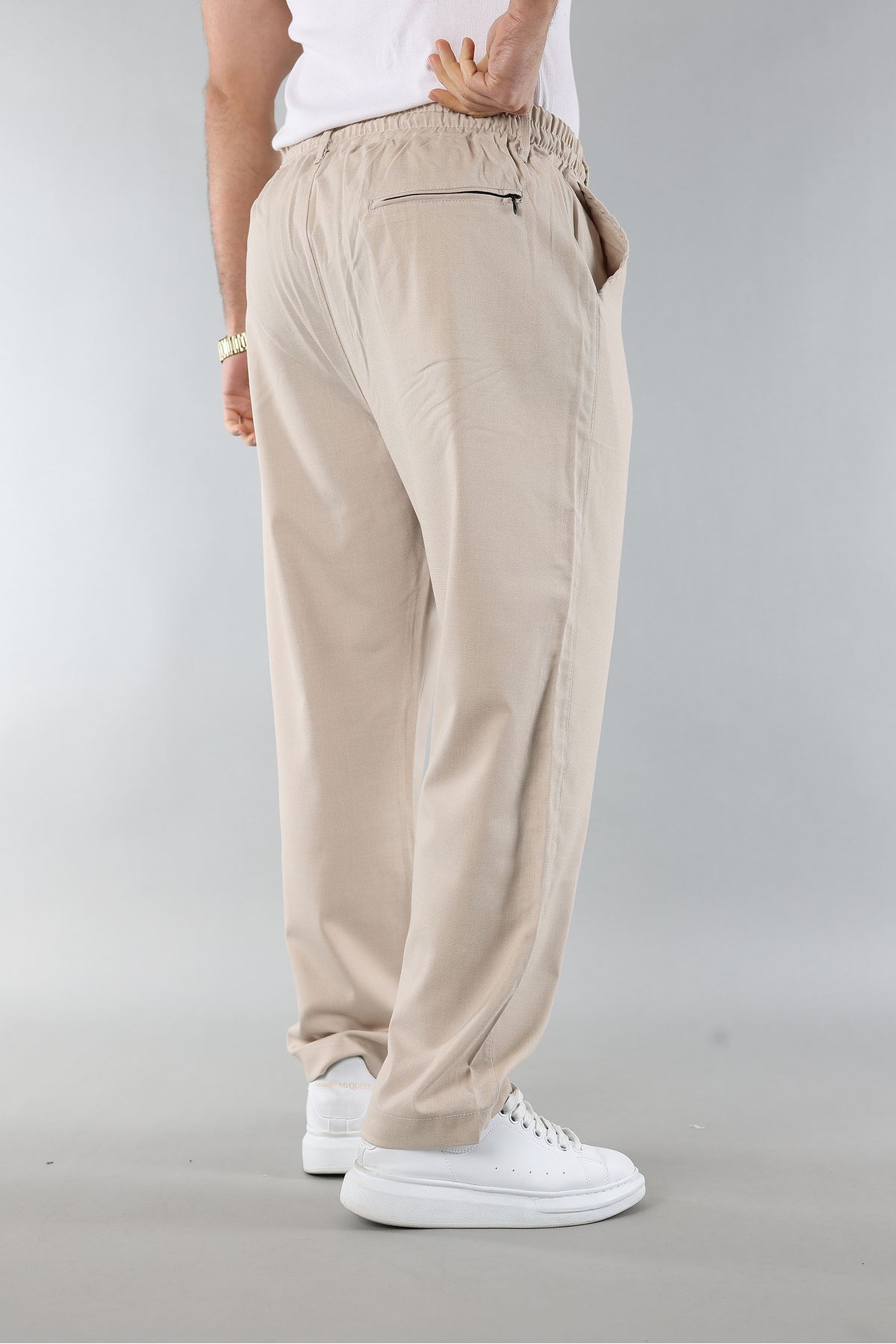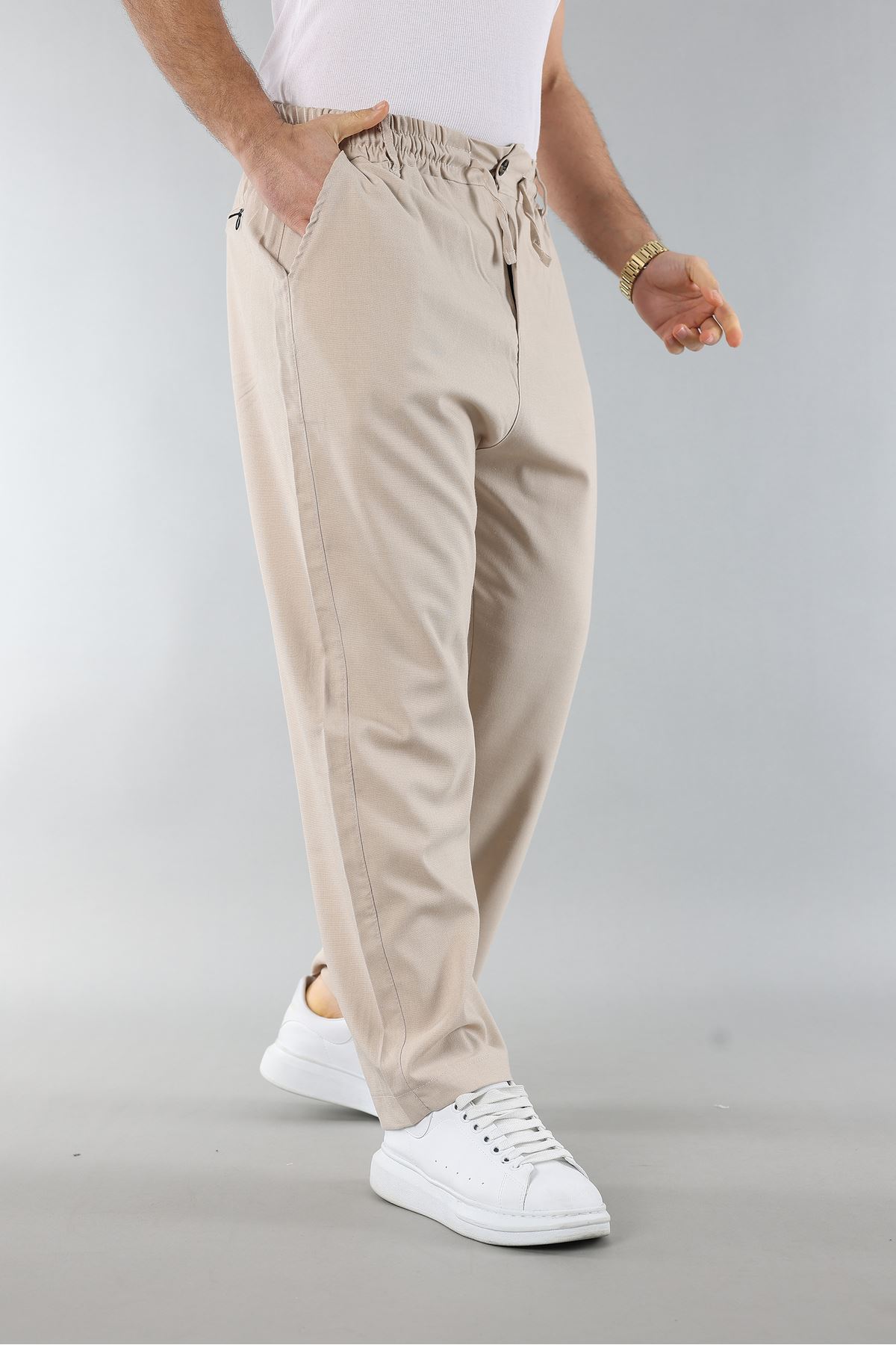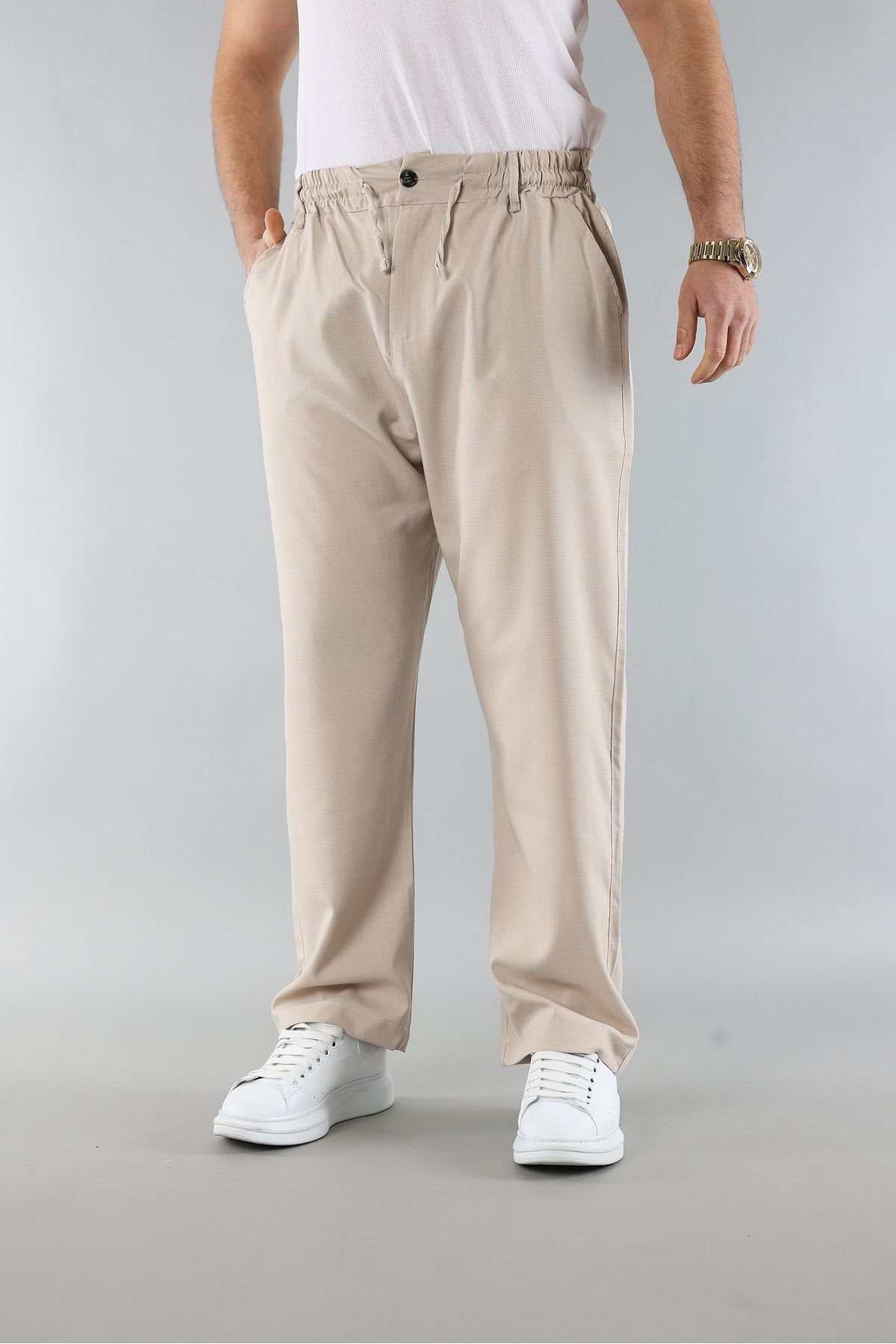- Rahat kesimi ile günlük kullanım için ideal, bol paça baggy jogger pantolon.; - Her mevsime uygun ince yapısı sayesinde konforlu bir deneyim sunar.; - Astarsız tasarımıyla hafif ve nefes alabilen bir yapıya sahiptir.; - Üç adet cep detayı ile pratik kullanım imkanı sağlar.; - Biyeli tasarımı ile şık bir görünüm kazandırırken, aynı zamanda dayanıklılığı arttırır.; - Baskısız deseniyle sade ve zamansız bir stil sunar.; - Basic koleksiyonun parçası olarak her gardıropta temel bir parça haline gelir.; - Esnek bel yapısı sayesinde vücuda mükemmel uyum sağlar ve hareket özgürlüğü tanır.; - Cool & comfort persona'ya hitap eden modern ve rahat tasarım anlayışıyla öne çıkar.; - Yarım pat fermuar kapama şekliyle kolay giyilip çıkartılabilirlik sunar.; - Jogger silueti ile spor şıklığını günlük yaşama taşır.; - Bağcıklı kemer detayı hem estetik hem de fonksiyonel avantajlar sağlar.; - Uzun boy kesimiyle bacakları olduğundan daha uzun gösterirken konforlu bir oturuş sunar.; - TR menşeli olması kaliteyi ve yerel üretim avantajlarını beraberinde getirir.; - Keten görünümlü materyali doğal hissiyat vererek cildinize nazik dokunuşlar ekler.; - Baggy kalıp genişliğiyle trendleri takip eden dinamik tarza sahip olmanızı sağlar.; - Düz deseniyle kolayca kombinlenebilir; farklı üst giyim seçenekleriyle uyumu kolaylaştırır.; - Bol paça tipi sayesinde rahat hareket etme imkanına sahip olursunuz; hareket serbestliği artırılır.; - Gündüzden geceye geçişte ideal ortamlarda tercih edebileceğiniz çok yönlülük sunar.