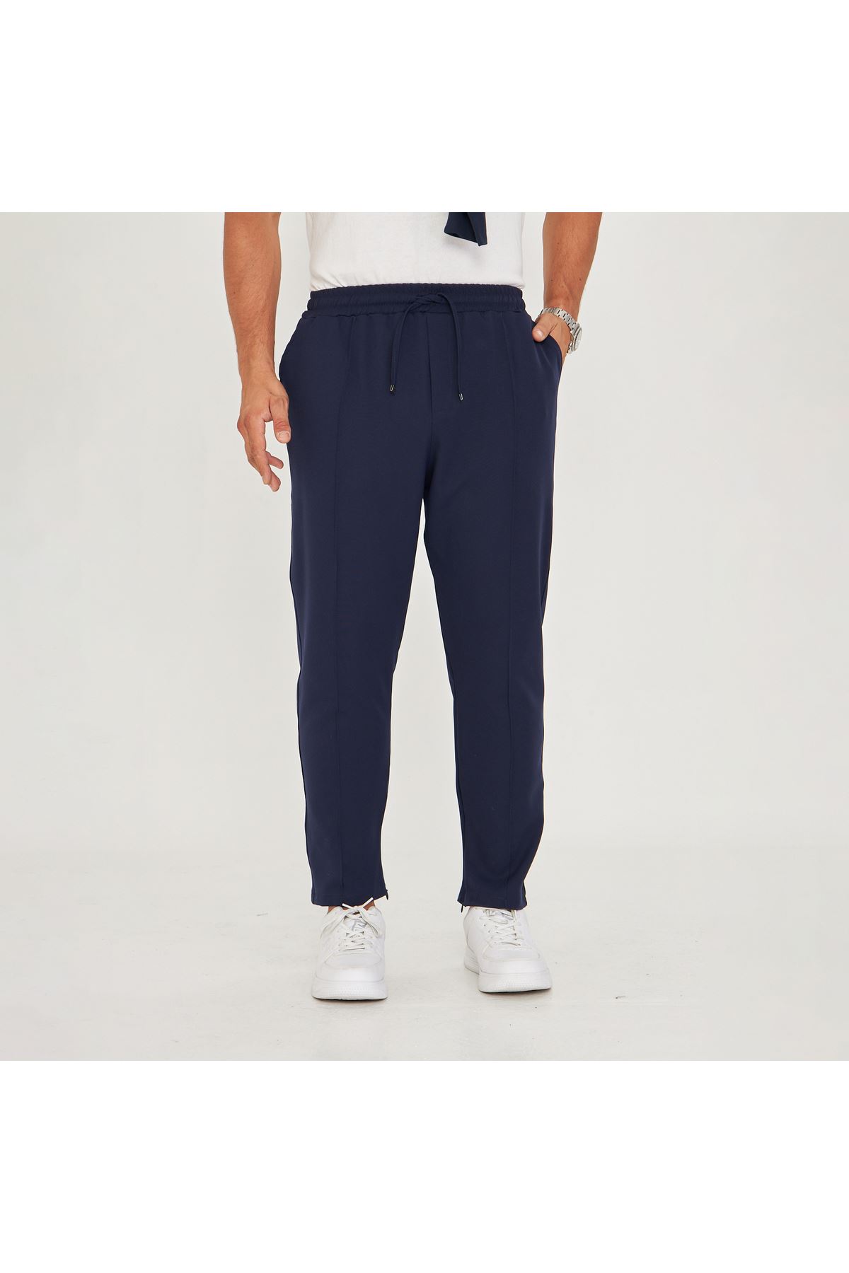 Erkek Çımalı Yandan Cepli Lastikli Bağcıklı Paça Fermuarlı Kullanışlı Slim Fit Jogger