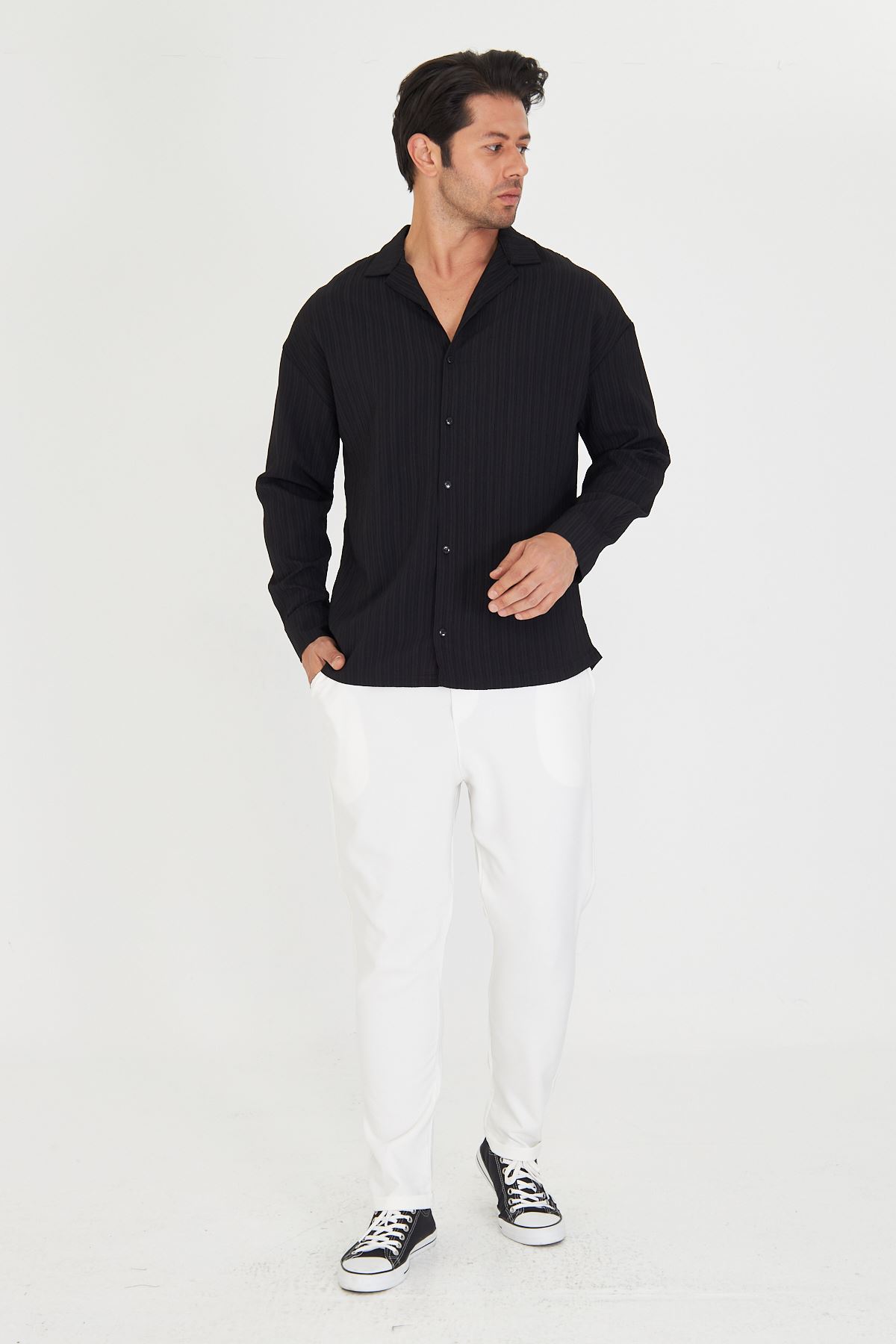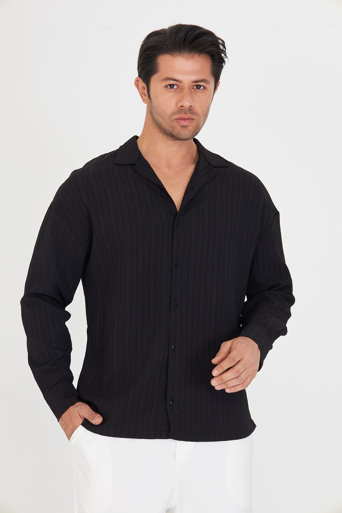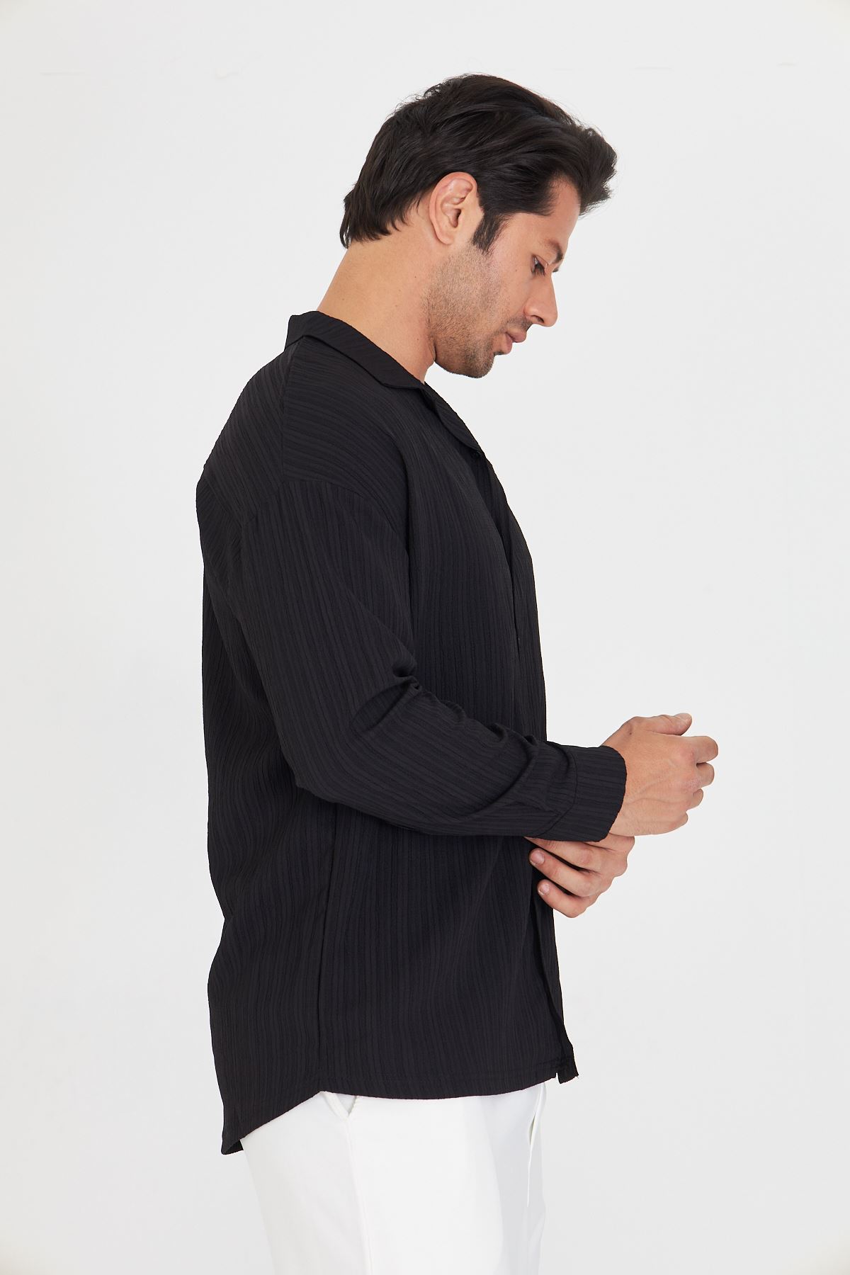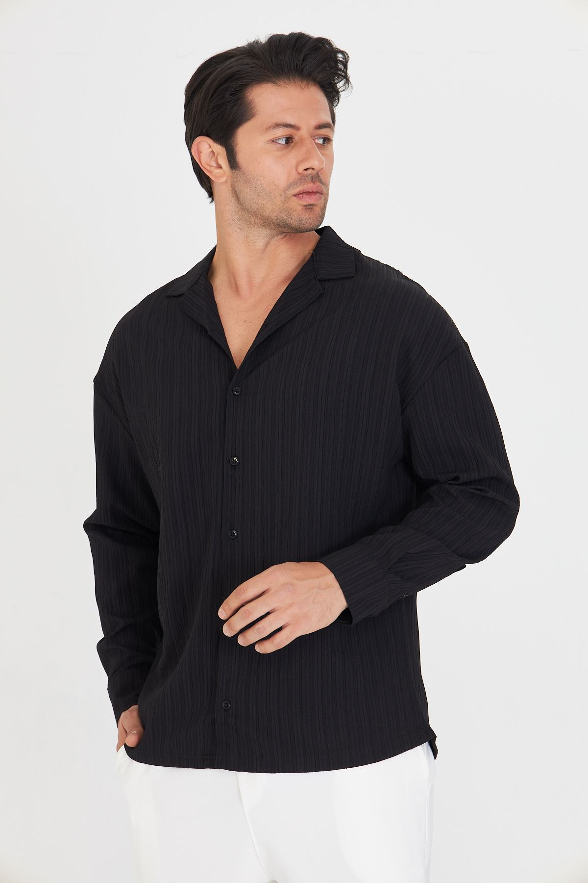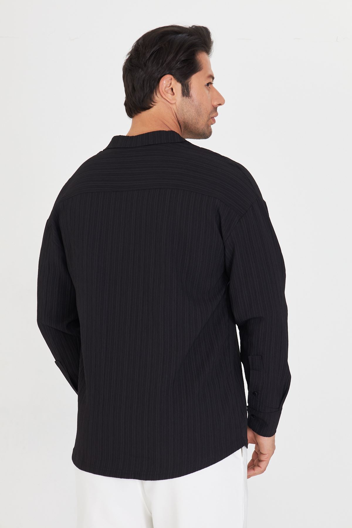 Erkek Düşük Omuz Bürümcük Desen Oversize Apaç Uzun Kol Yaka Gömlek