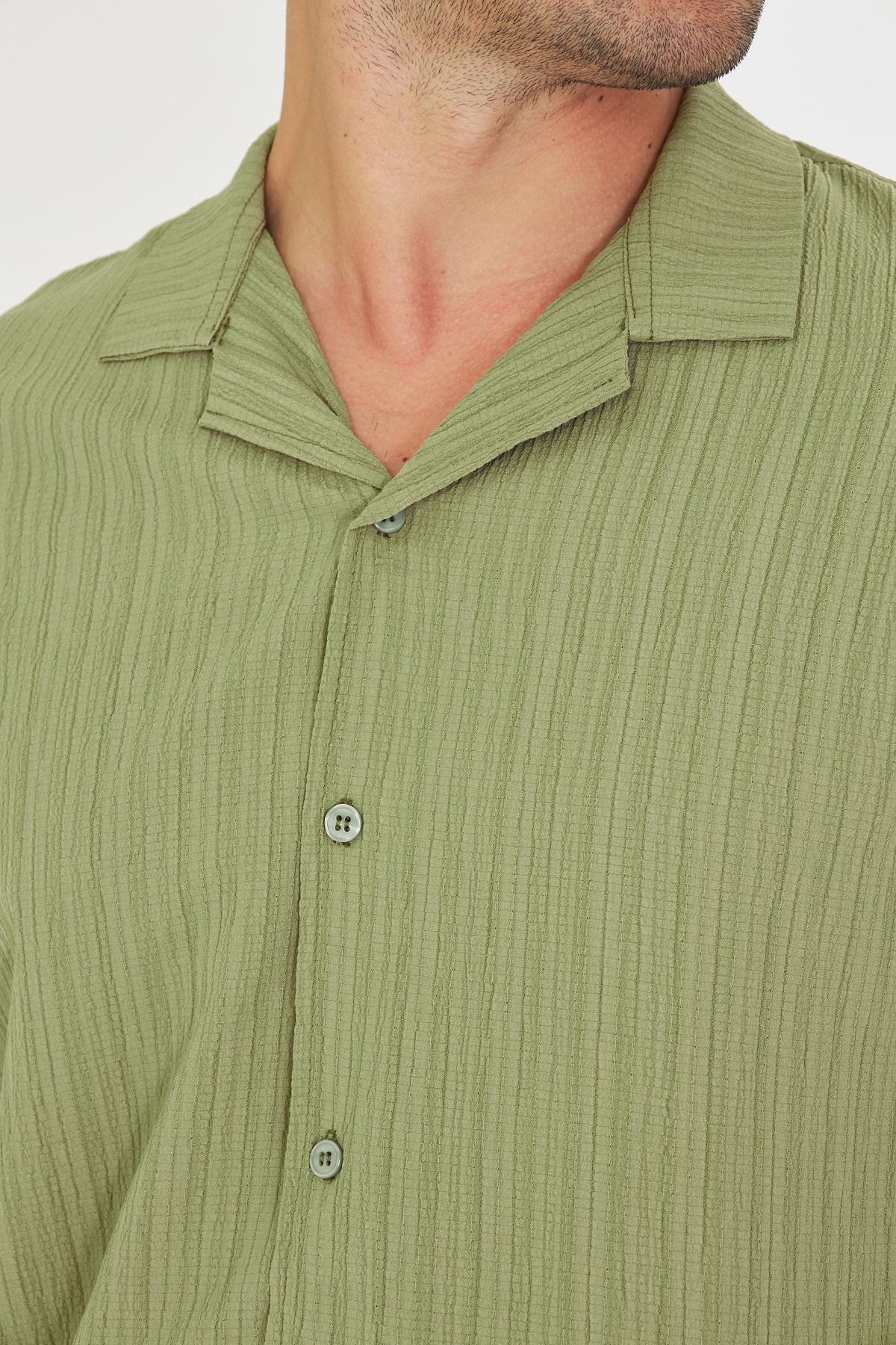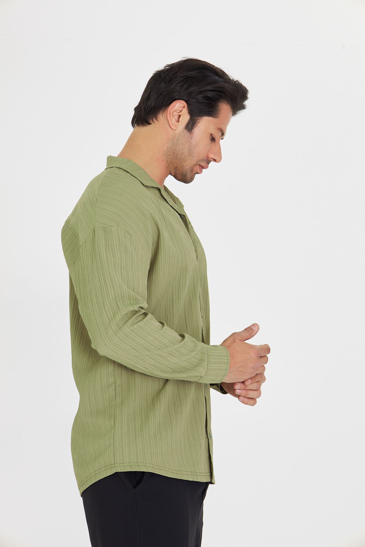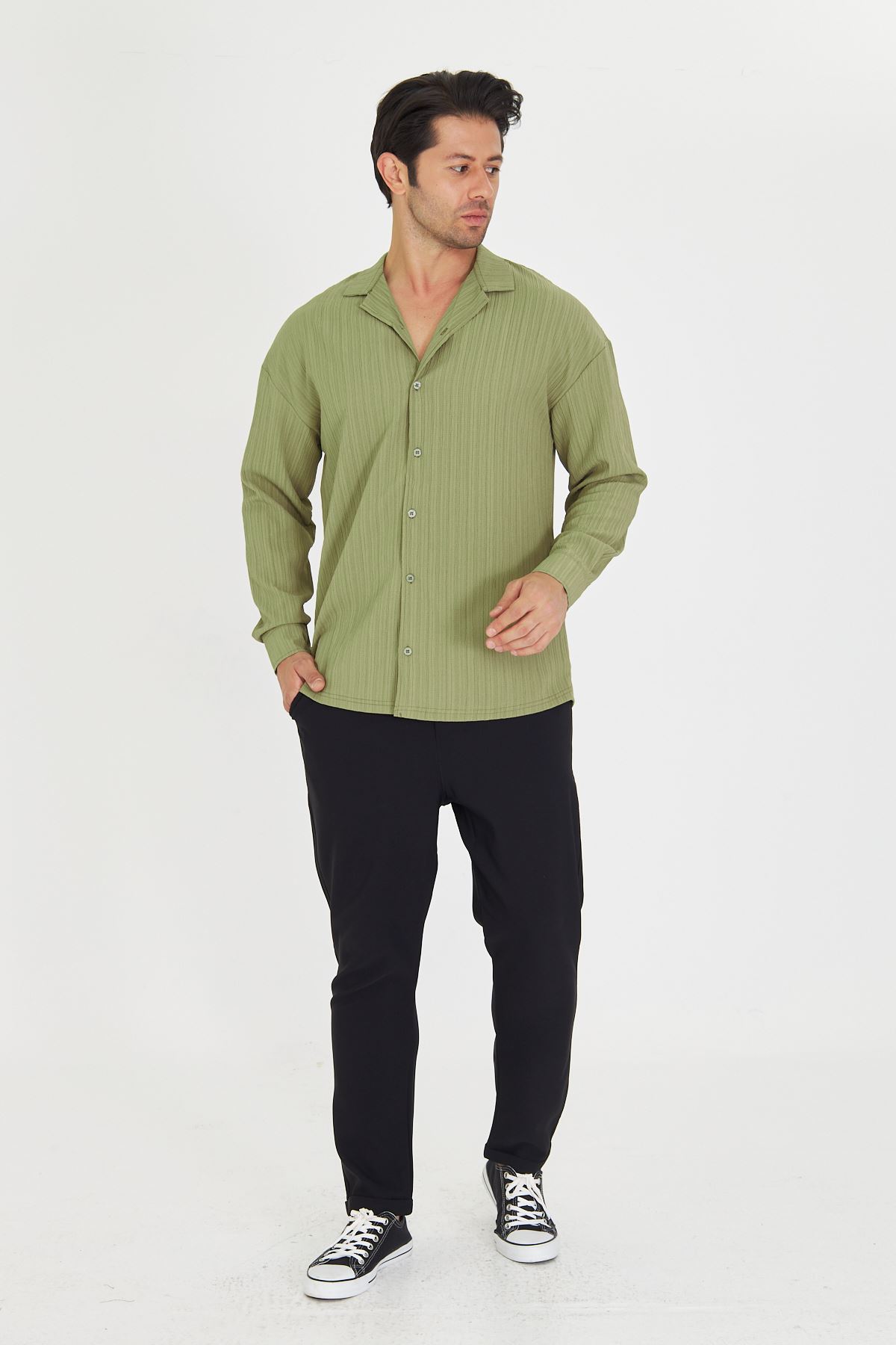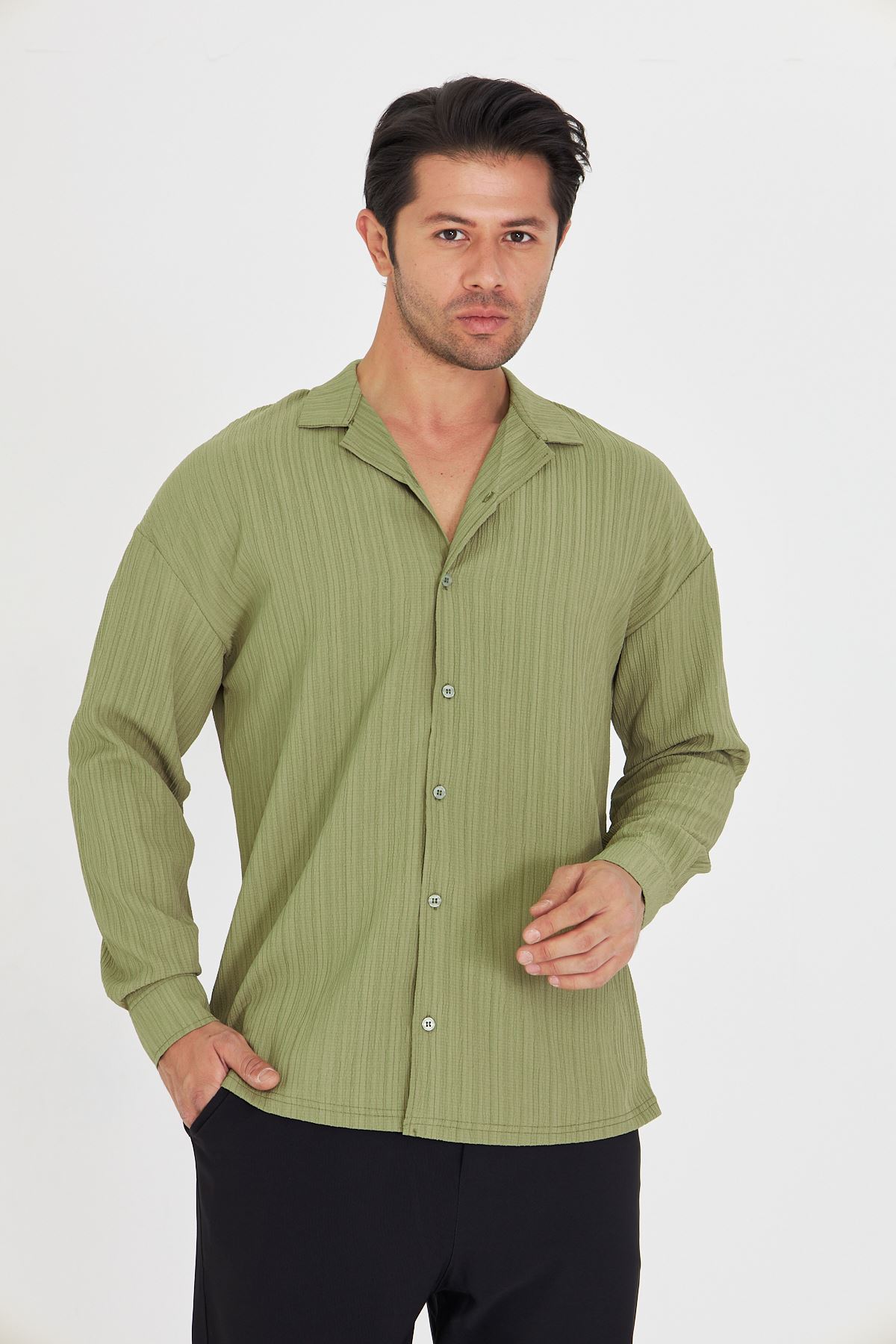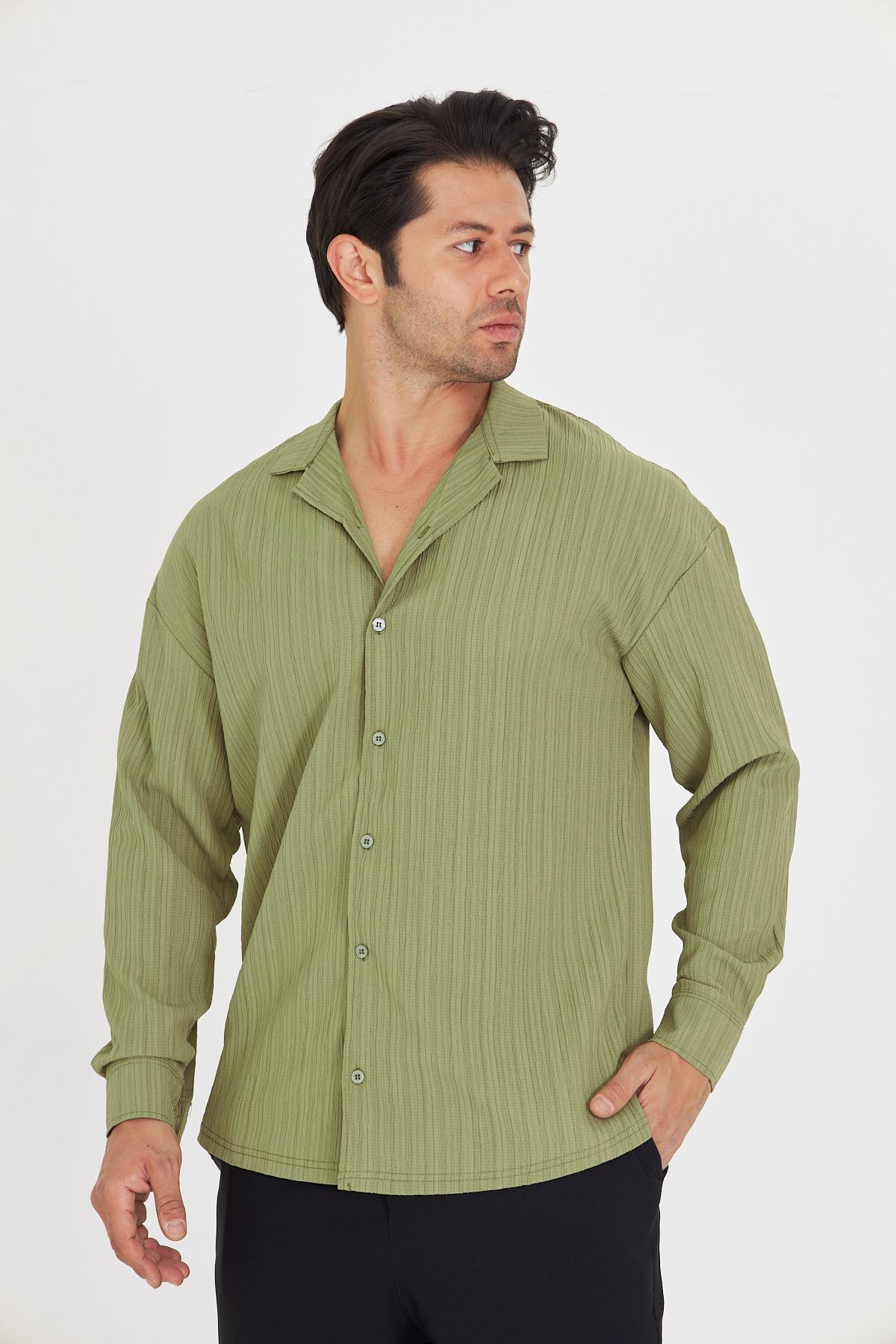 Erkek Düşük Omuz Bürümcük Desen Oversize Apaç Uzun Kol Yaka Gömlek