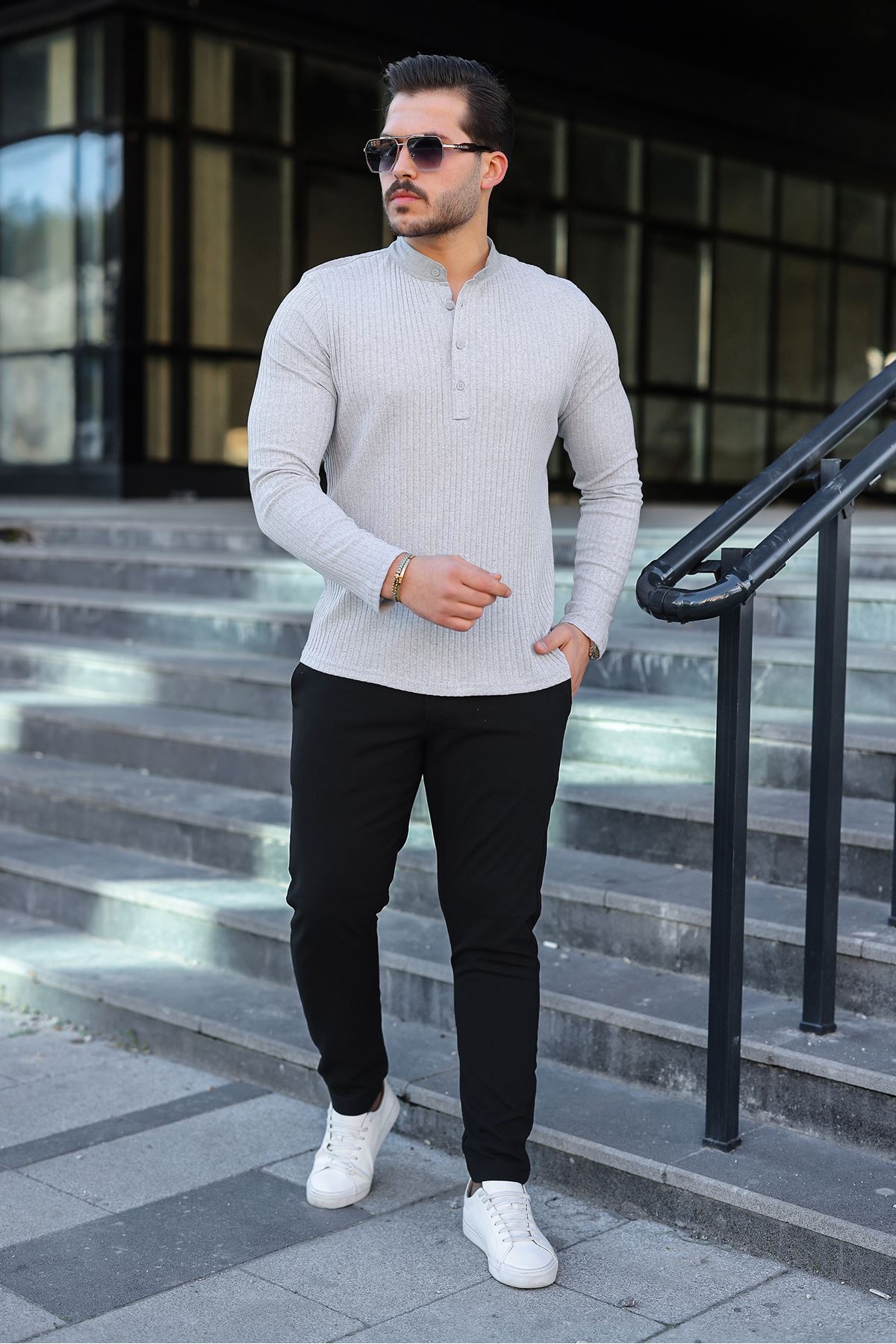Erkek Fitilli Kumaş Hakim Yaka Düğmeli Kazak
