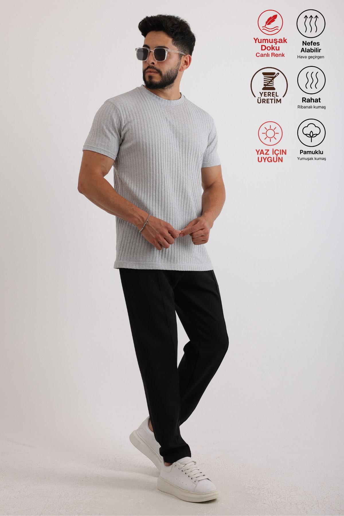 Erkek Fitilli Zinox Kumaş Tişört & Fermuarlı Duble Kumaş Pantolon Takım