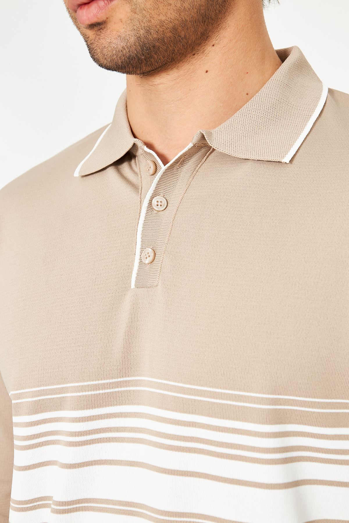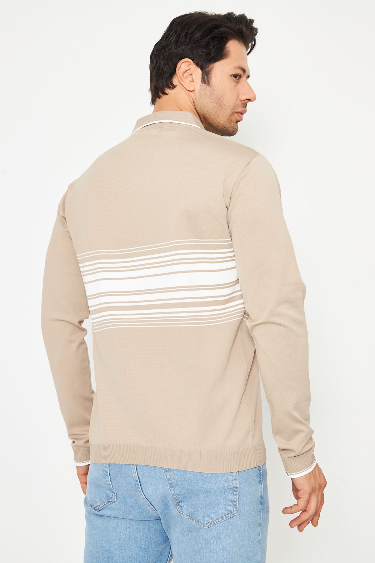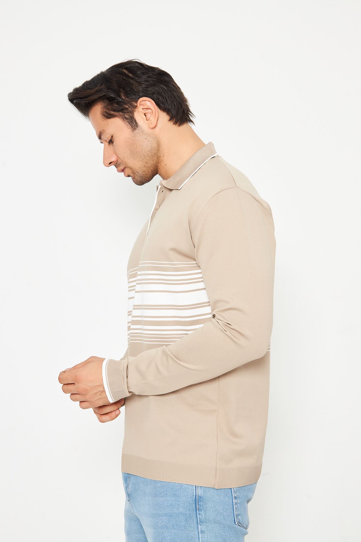 Erkek Göğüs Çizgili Örme Kazak Şık Ve Rahat Günlük Kullanıma Uygun Düğmeli Polo Yaka Kısa Kol Kazak