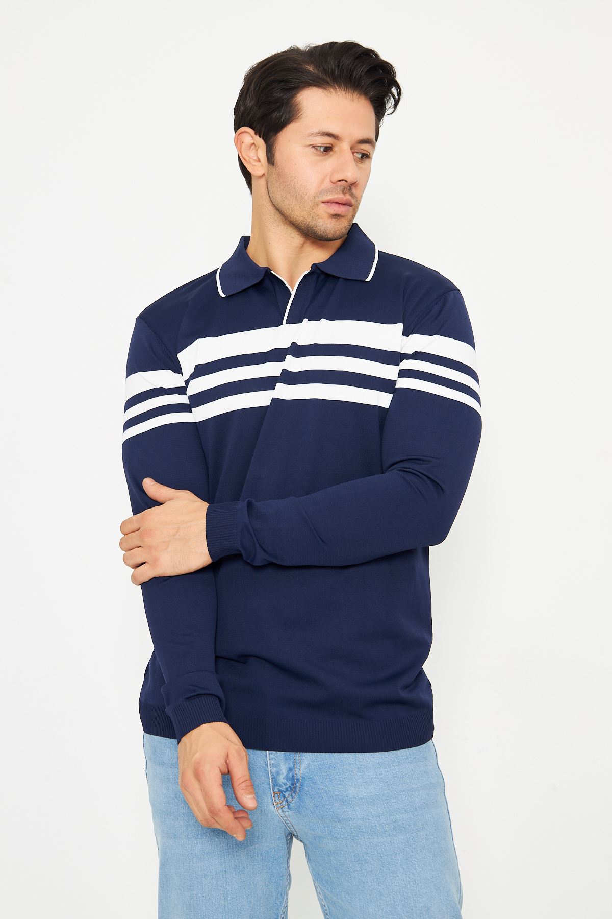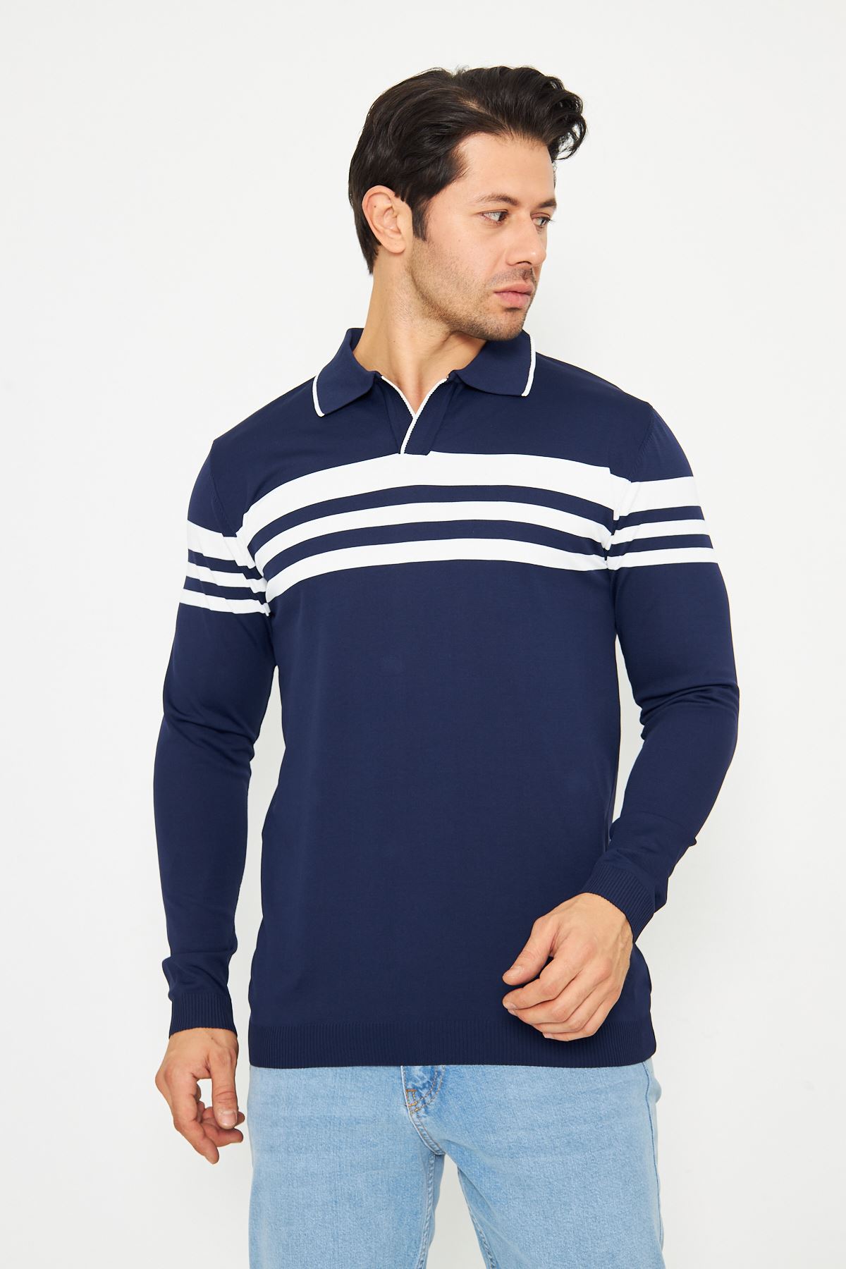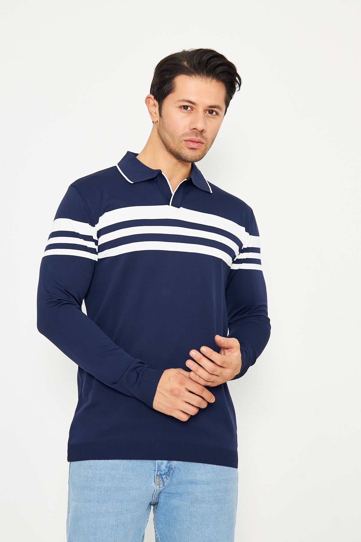 Erkek Gömlek Yaka Göğüs Çizgili Triko Kazak