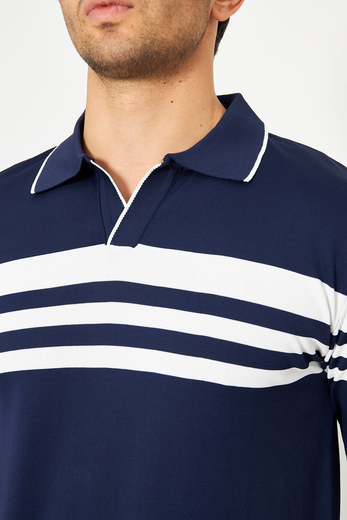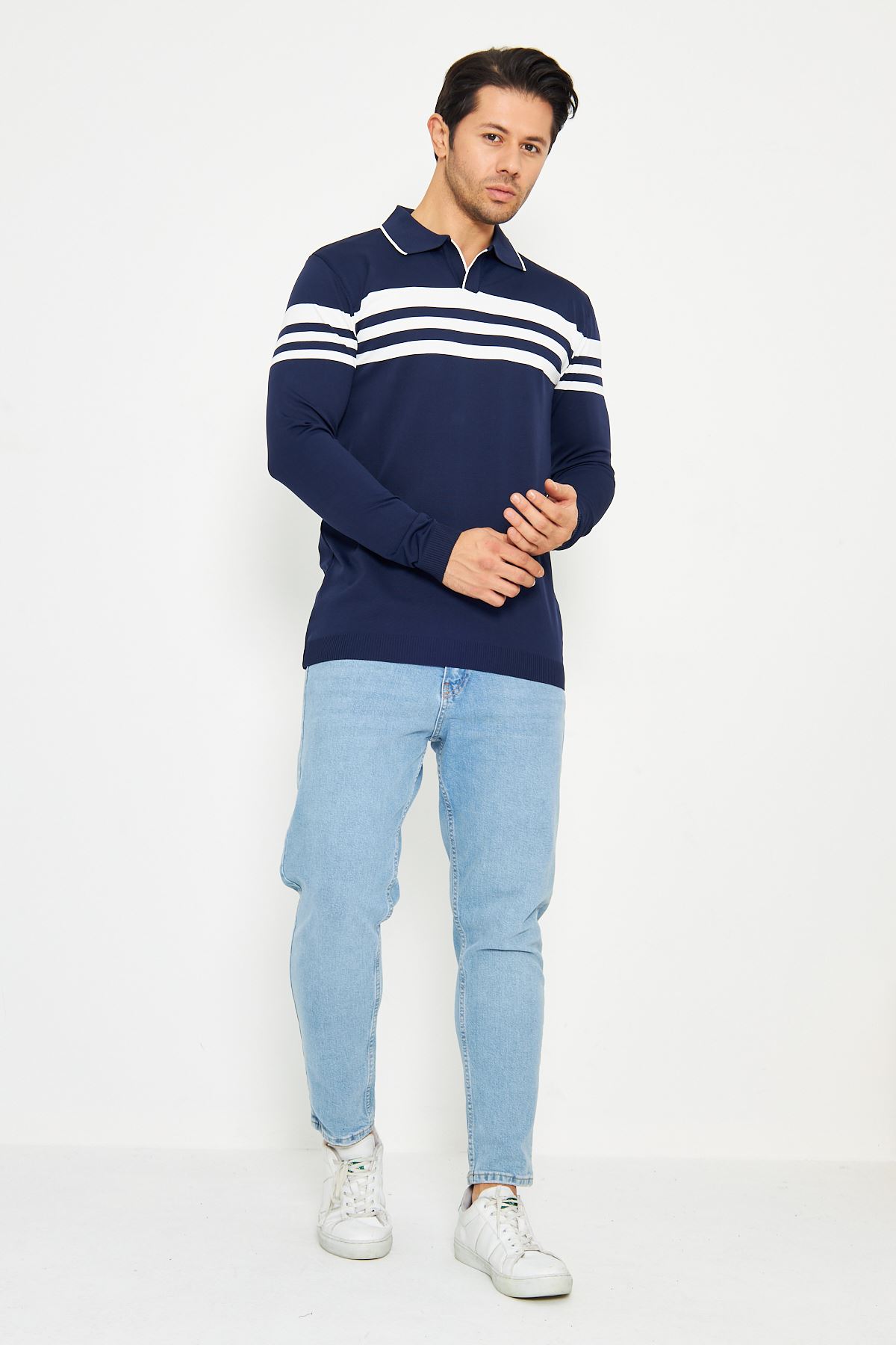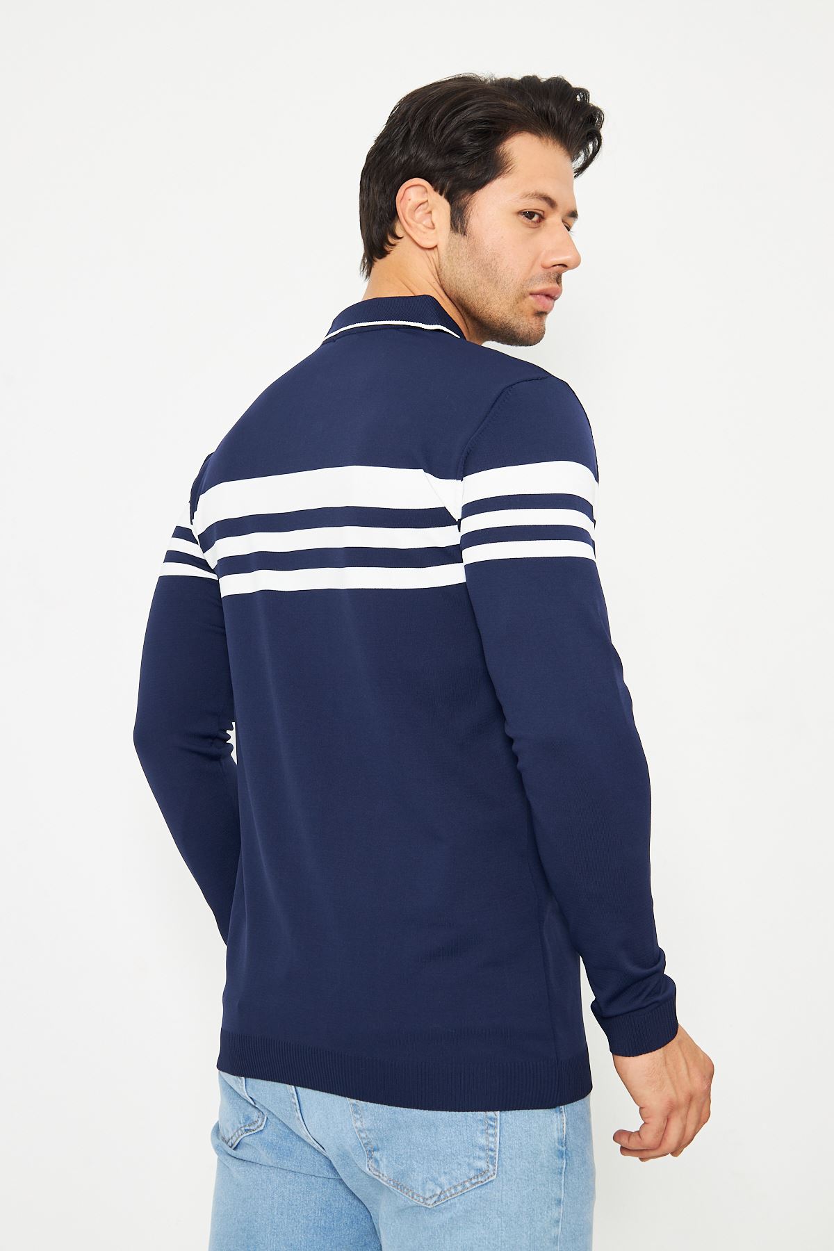 Erkek Gömlek Yaka Göğüs Çizgili Triko Kazak