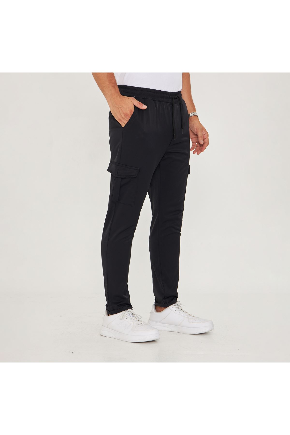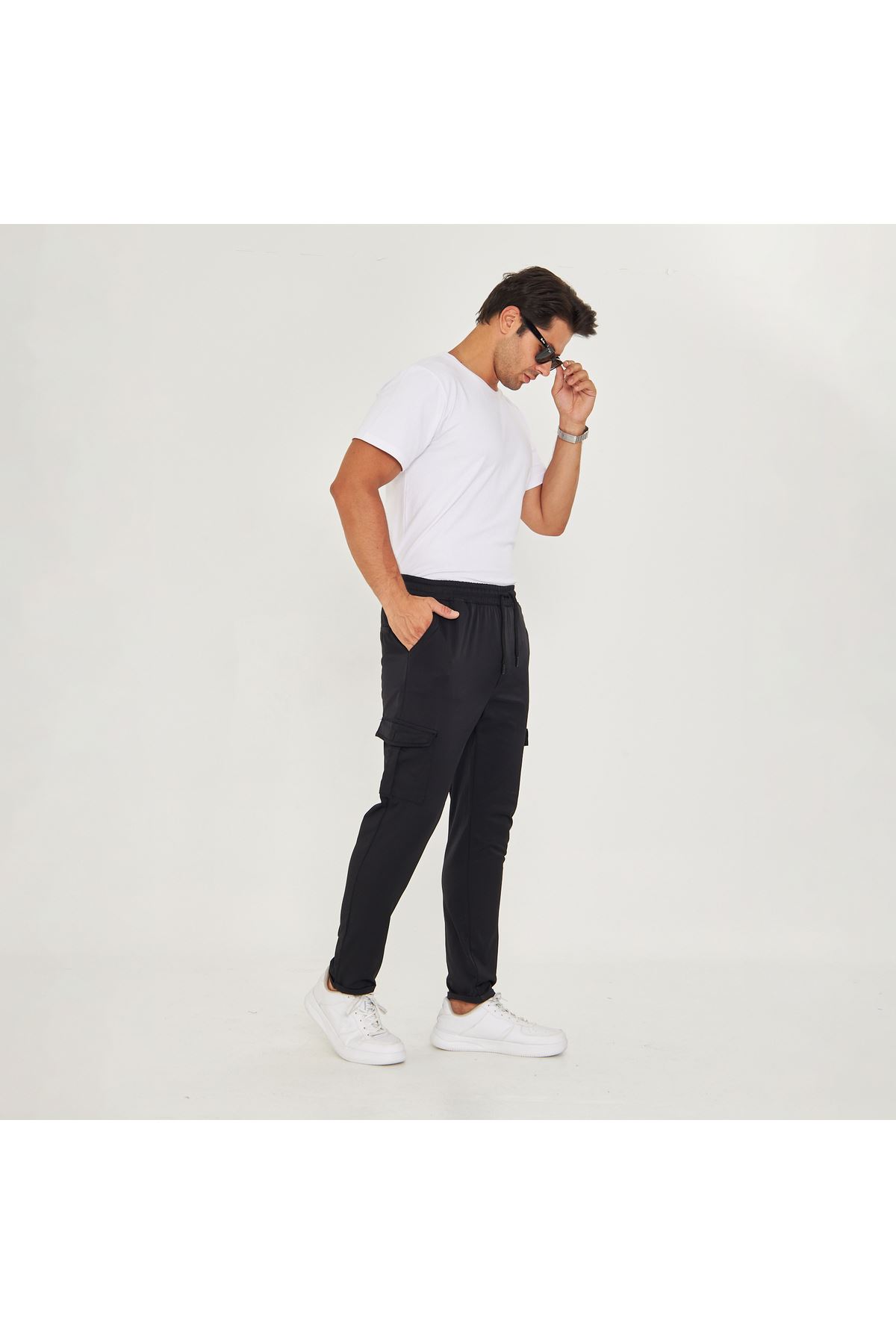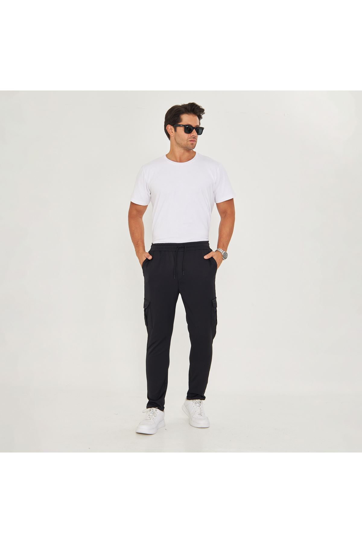 Erkek Kargo Cep Bel Lastikli Duble Paça Saten Likralı Pantolon