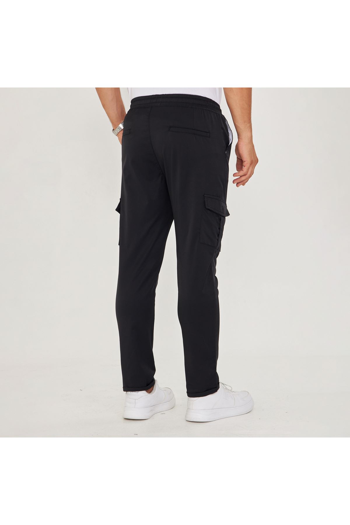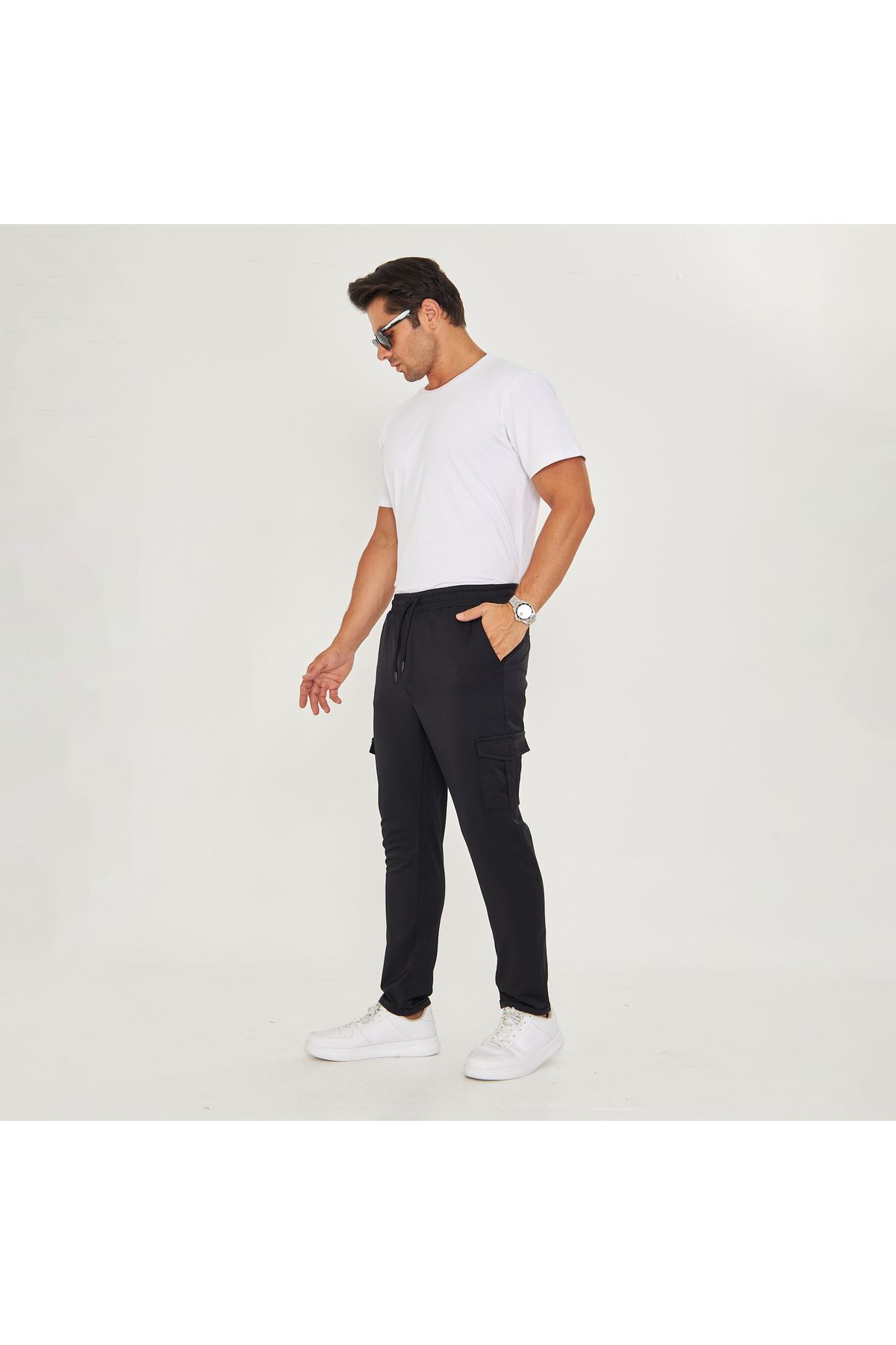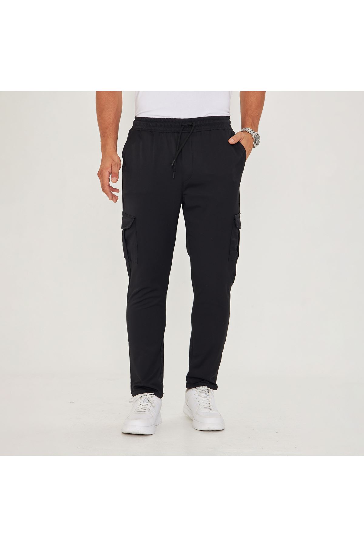 Erkek Kargo Cep Bel Lastikli Duble Paça Saten Likralı Pantolon