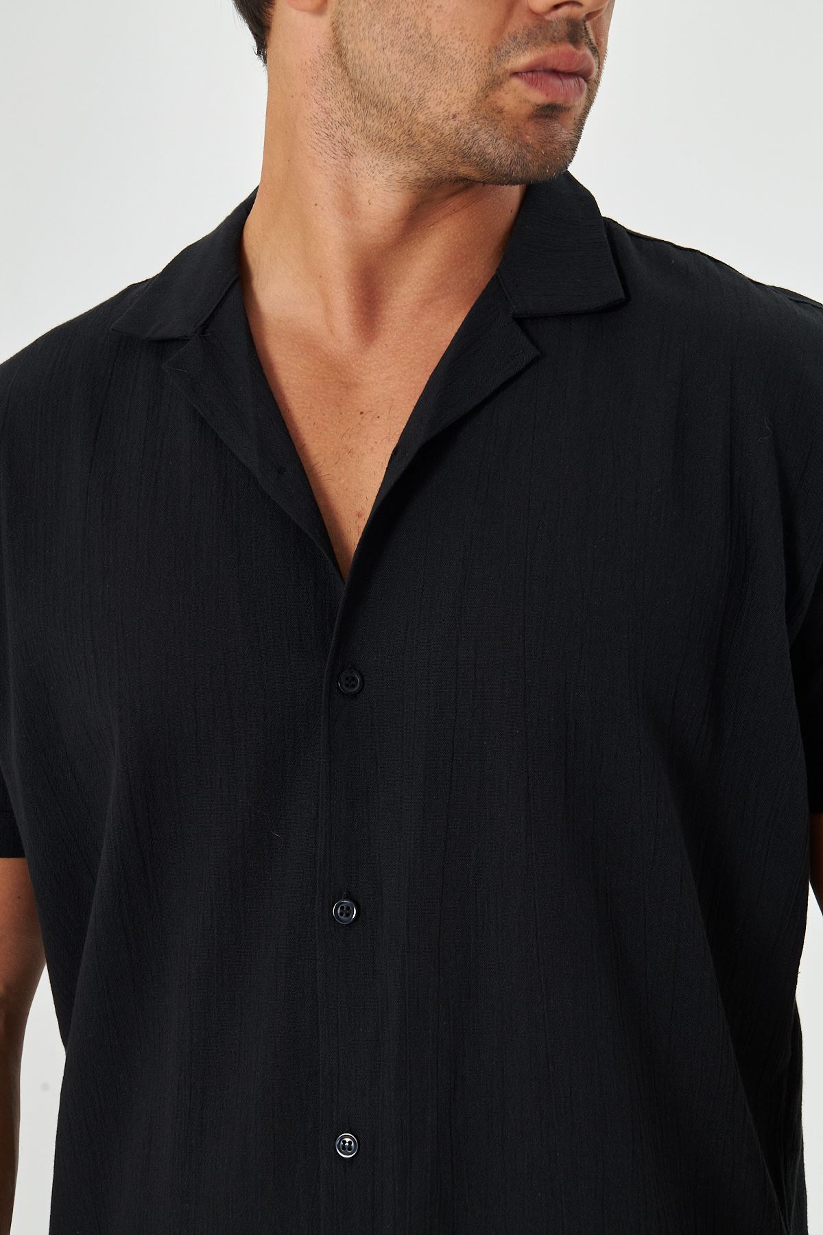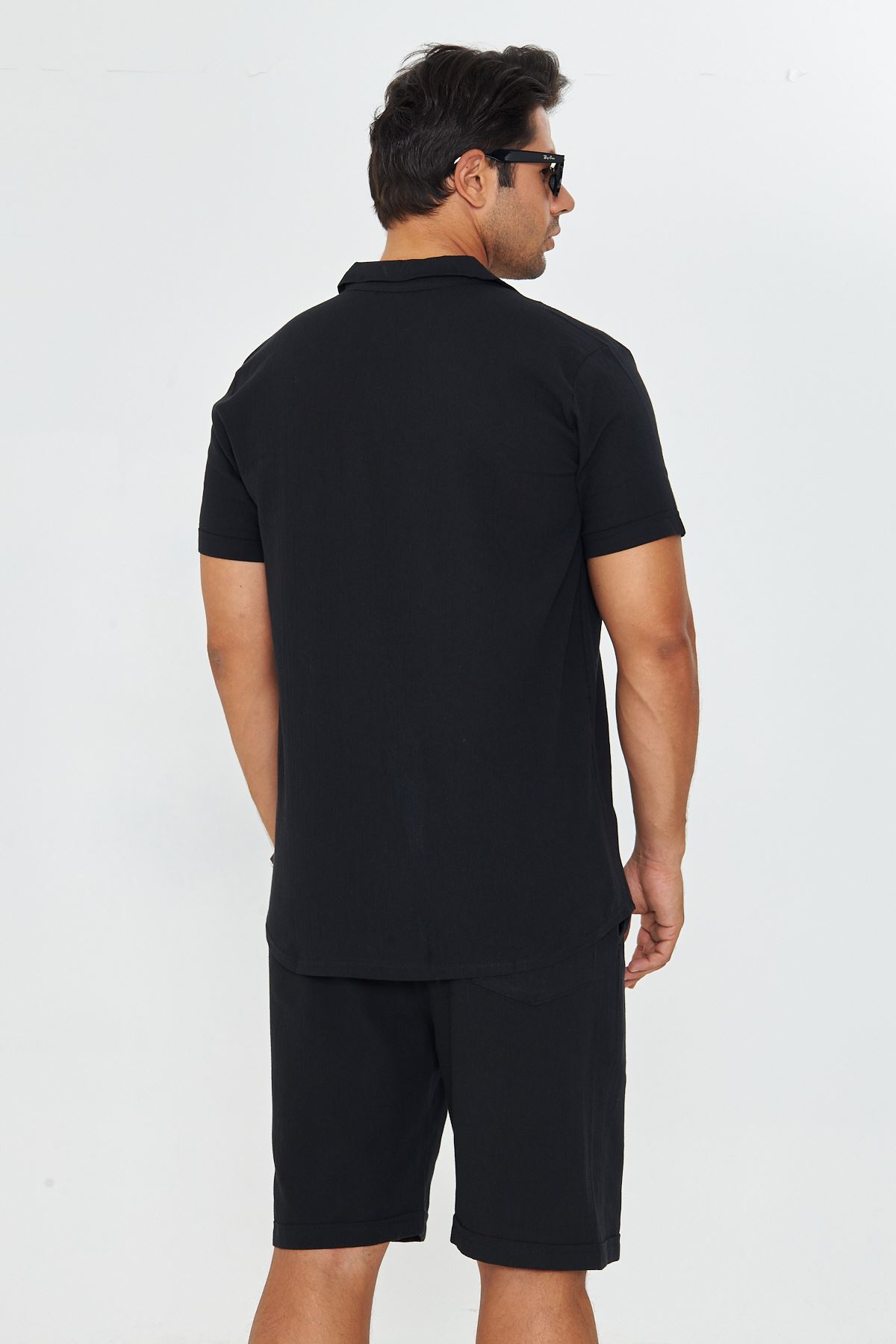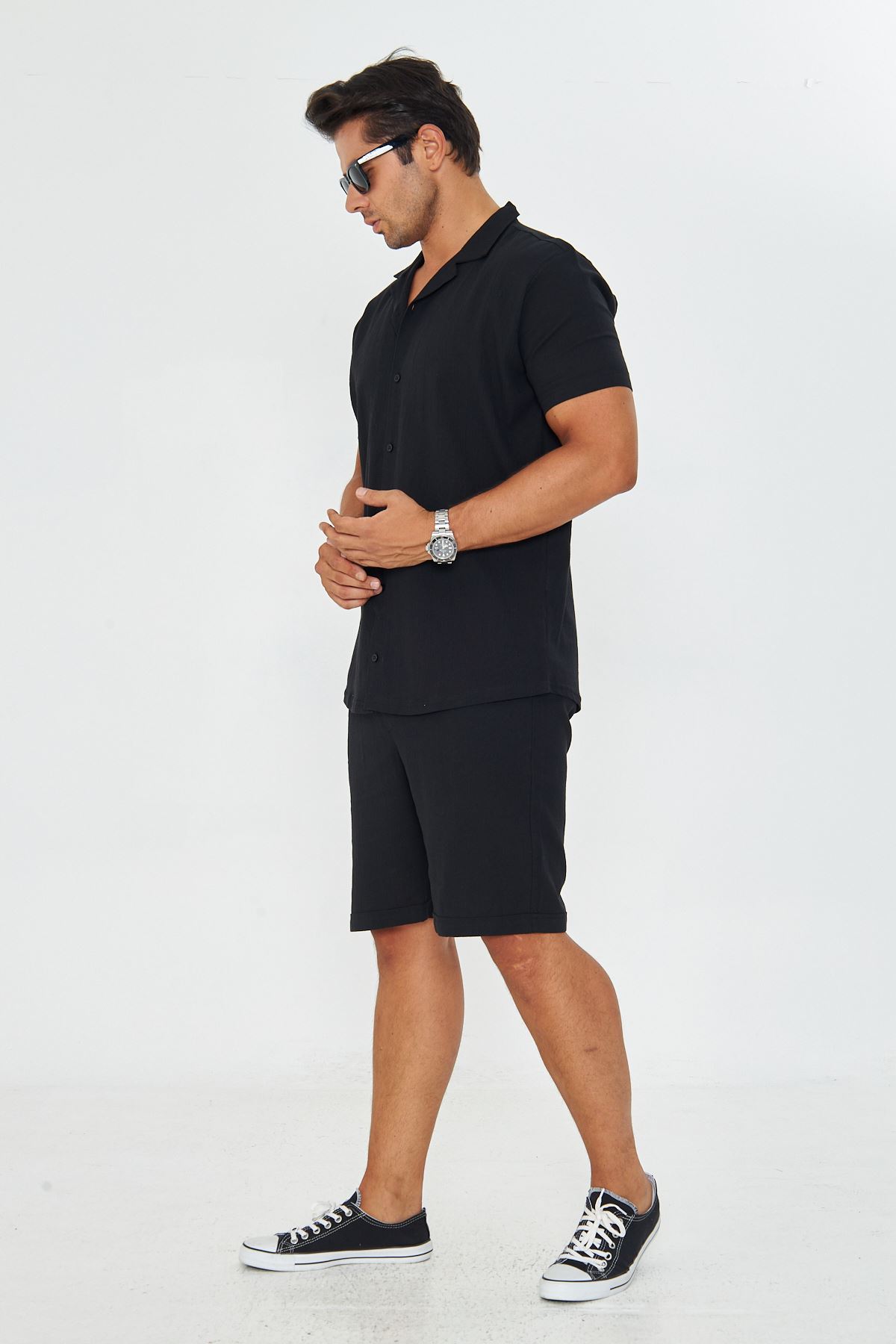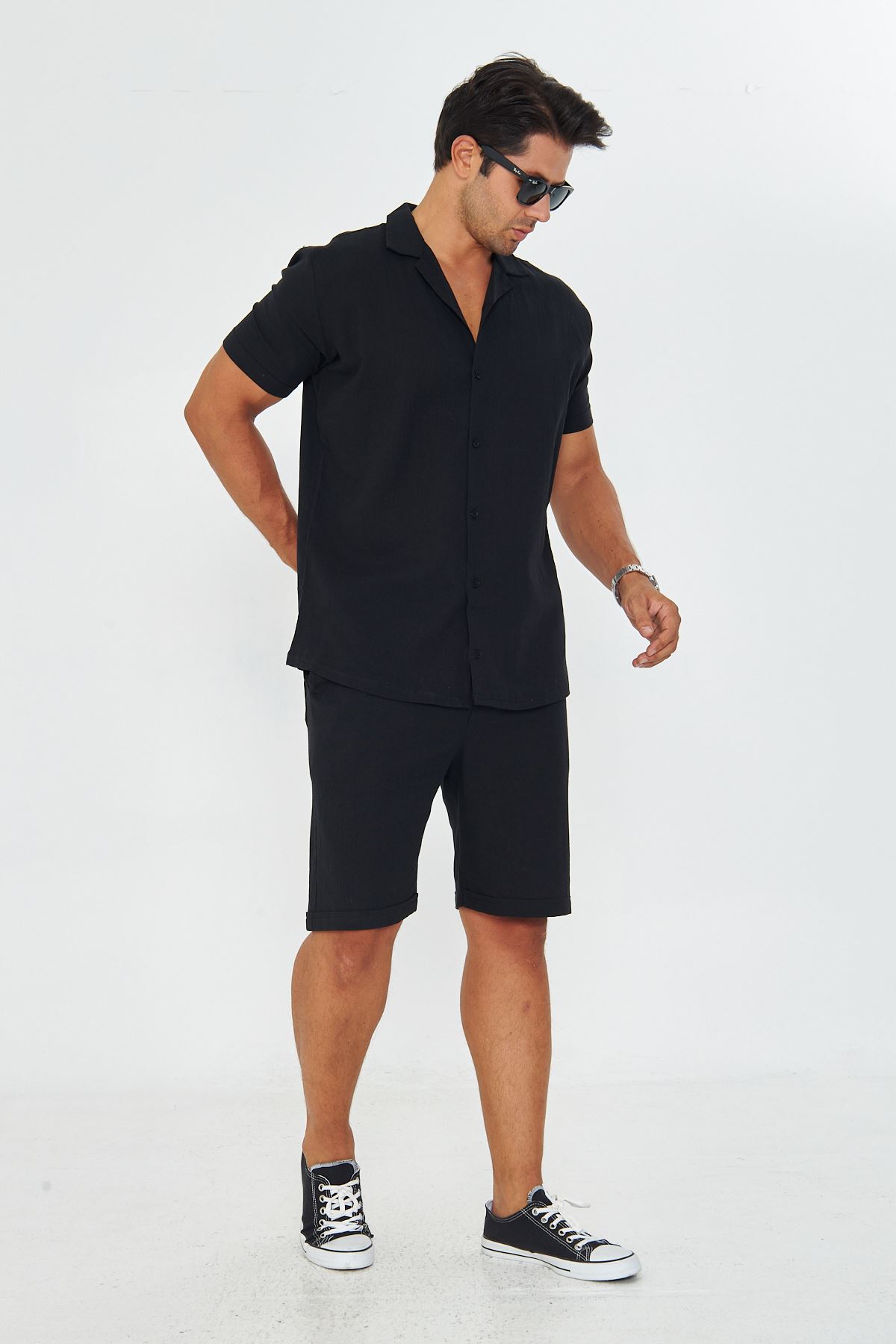 Erkek Keten Apaş Yaka Kısa Kol Gömlek - Şort Takım