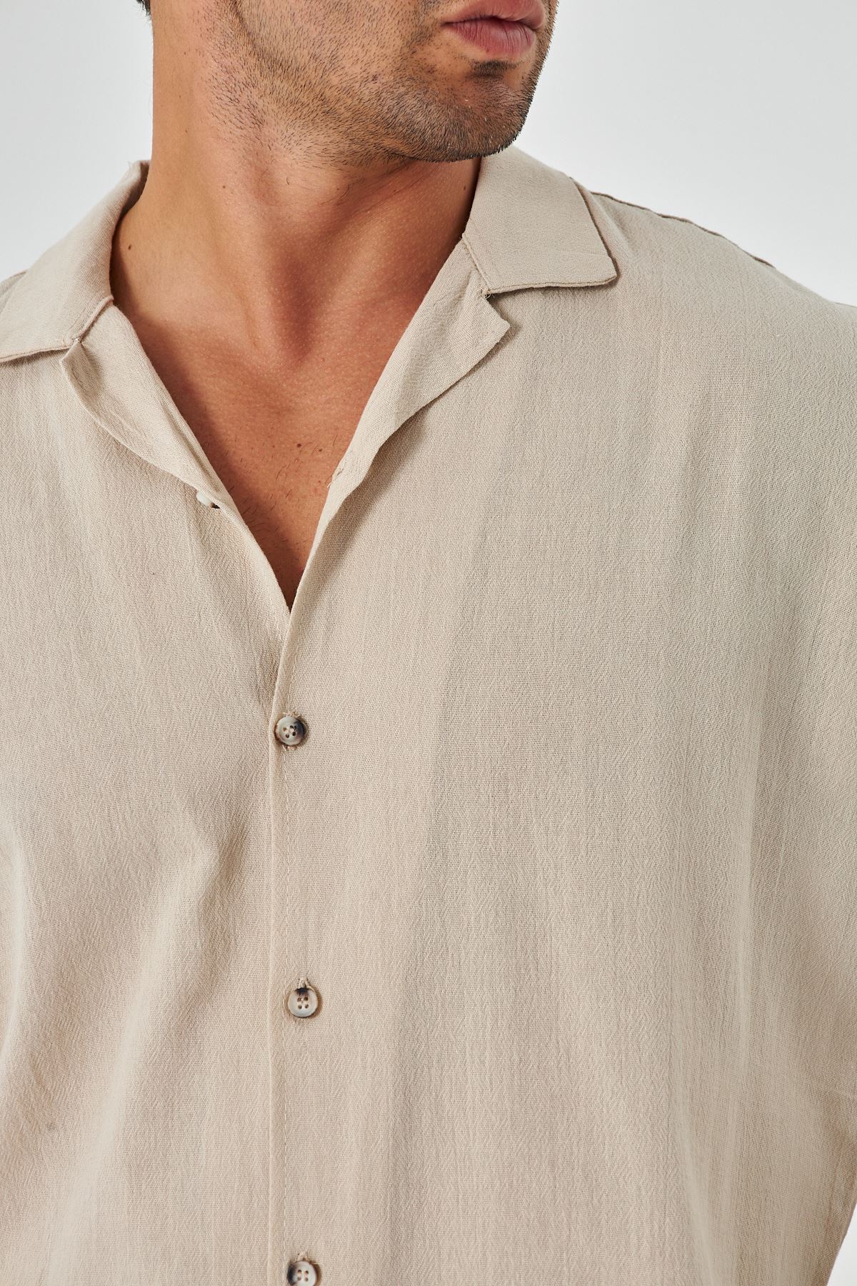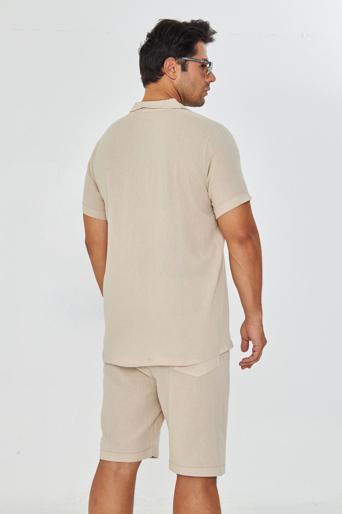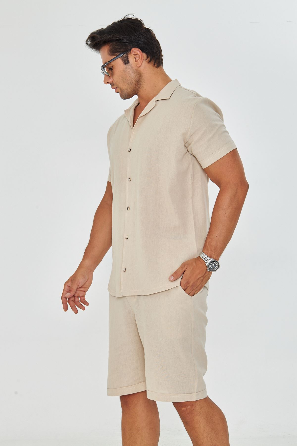 Erkek Keten Apaş Yaka Kısa Kol Gömlek - Şort Takım
