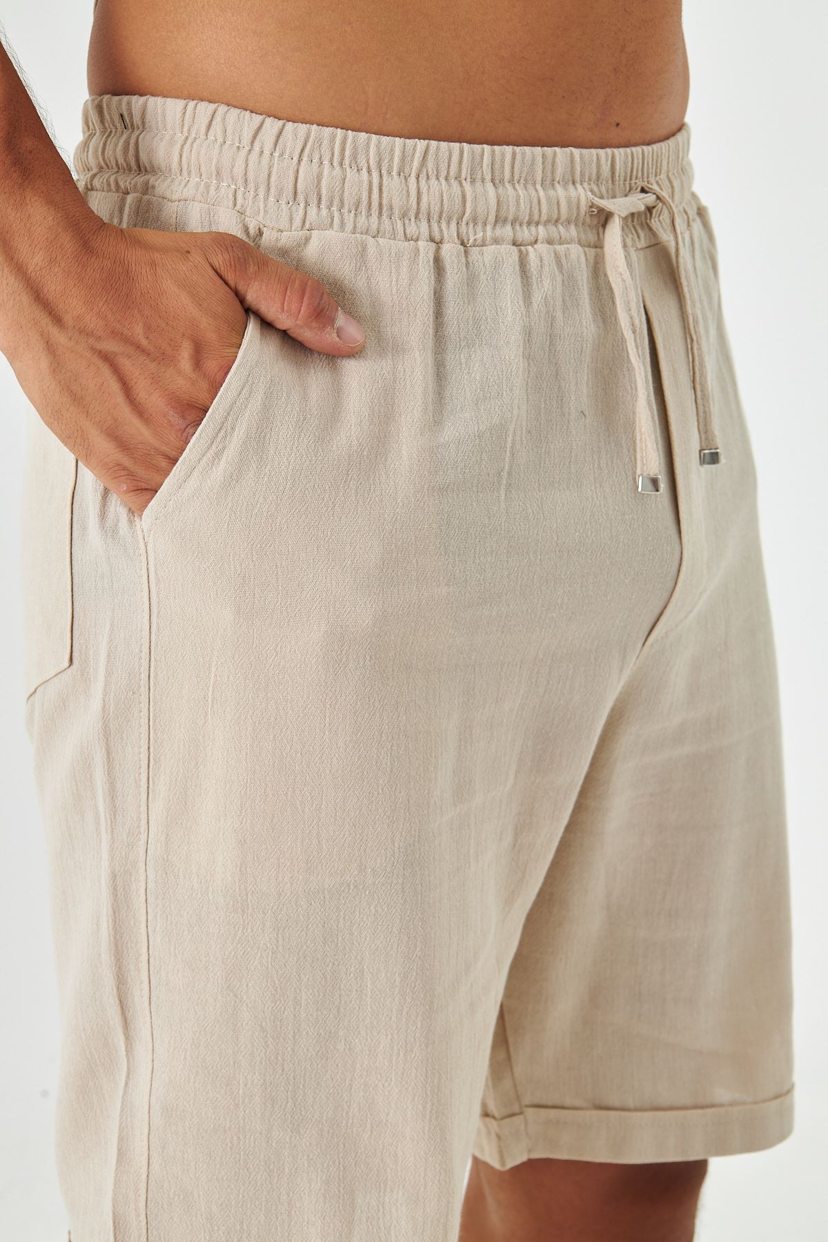 - Klasik keten gömlek ve şort kombinasyonu, yaz aylarında hem rahatlık hem de şıklığı bir arada sunar.; - Apaş yaka tasarımı ile modern ve sofistike bir görünüm kazandırırken, düğmeli kapama detayları pratik kullanım sağlar.; - Lastikli bel yapısı sayesinde konforlu bir oturuş sunarken, bağcıklı tasarım ekstra esneklik ve kişisel uyum imkanı tanır.; - Baskısız düz deseniyle sade ve zamansız bir stil oluşturur; her türlü aksesuarla kolayca kombinlenebilir.; - Örgü dokuma tipi, dayanıklılığı artırarak uzun süreli kullanım vaat ederken, keten materyali nefes alabilirliğiyle öne çıkar.; - Günlük veya gece ortamları için ideal olan bu takım, hem gündüz hem de akşam etkinliklerine uygunluk gösterir.; - Gömlek-şort alt-üst takımı olarak tasarlanmıştır; böylece tek parça halinde şık bir görünüm elde edilirken, farklı parçalarla da çeşitlilik sağlanabilir.; - Türkiye'de üretilmiş olup yerel malzemelerle kalite standartlarına uygun şekilde hazırlanmıştır.