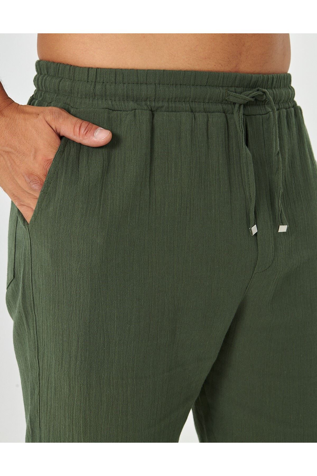 - Klasik keten gömlek ve şort kombinasyonu, yaz aylarında hem rahatlık hem de şıklığı bir arada sunar.; - Apaş yaka tasarımı ile modern ve sofistike bir görünüm kazandırırken, düğmeli kapama detayları pratik kullanım sağlar.; - Lastikli bel yapısı sayesinde konforlu bir oturuş sunarken, bağcıklı tasarım ekstra esneklik ve kişisel uyum imkanı tanır.; - Baskısız düz deseniyle sade ve zamansız bir stil oluşturur; her türlü aksesuarla kolayca kombinlenebilir.; - Örgü dokuma tipi, dayanıklılığı artırarak uzun süreli kullanım vaat ederken, keten materyali nefes alabilirliğiyle öne çıkar.; - Günlük veya gece ortamları için ideal olan bu takım, hem gündüz hem de akşam etkinliklerine uygunluk gösterir.; - Gömlek-şort alt-üst takımı olarak tasarlanmıştır; böylece tek parça halinde şık bir görünüm elde edilirken, farklı parçalarla da çeşitlilik sağlanabilir.; - Türkiye'de üretilmiş olup yerel malzemelerle kalite standartlarına uygun şekilde hazırlanmıştır.