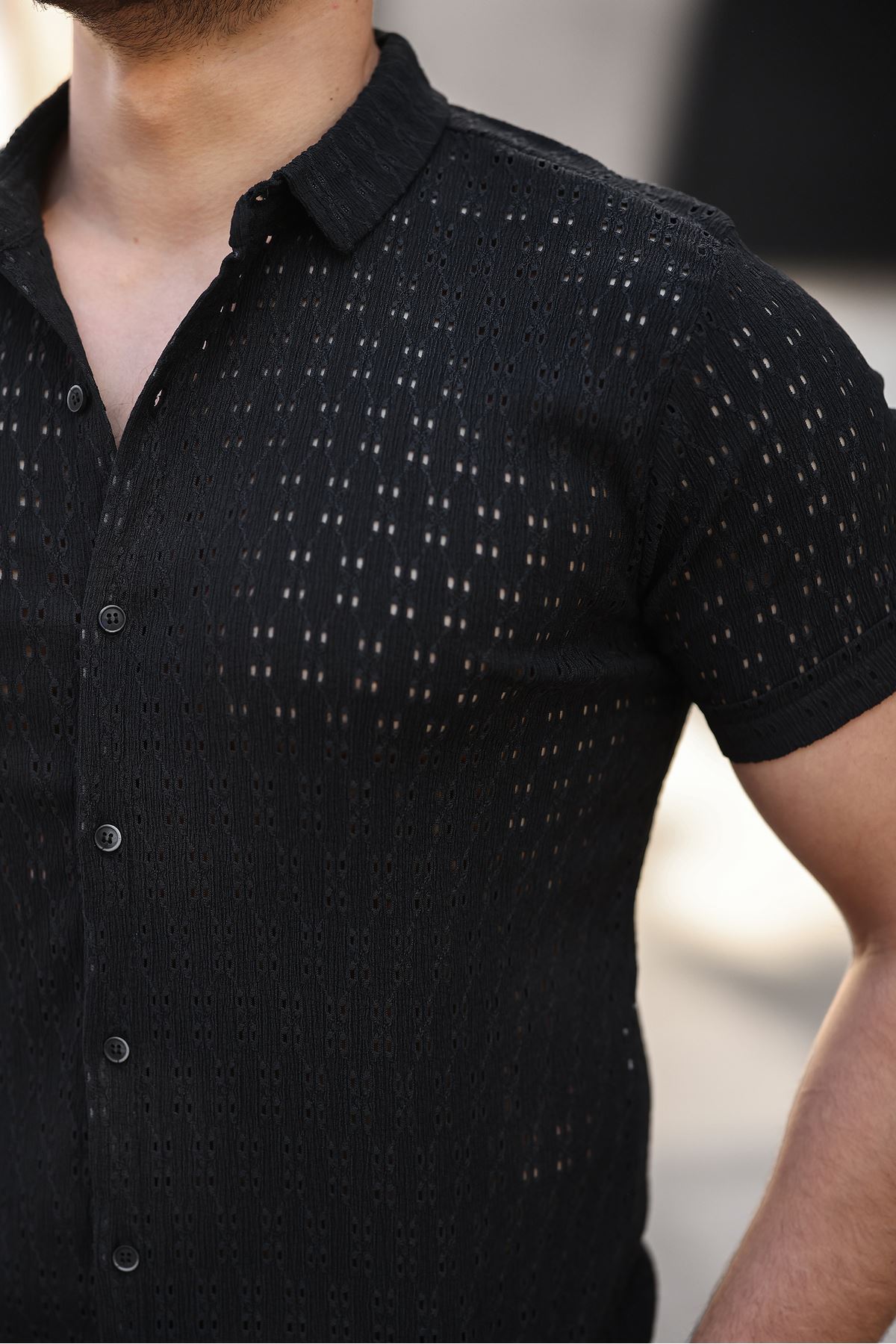 Erkek Kısa Kol Delikli Desen Örme Kumaş Regular Kalıp Kalıp Yeni Sezon Gömlek