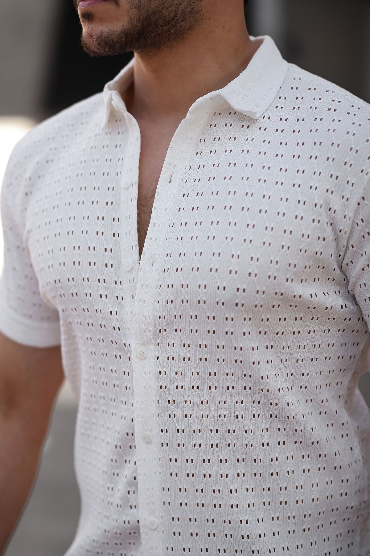 Erkek Kısa Kol Delikli Desen Örme Kumaş Regular Kalıp Kalıp Yeni Sezon Gömlek