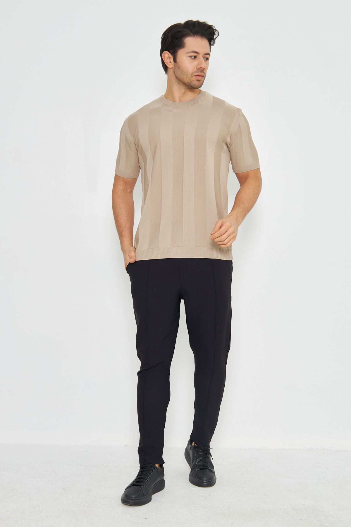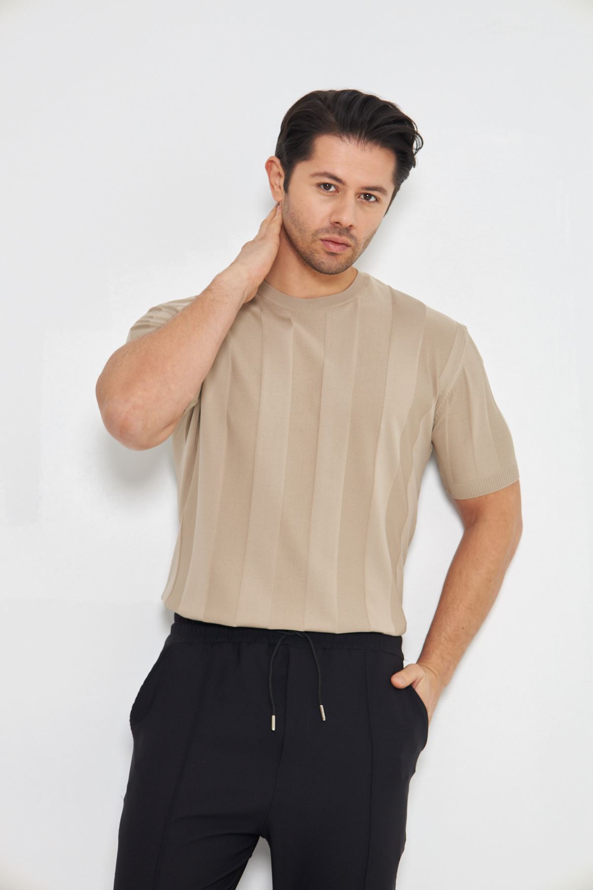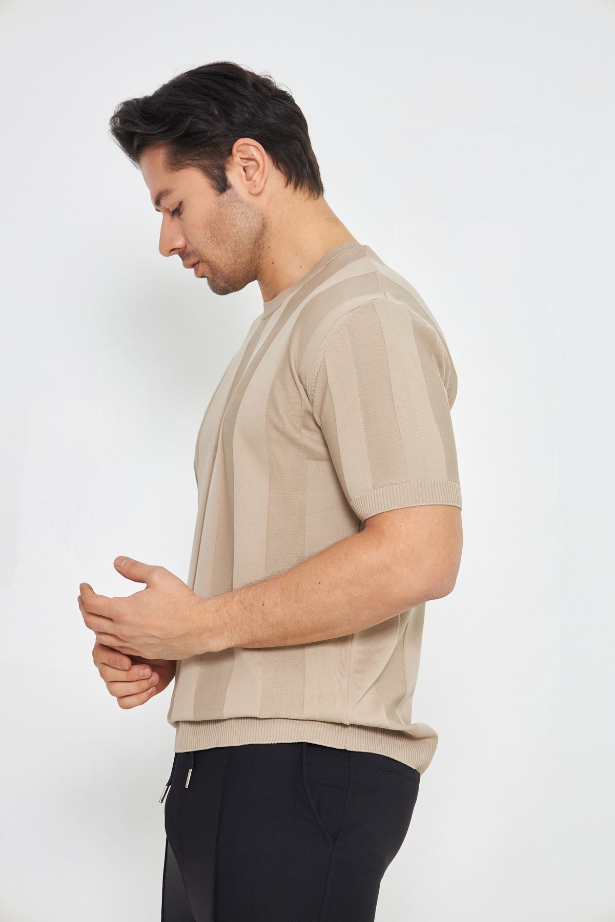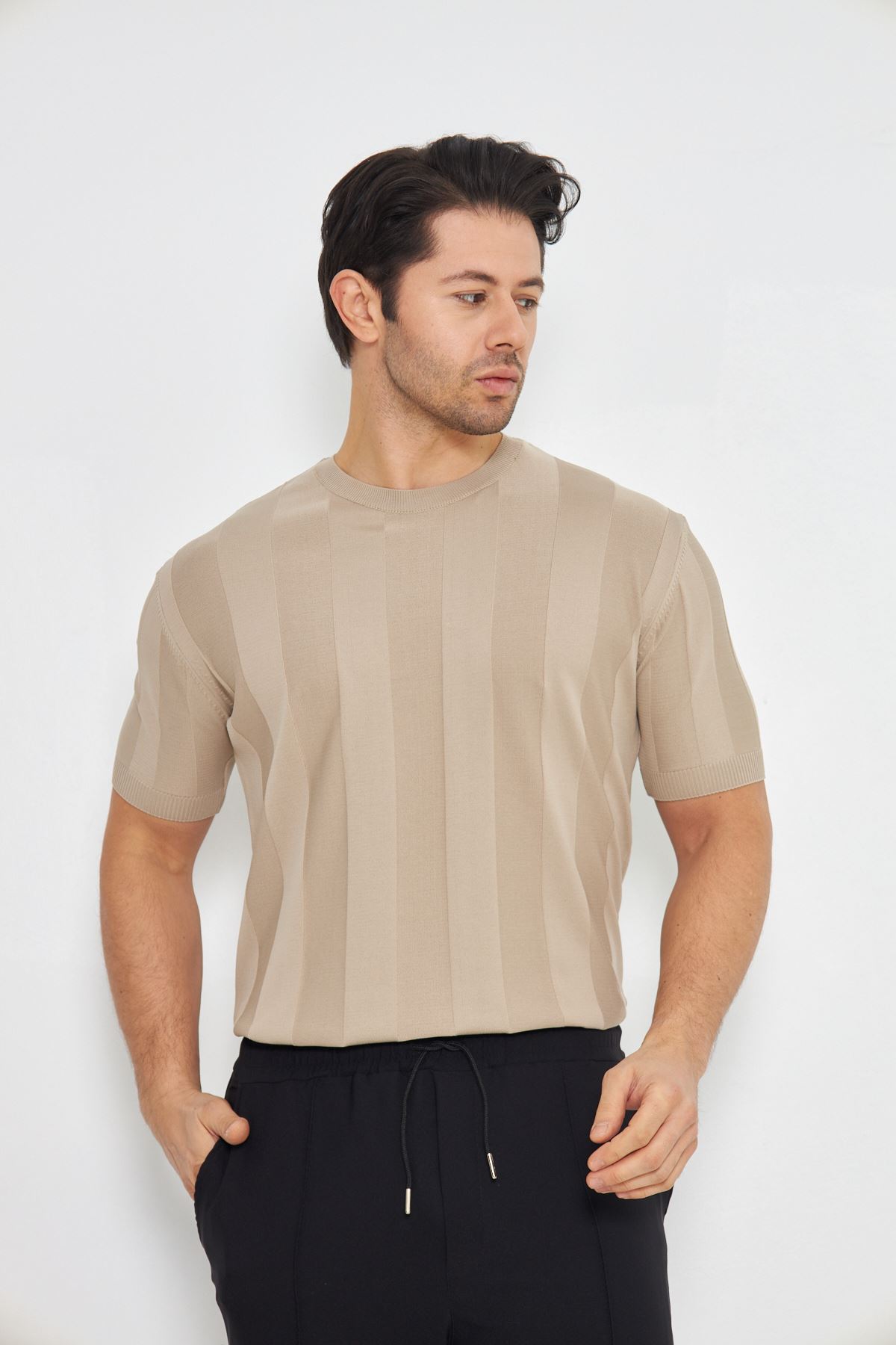 Erkek Kısa Kollu Bisiklet Yaka Düz Kabartma Desen Yaza Uygun Ve Günlük Kullanıma Şık Rahat Triko