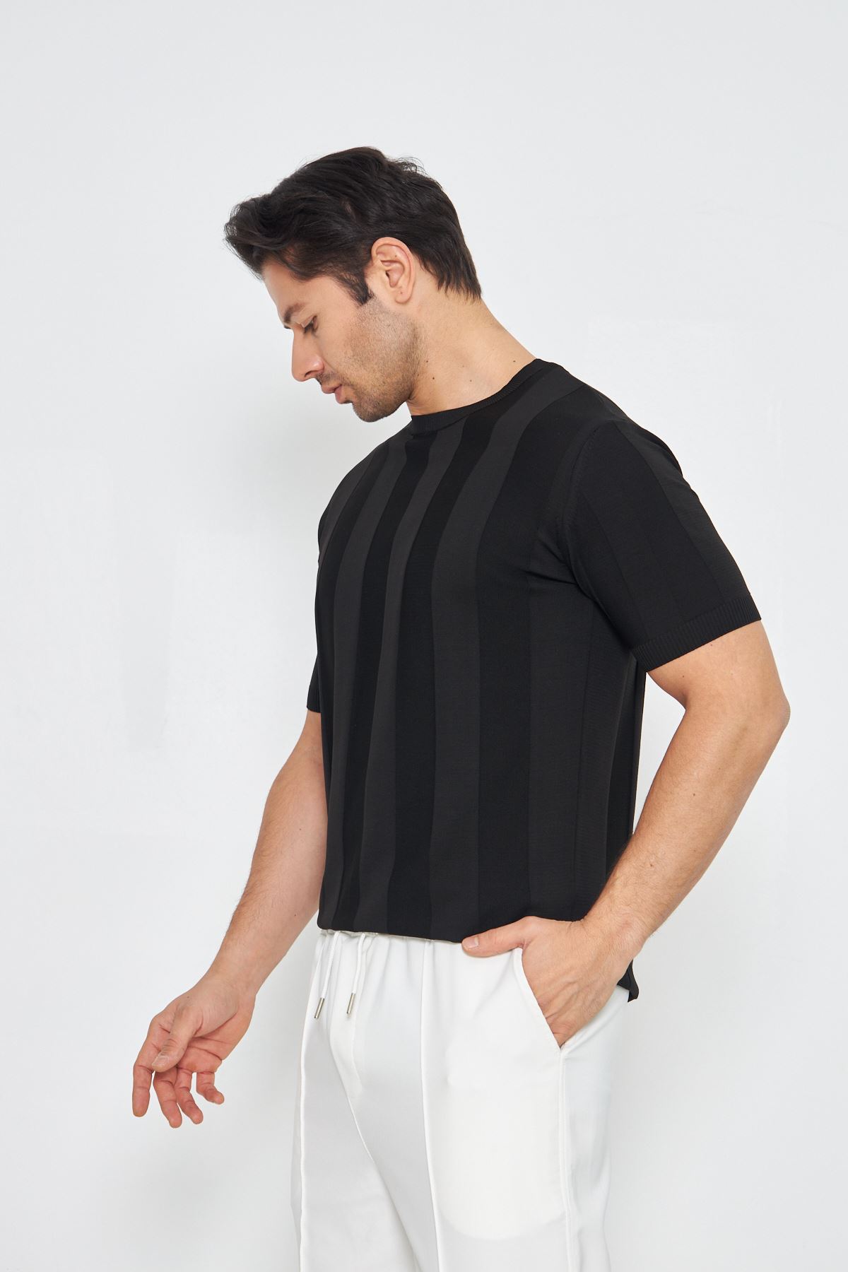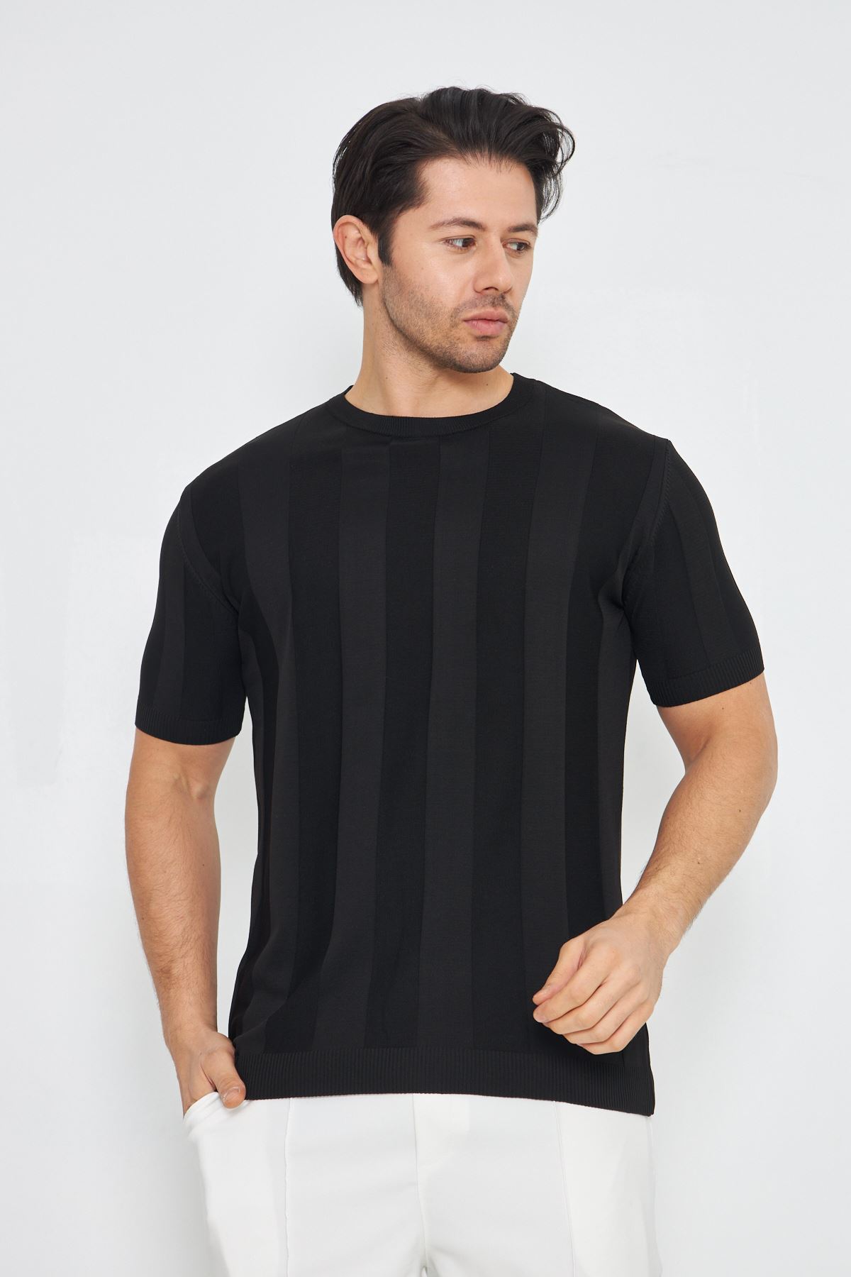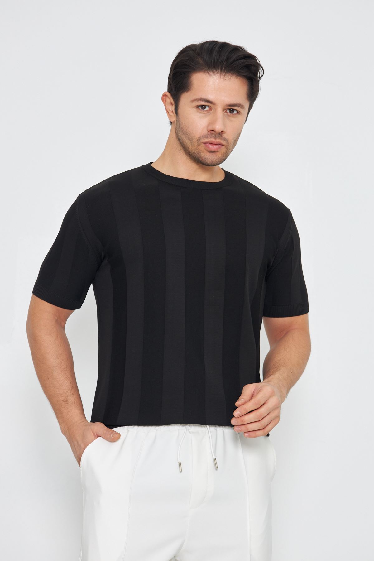 Erkek Kısa Kollu Bisiklet Yaka Düz Kabartma Desen Yaza Uygun Ve Günlük Kullanıma Şık Rahat Triko
