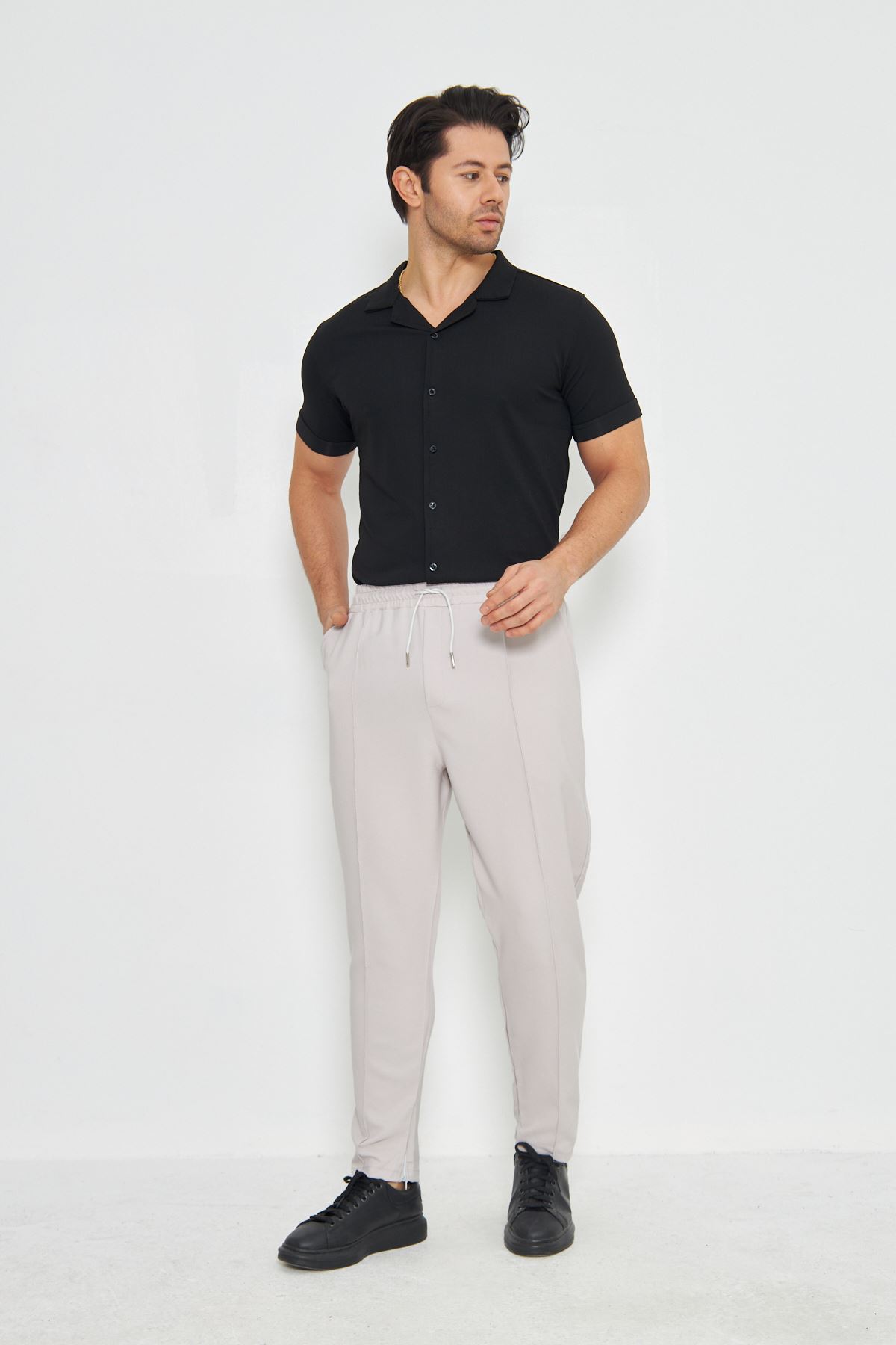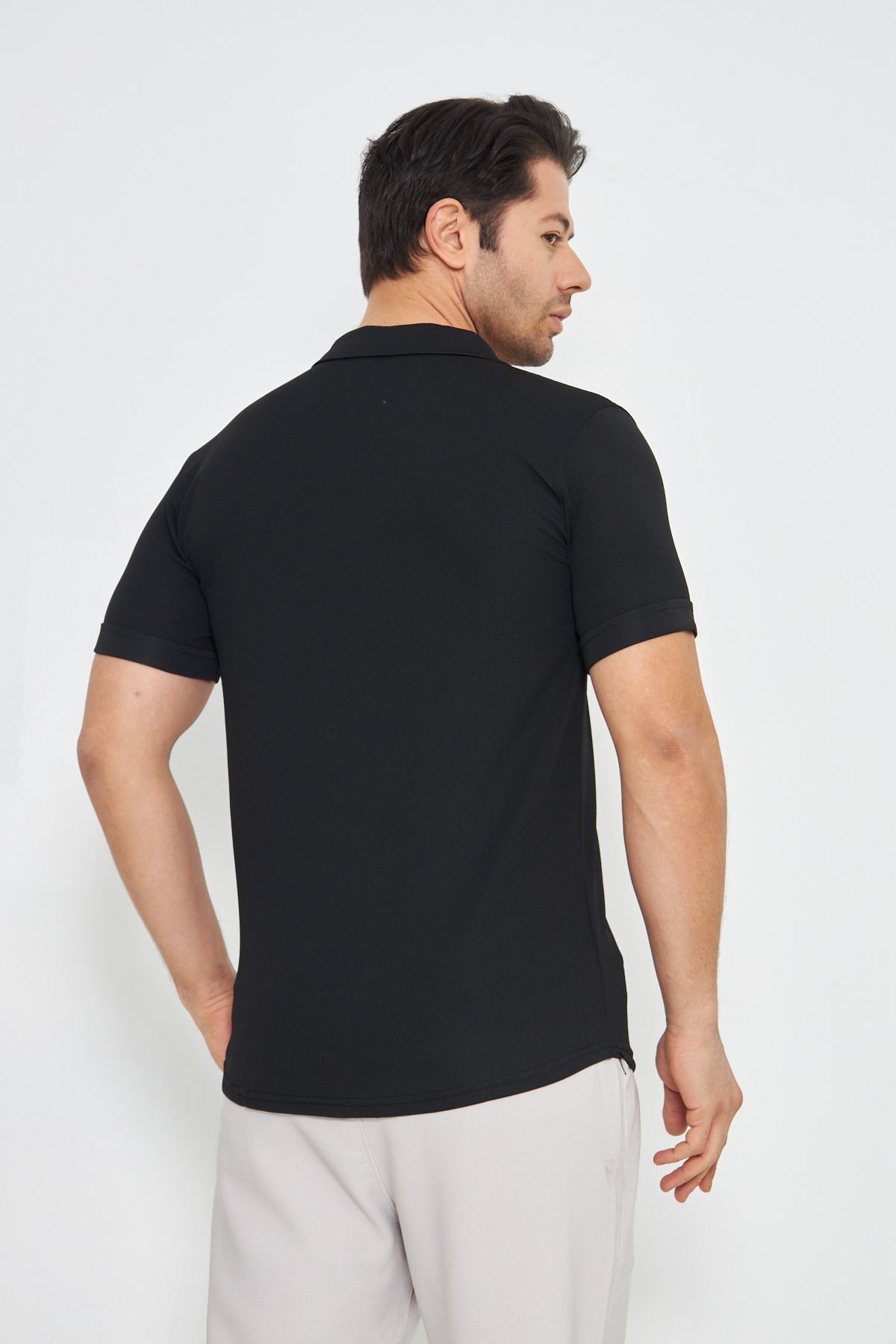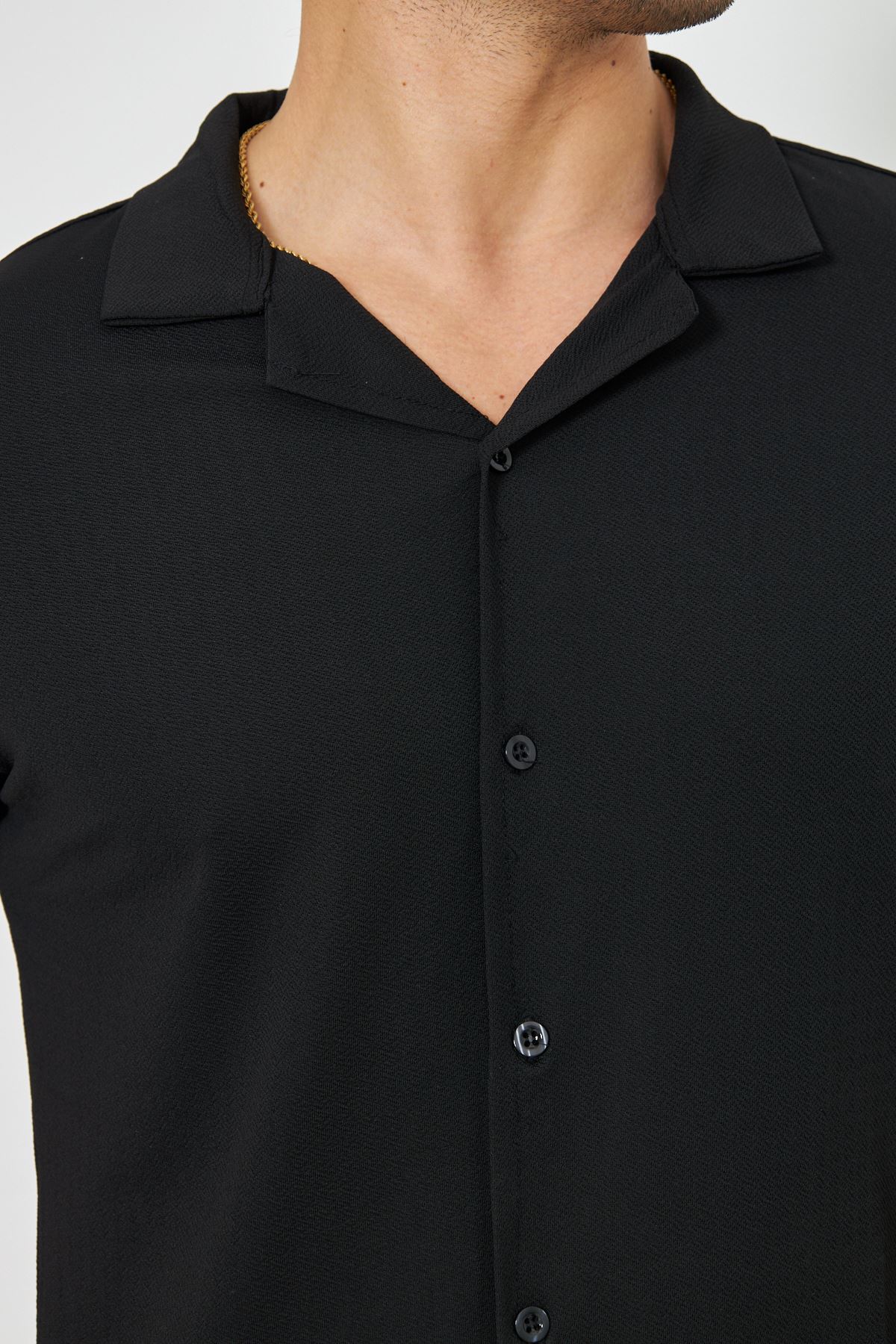 Erkek Örme Kumaş Düğmeli Apaçi yaka Şık Crep Desen Günlük Kullanıma Uygun Kısa Kol Gömlek