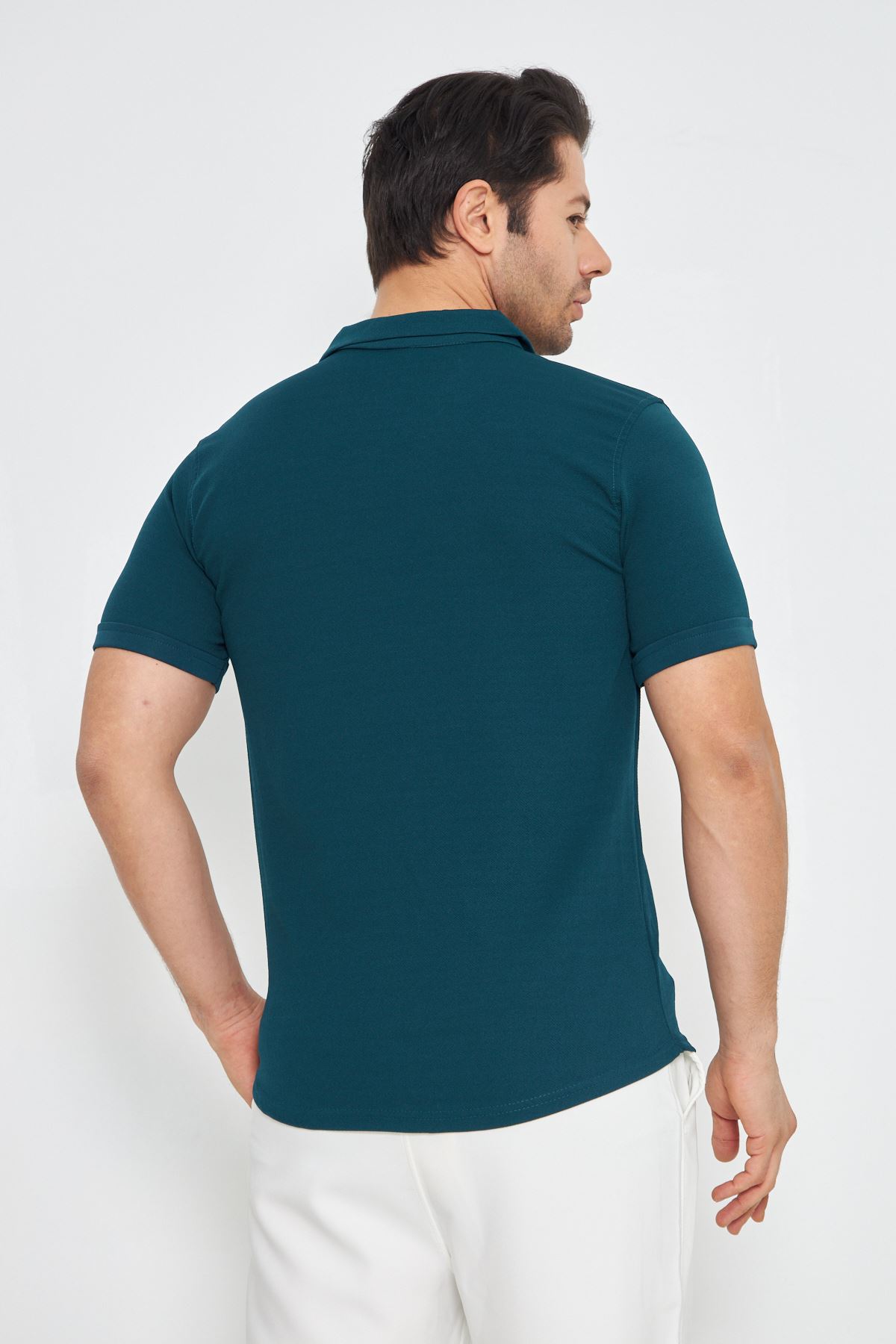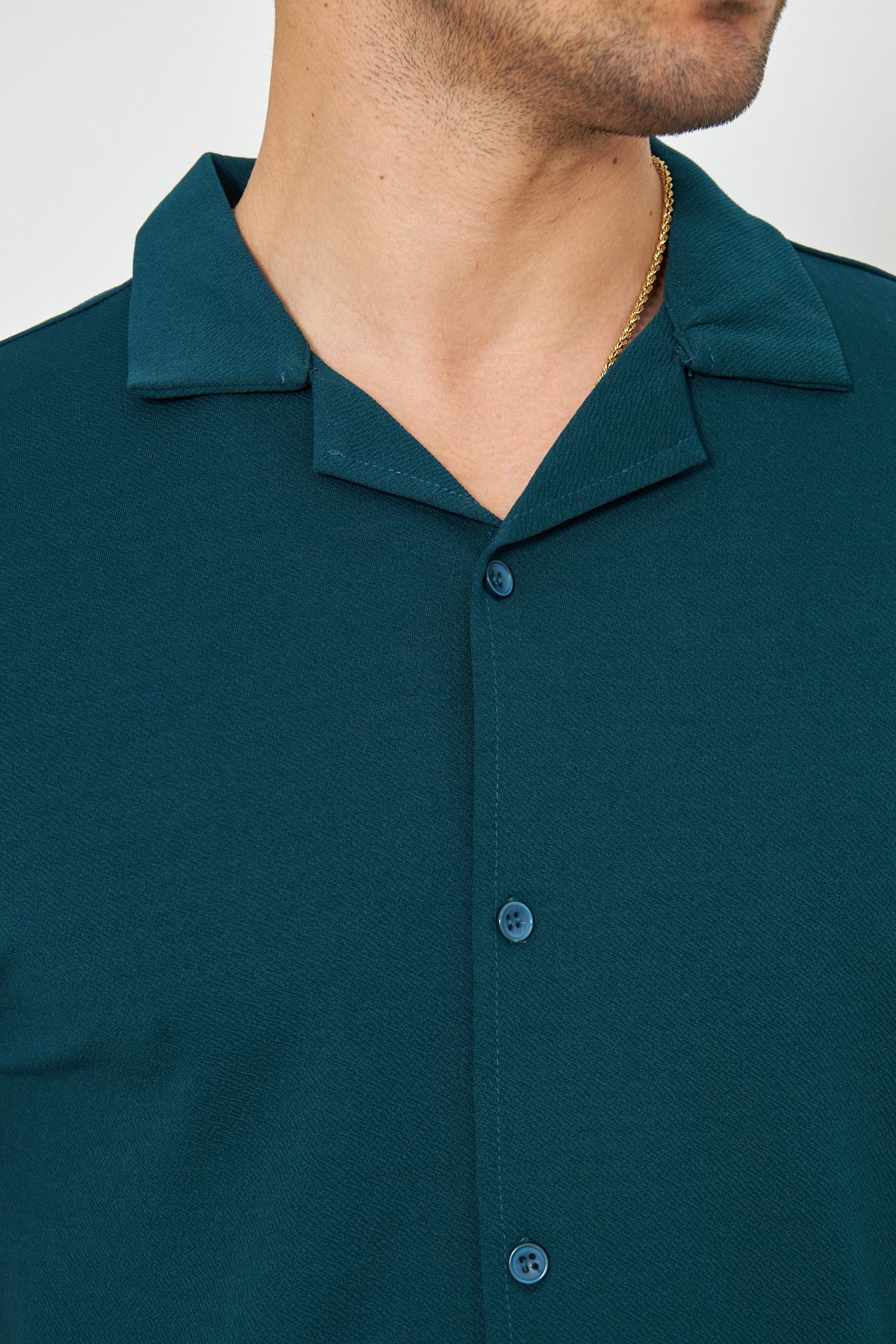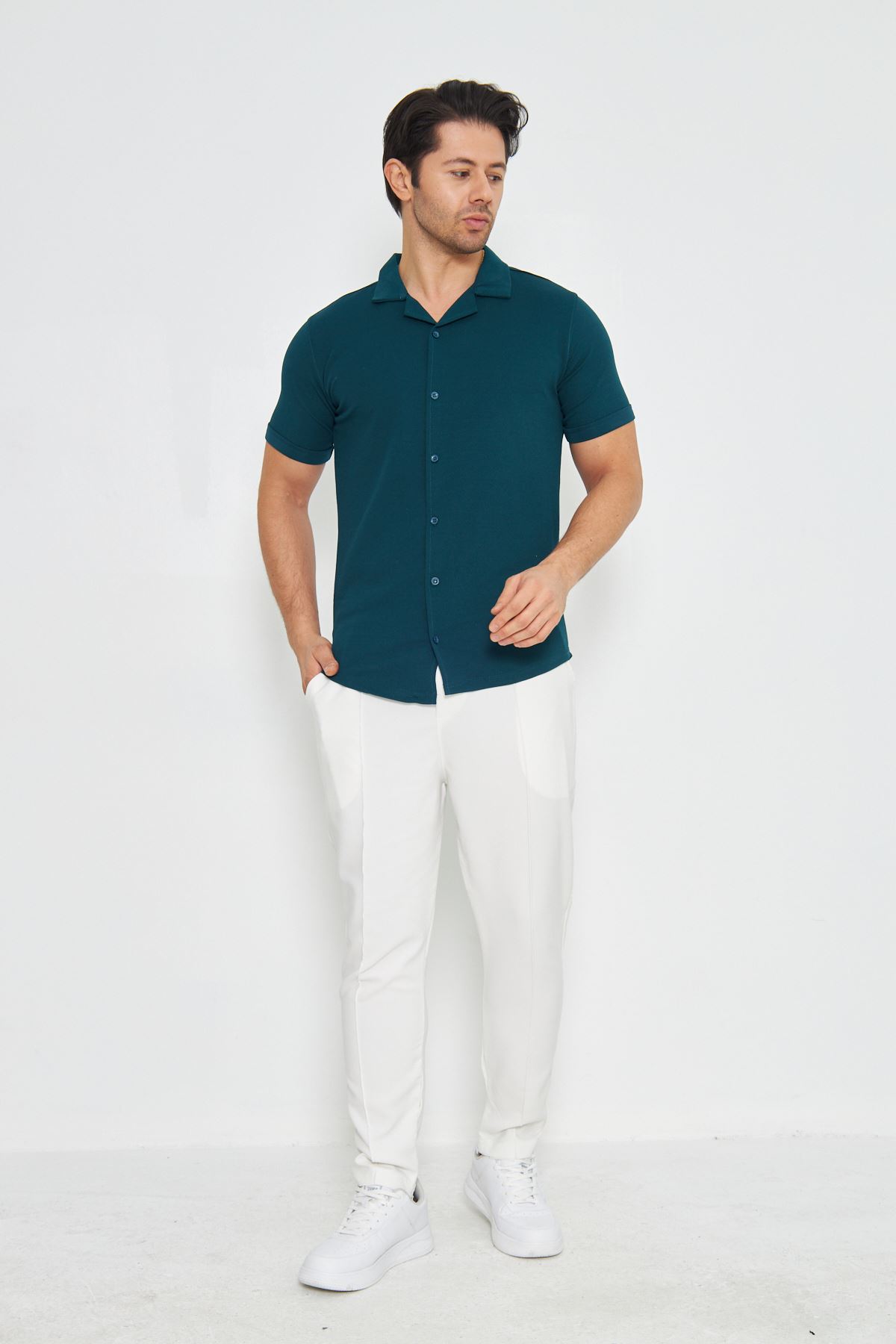 Erkek Örme Kumaş Düğmeli Apaçi yaka Şık Crep Desen Günlük Kullanıma Uygun Kısa Kol Gömlek