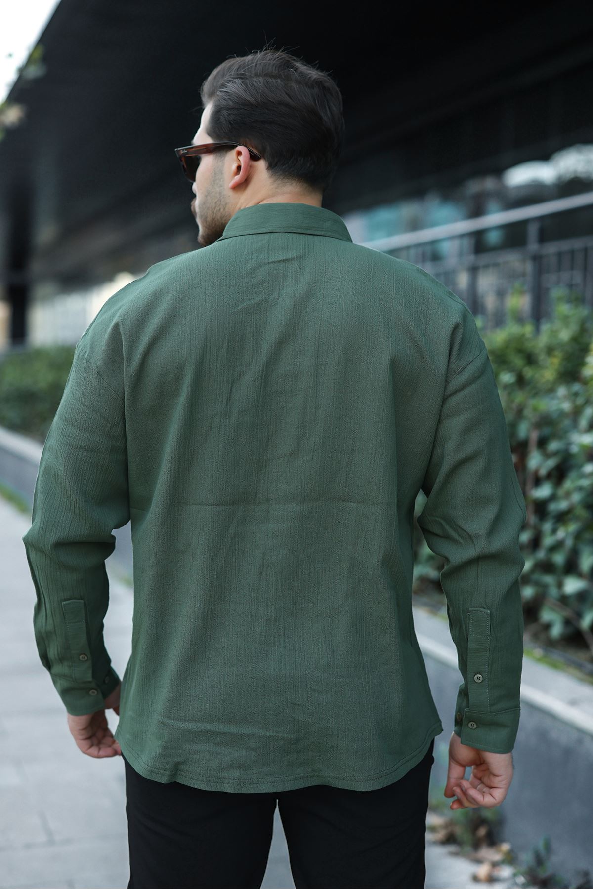 Oversize kalıbı modern ve rahat bir siluet çizerken, gömlek yaka detayıyla klasikle buluşur