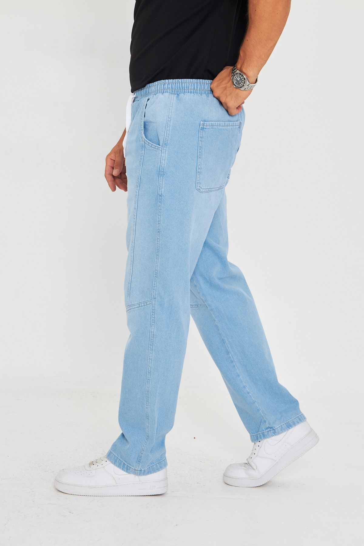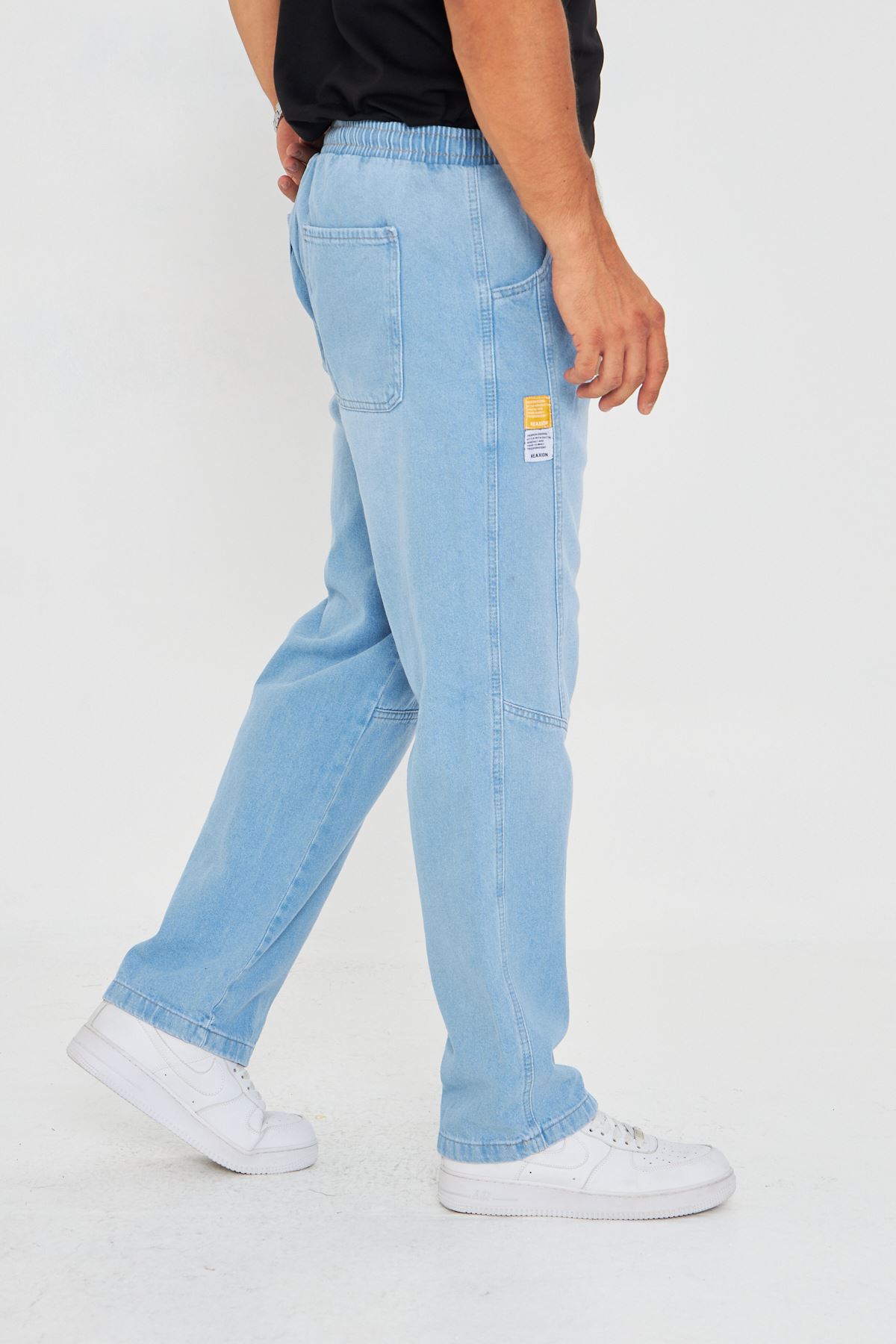 Erkek Parçalı Desen Yan Etiketli Baggy Kot Pantolon 721