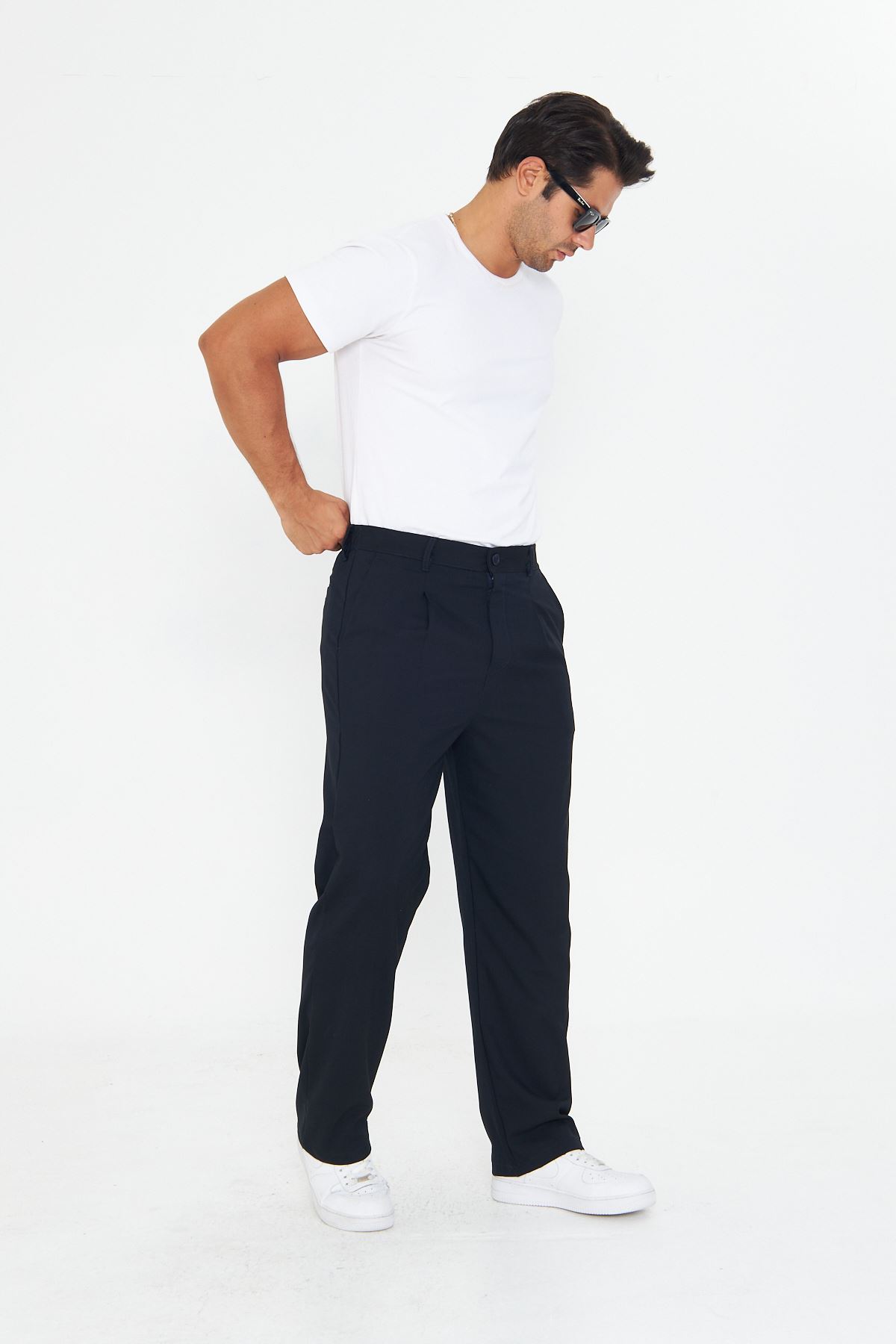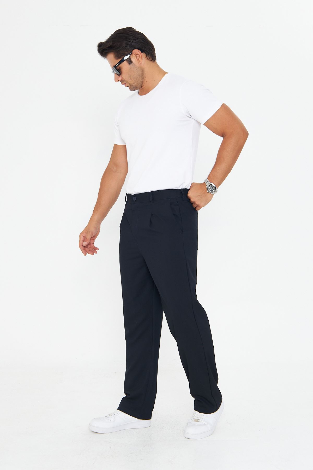Erkek Pileli Baggy Bez Ayağı Kumaş Şık Pantolon