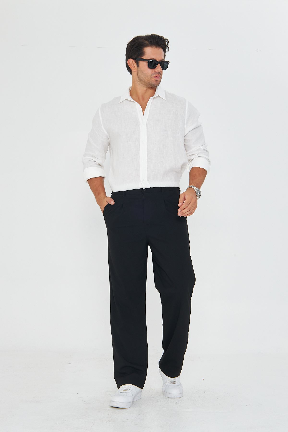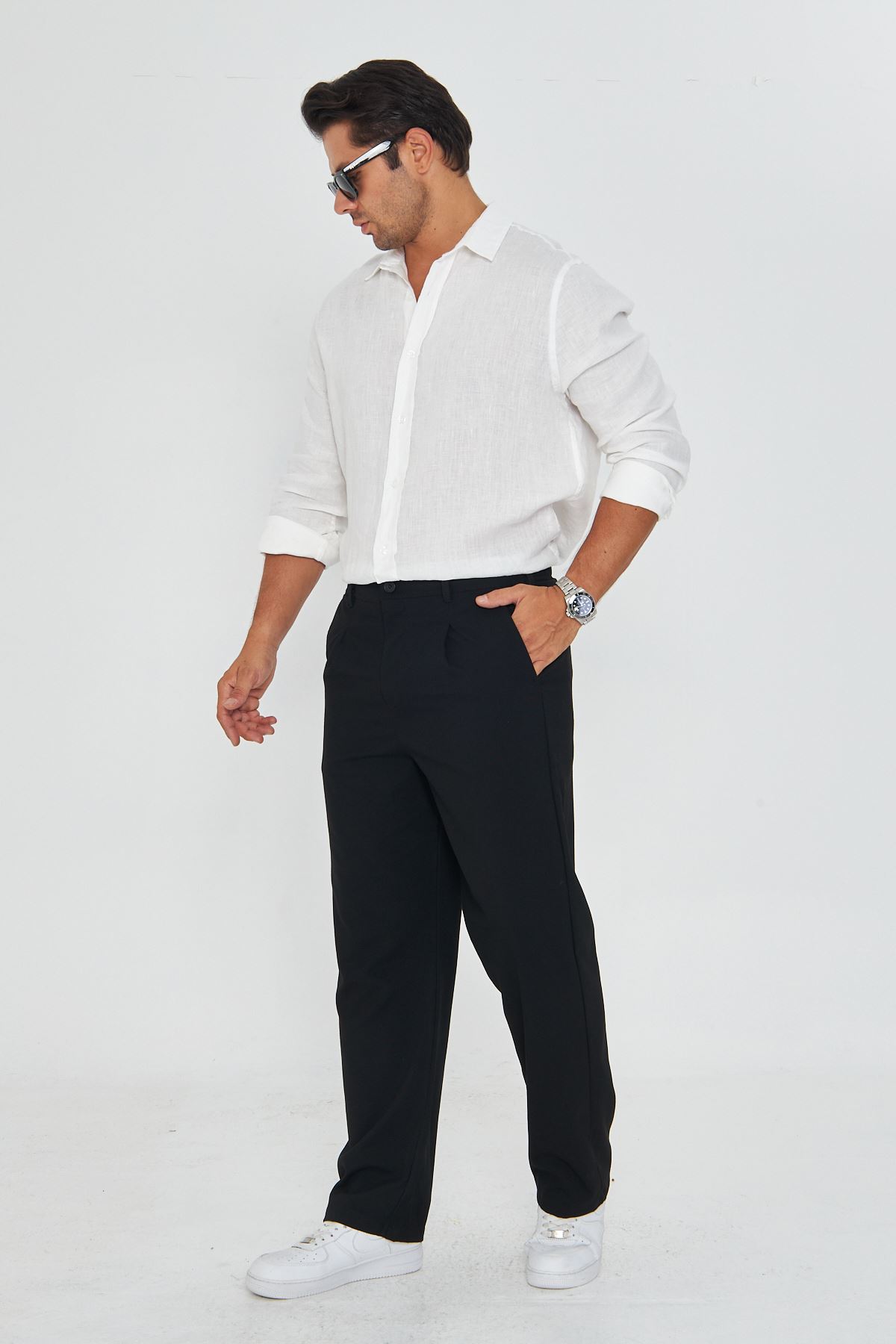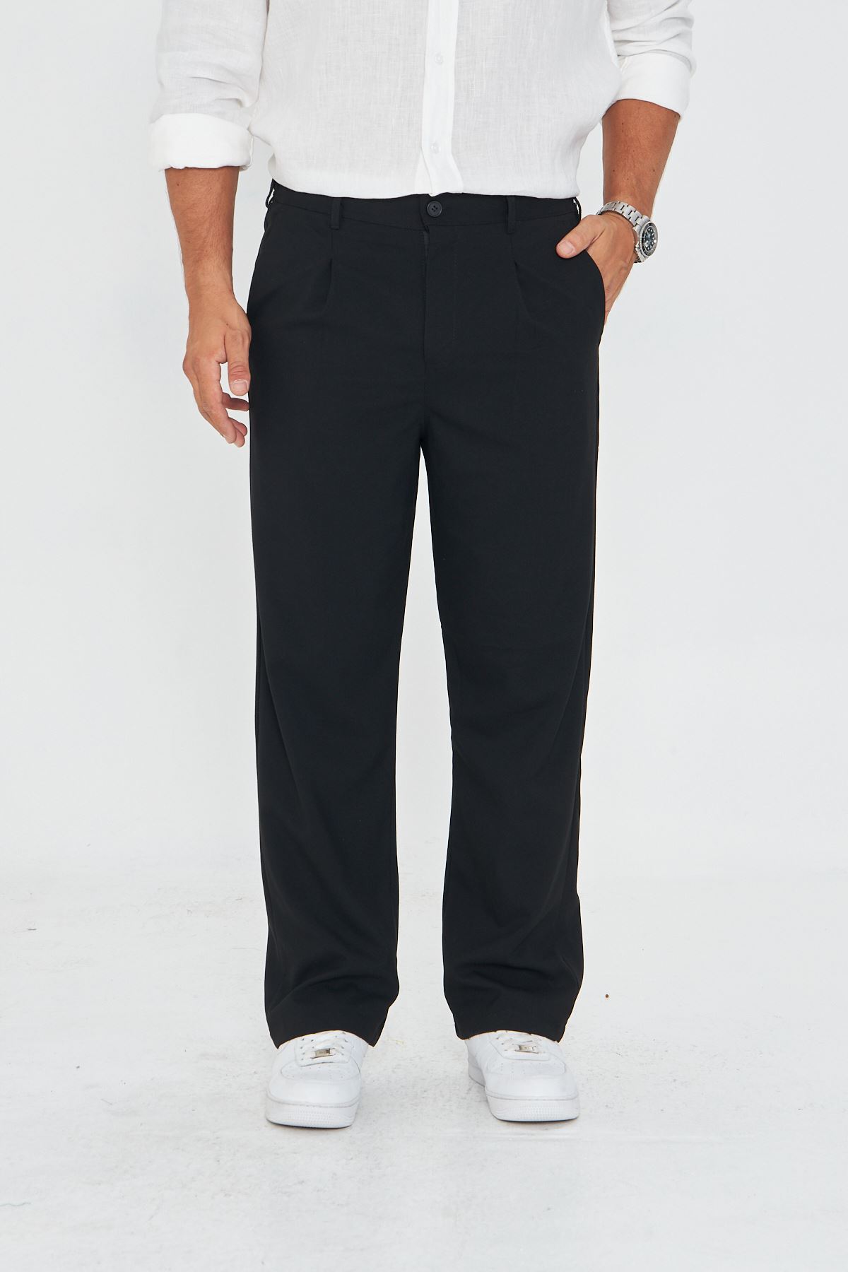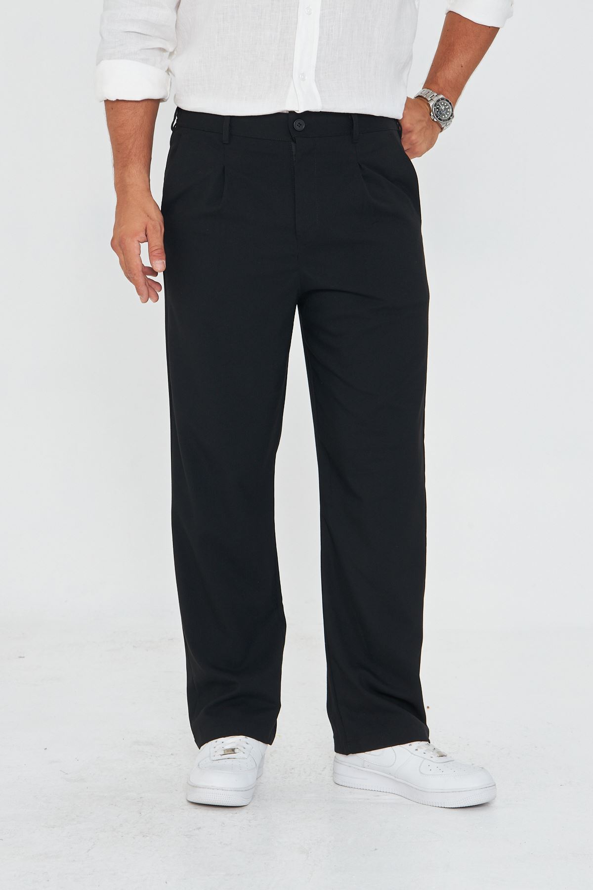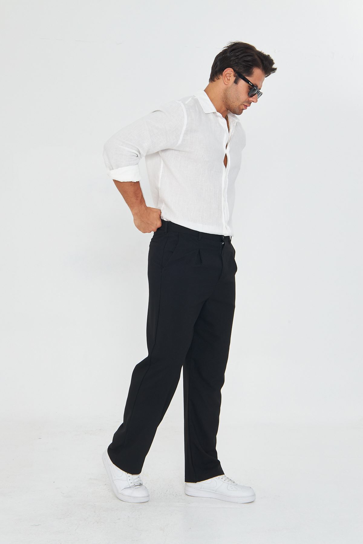 Erkek Pileli Baggy Bez Ayağı Kumaş Şık Pantolon