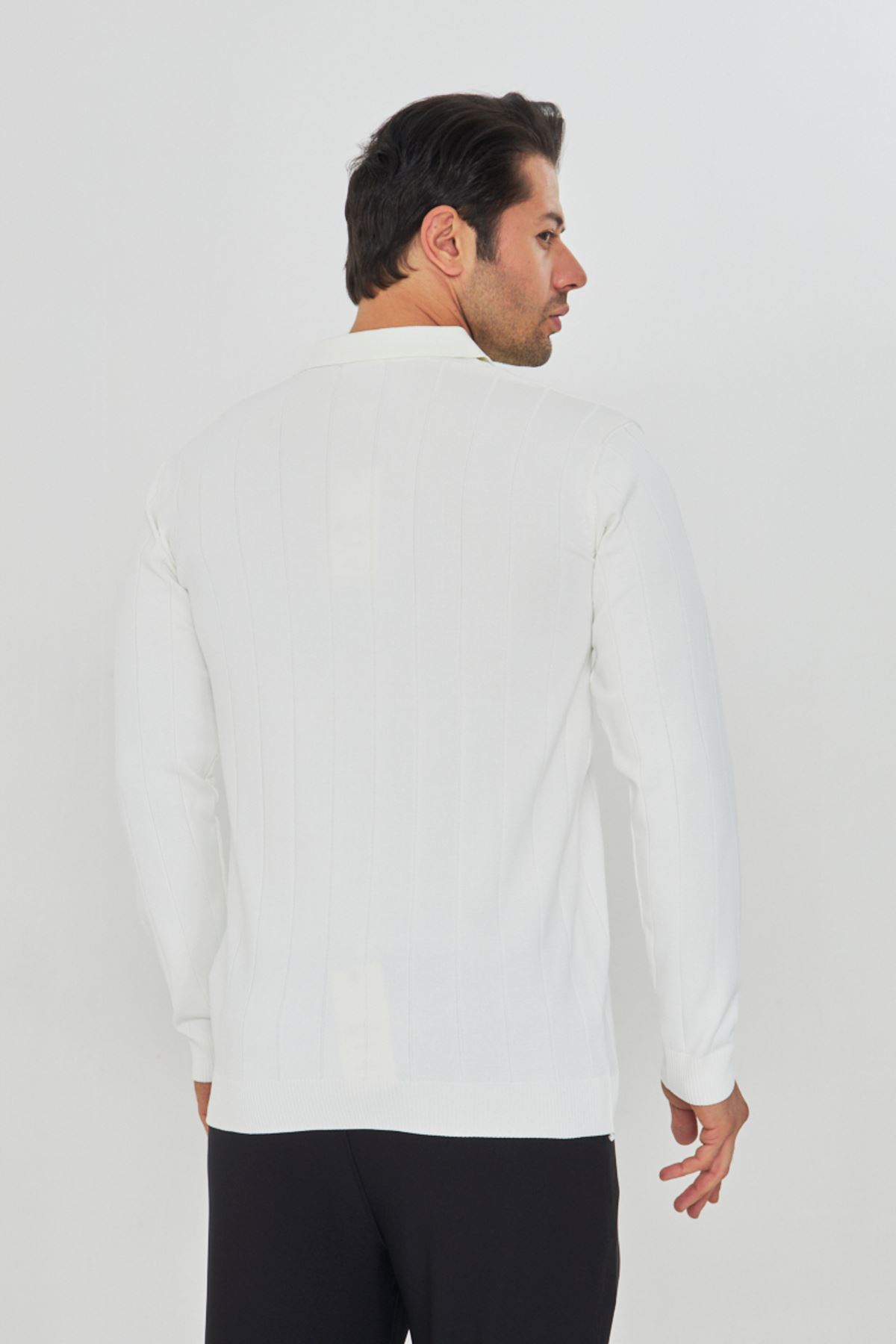 Erkek Gömlek Yaka Göğüs Çizgili Triko Kazak