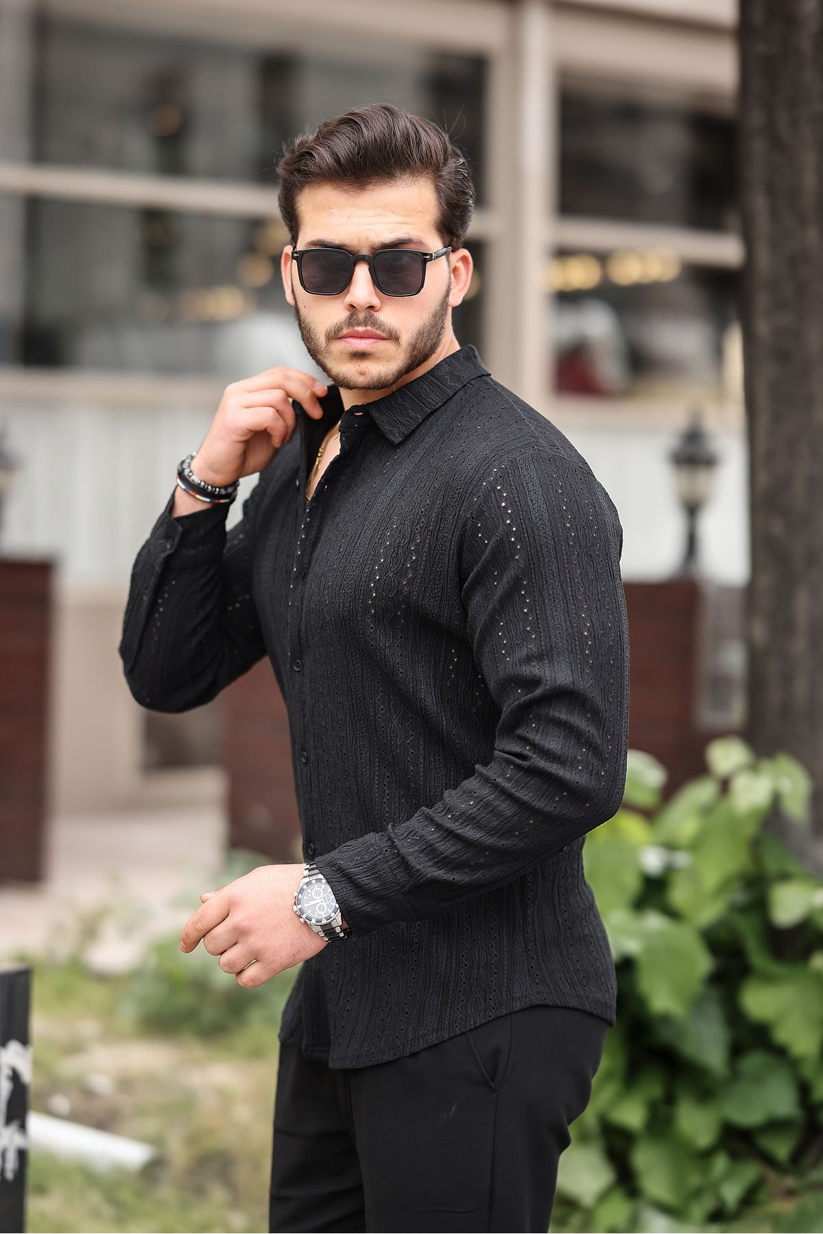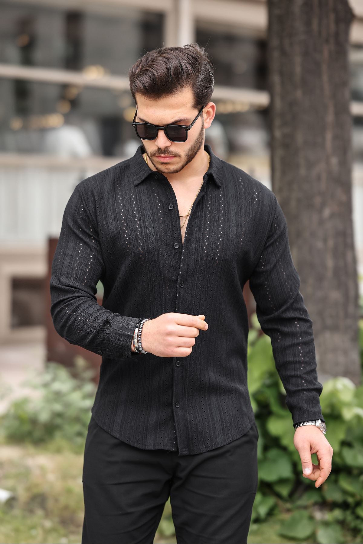 Erkek Uzun Kol Delikli Desen Örme Kumaş Regular Kalıp Kalıp Yeni Sezon Gömlek