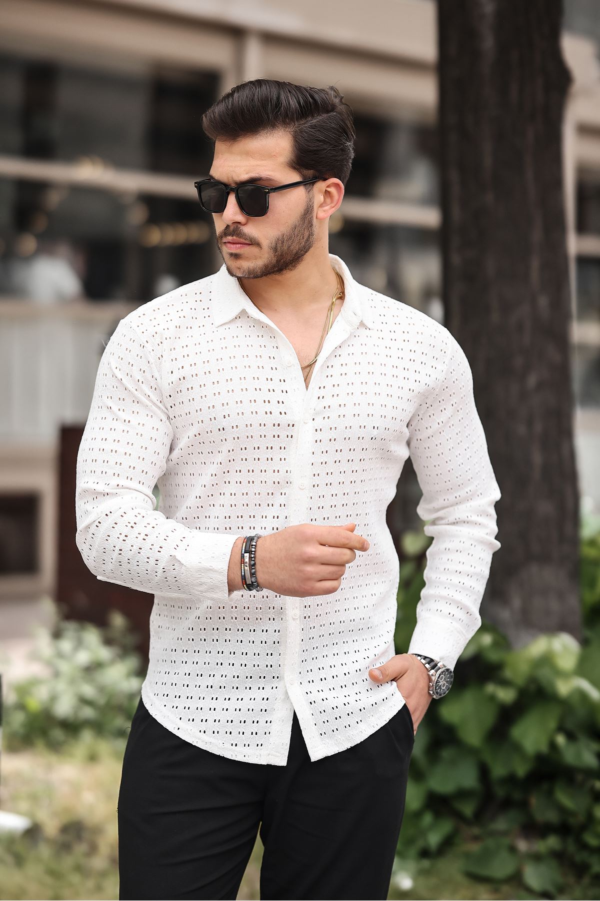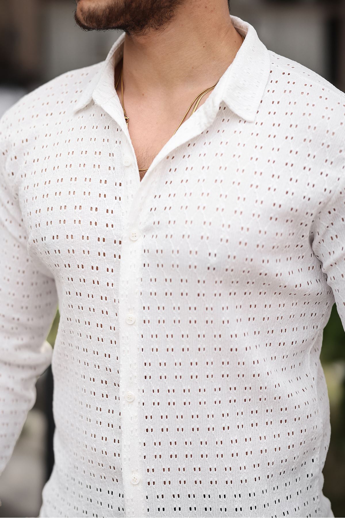 Erkek Uzun Kol Delikli Desen Örme Kumaş Regular Kalıp Kalıp Yeni Sezon Gömlek