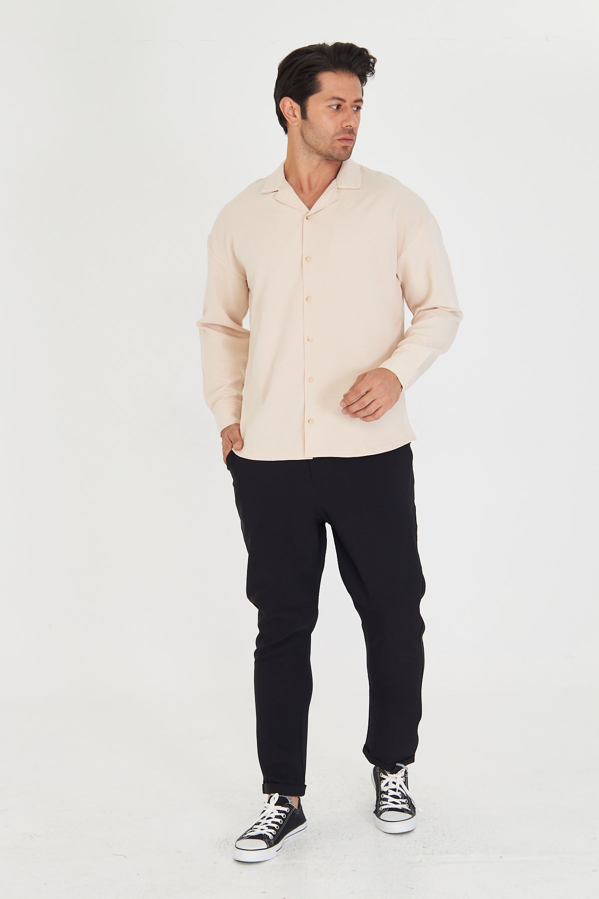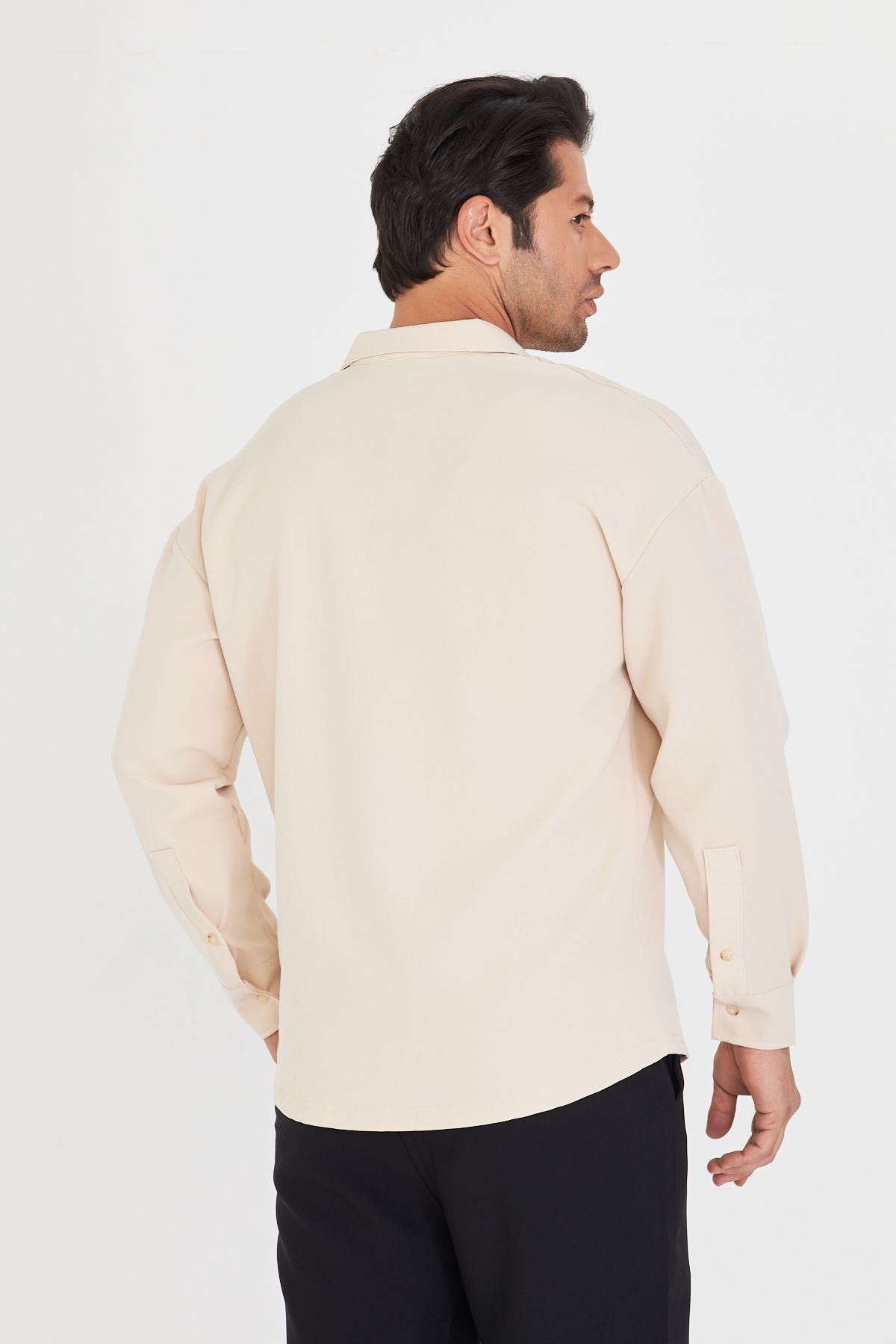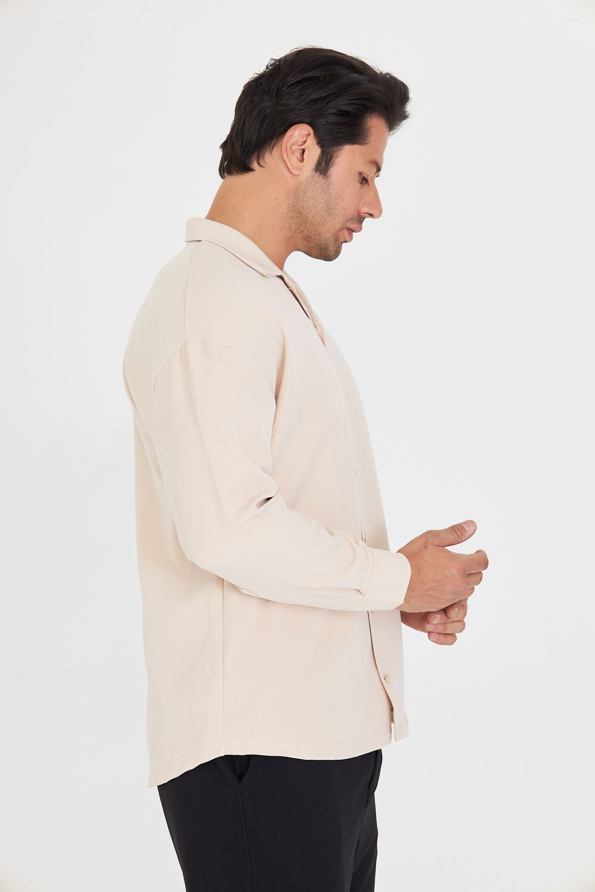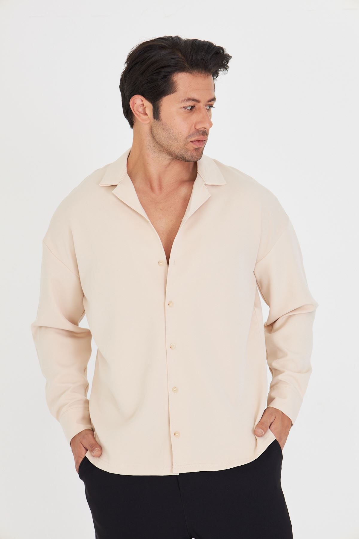 Erkek Uzun Kol Likralı Dabıl Kumaş Apaç Yaka Düşük Omuz Oversize Gömlek