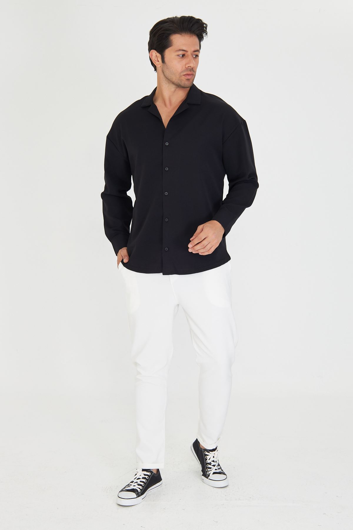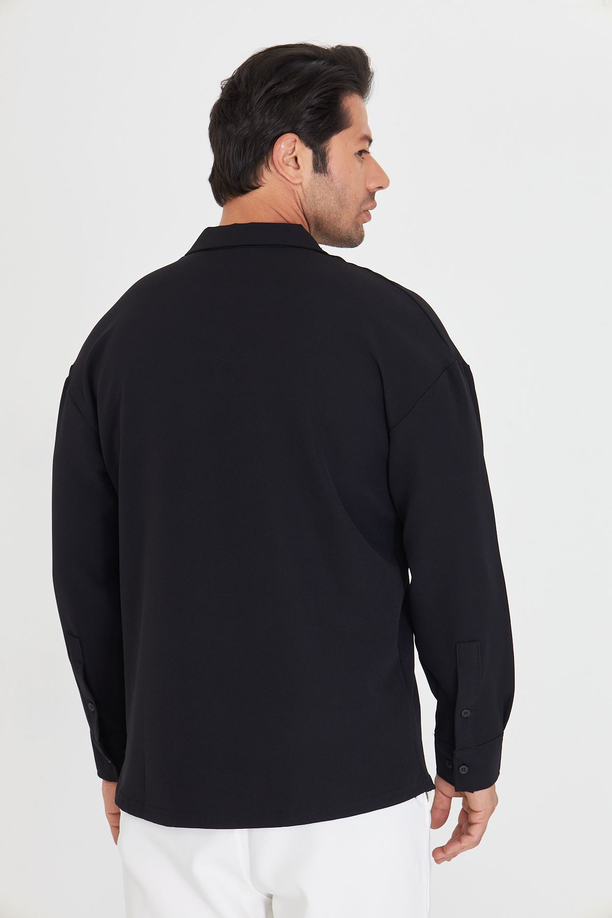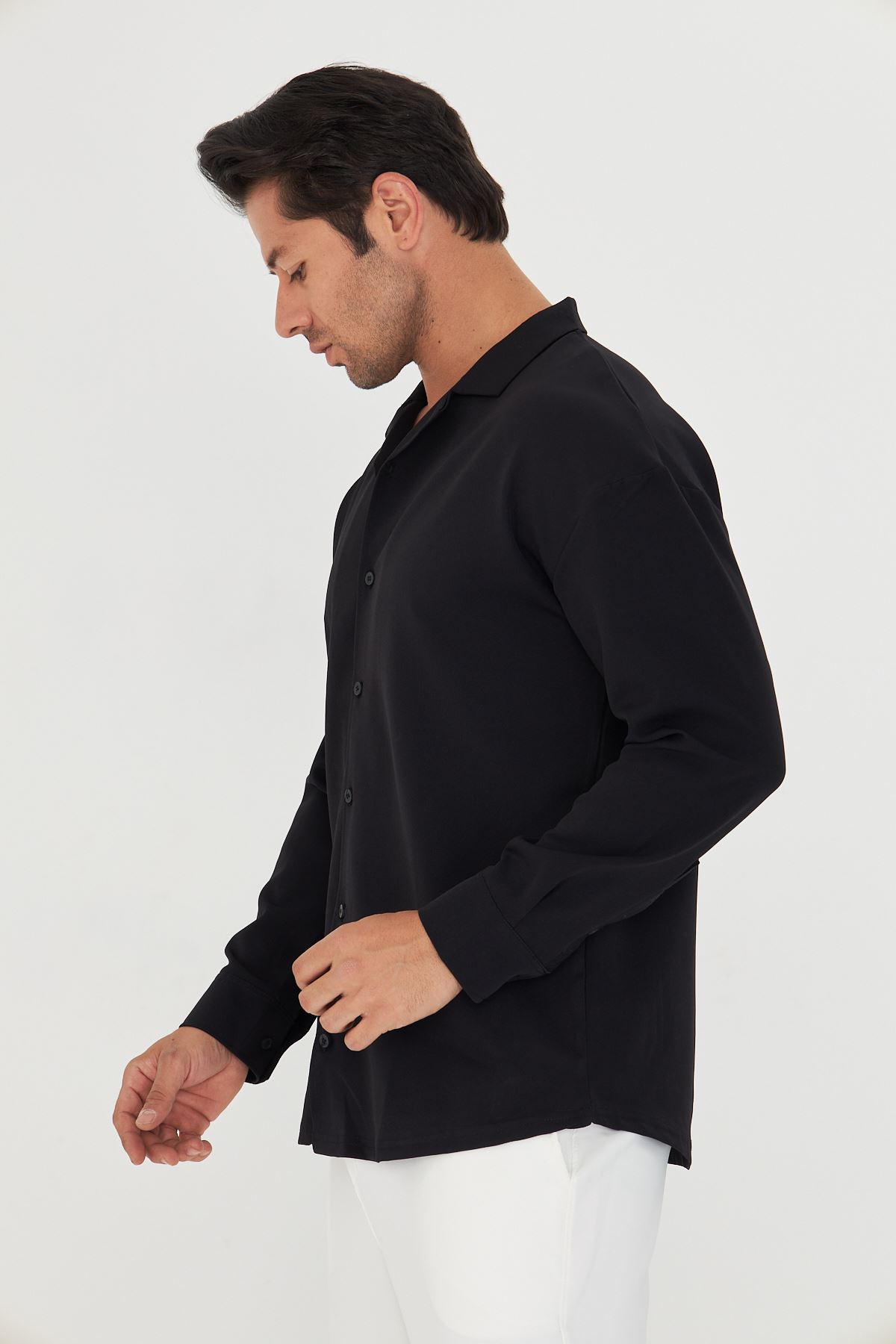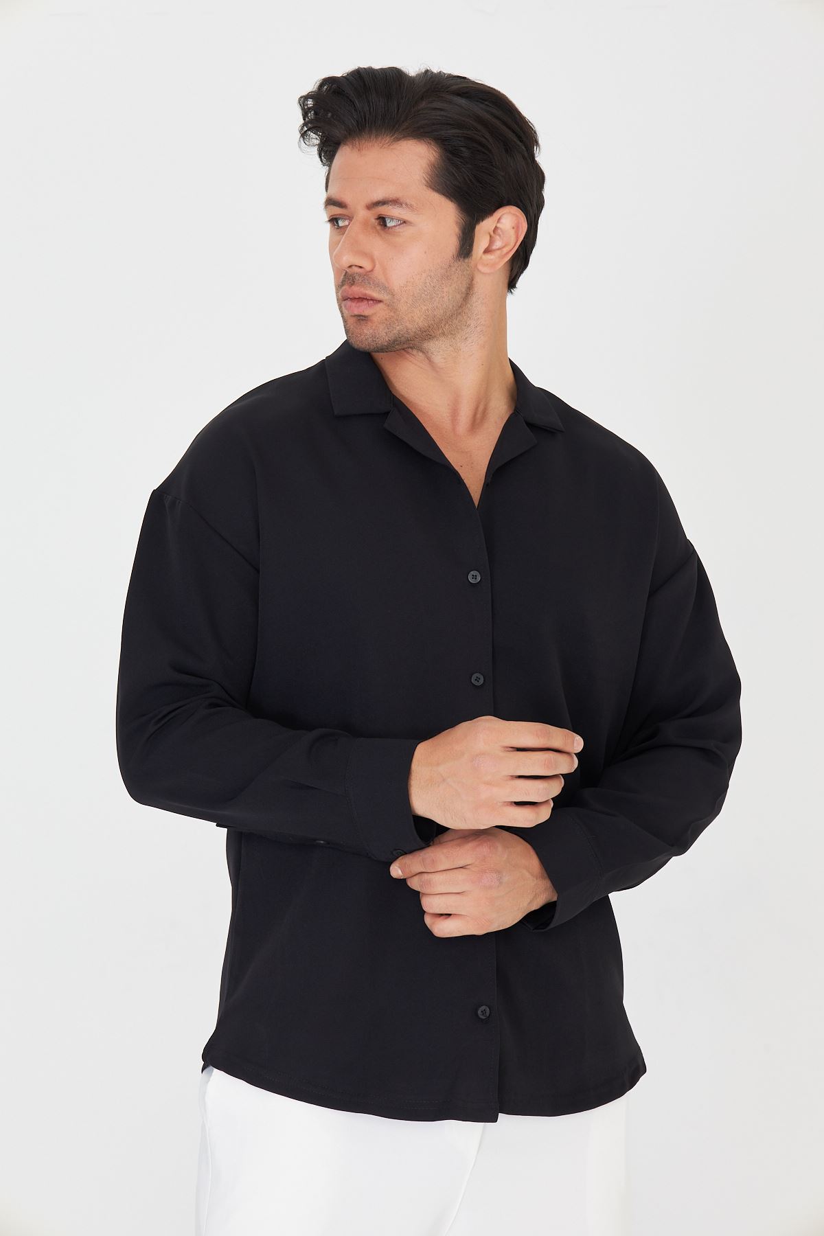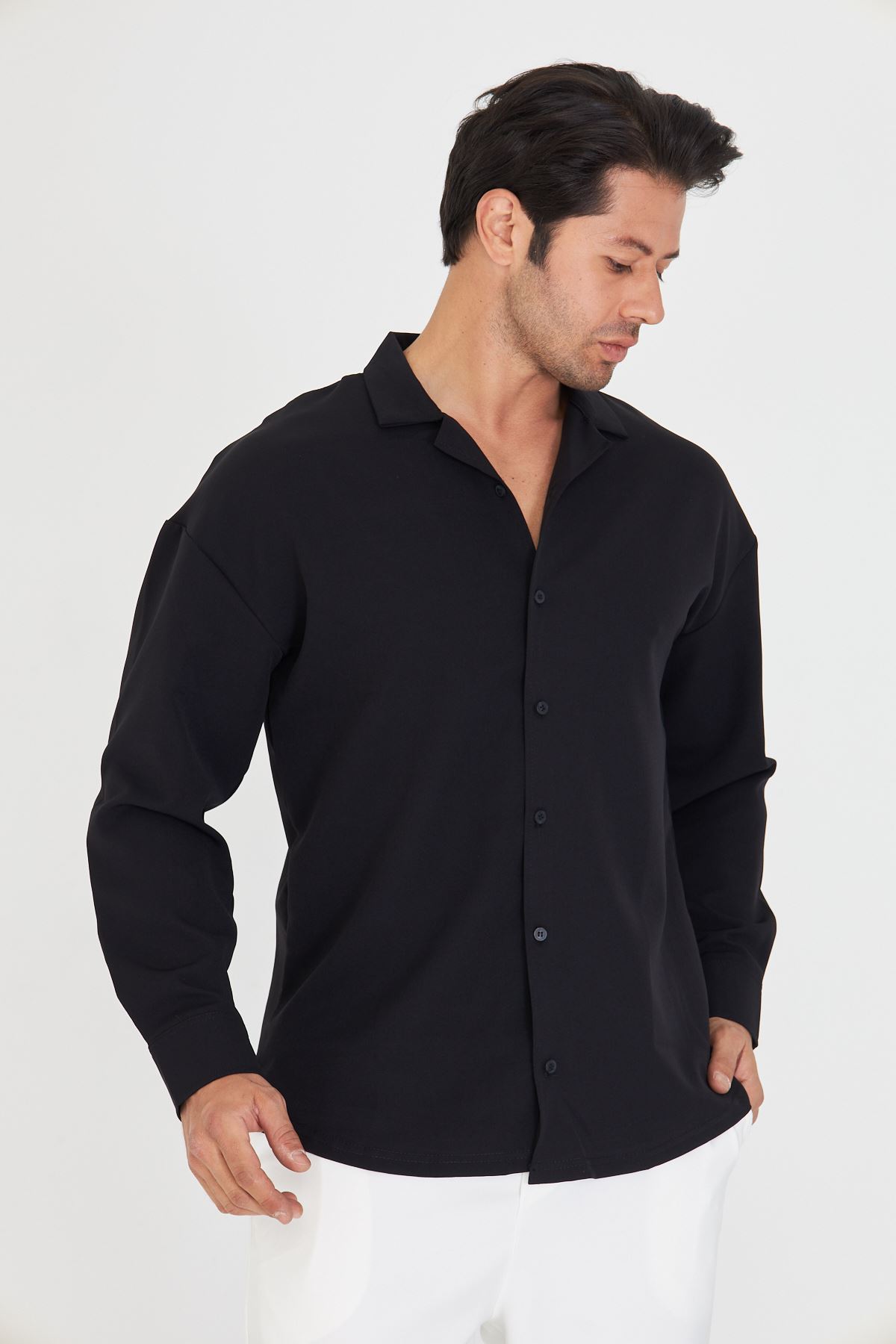 Erkek Uzun Kol Likralı Dabıl Kumaş Apaç Yaka Düşük Omuz Oversize Gömlek