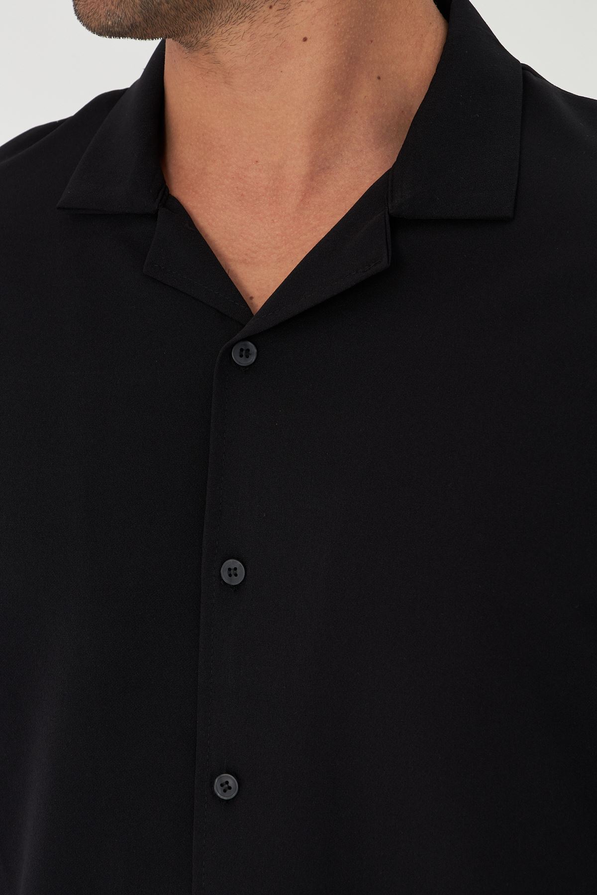 Erkek Yarım Oversize Uzun Kol Apaçi Yaka Ütü Gerektirmeyen Crep Desen Gömlek