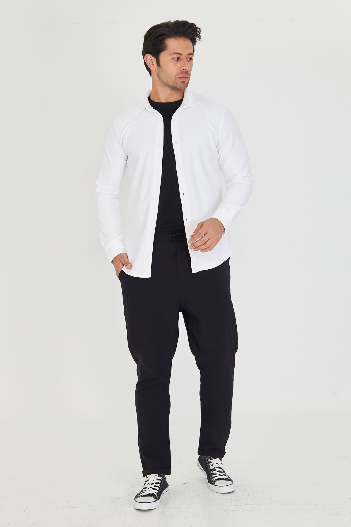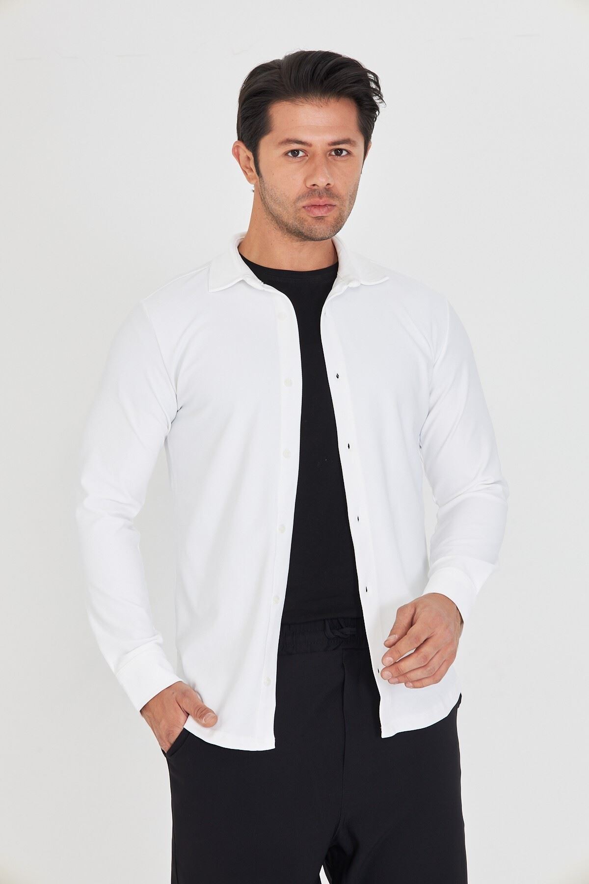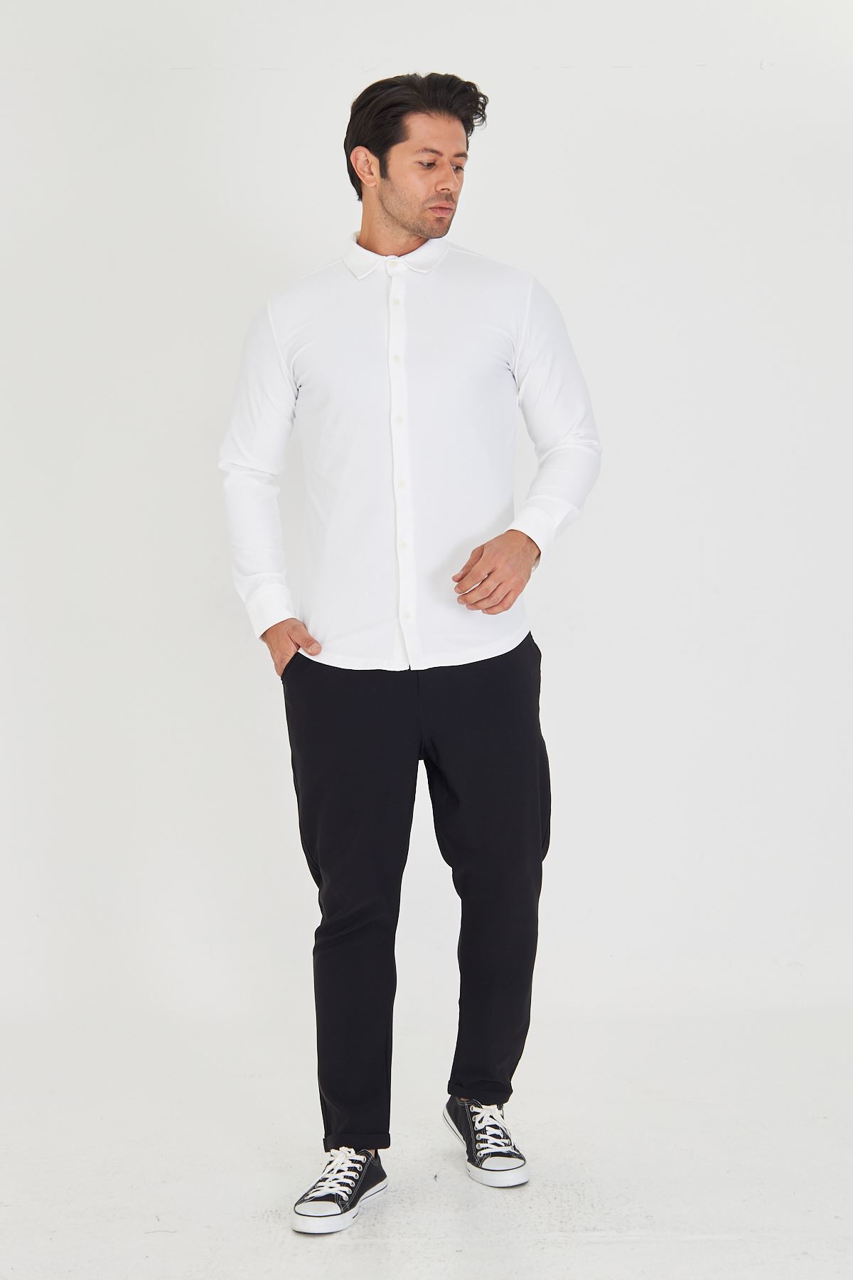 Erkek Uzun Kol Pike Kumaş Dik Yaka Günlük Kullanıma Uygun Slim Klasik Gömlek