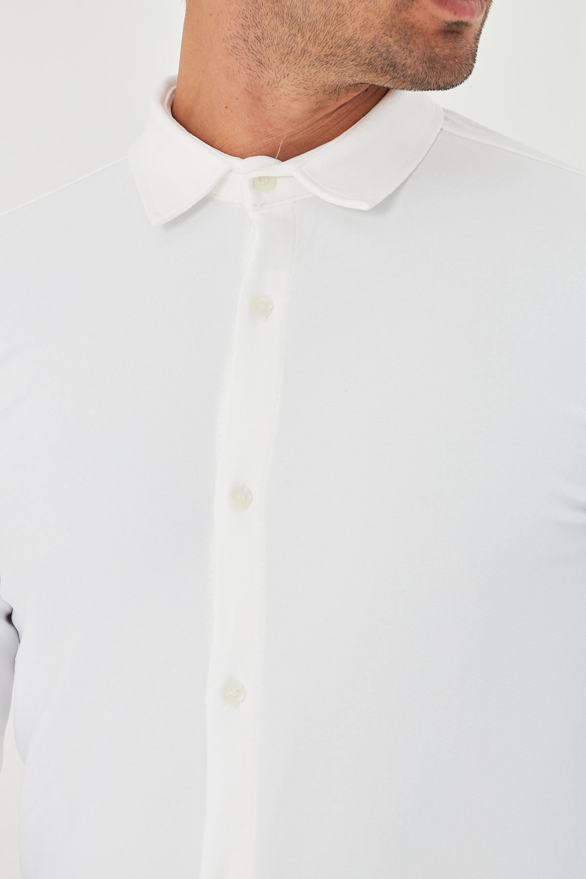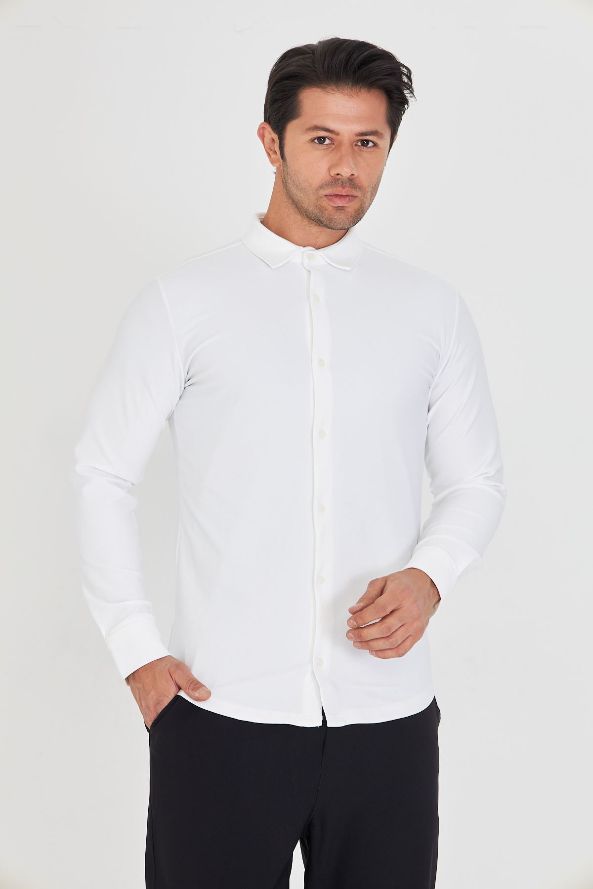 - Rahat ve şık bir kullanım sunan slim fit kesim, günlük aktivitelerinizde konfor sağlar.; - Pike kumaş yapısı ile hafif ve nefes alabilen bir yapıya sahiptir, böylece gün boyu rahat hissedersiniz.; - Düğmeli kapama şekli sayesinde pratik kullanım imkanı sunar; kolayca giyilip çıkarılabilir.; - Cepsiz tasarımıyla minimalist bir görünüm sergilerken, gömlek yakası detayı modern bir dokunuş katmaktadır.; - Esnek yapısı sayesinde hareket özgürlüğü artırır ve vücut hatlarınıza uyum sağlar.; - Her mevsime uygun olan bu gömlek, yılın her dönemi için idealdir; tüm sezonlarda gardırobunuzda yerini alır.; - Tekli paket içeriğiyle ihtiyacınız olan tek parça olarak gelir; ekstra eşya taşıma derdine son verir.; - Esnek materyali sayesinde uzun süreli kullanımda bile formunu korur ve dayanıklılık gösterir.; - Polyester karışımlı kumaşı kolay bakım avantajları sunarken aynı zamanda dayanıklılığı arttırır.; - Uzun kollu tasarım soğuk havalarda ekstra koruma sağlarken düz deseniyle sadelikten yana olanların tercihi olur.; - Klasik ortamlara uygun siluetiyle işlevsellikle estetiği buluşturur; her türden etkinlikte şıklığınızla fark edilmenizi sağlar.
