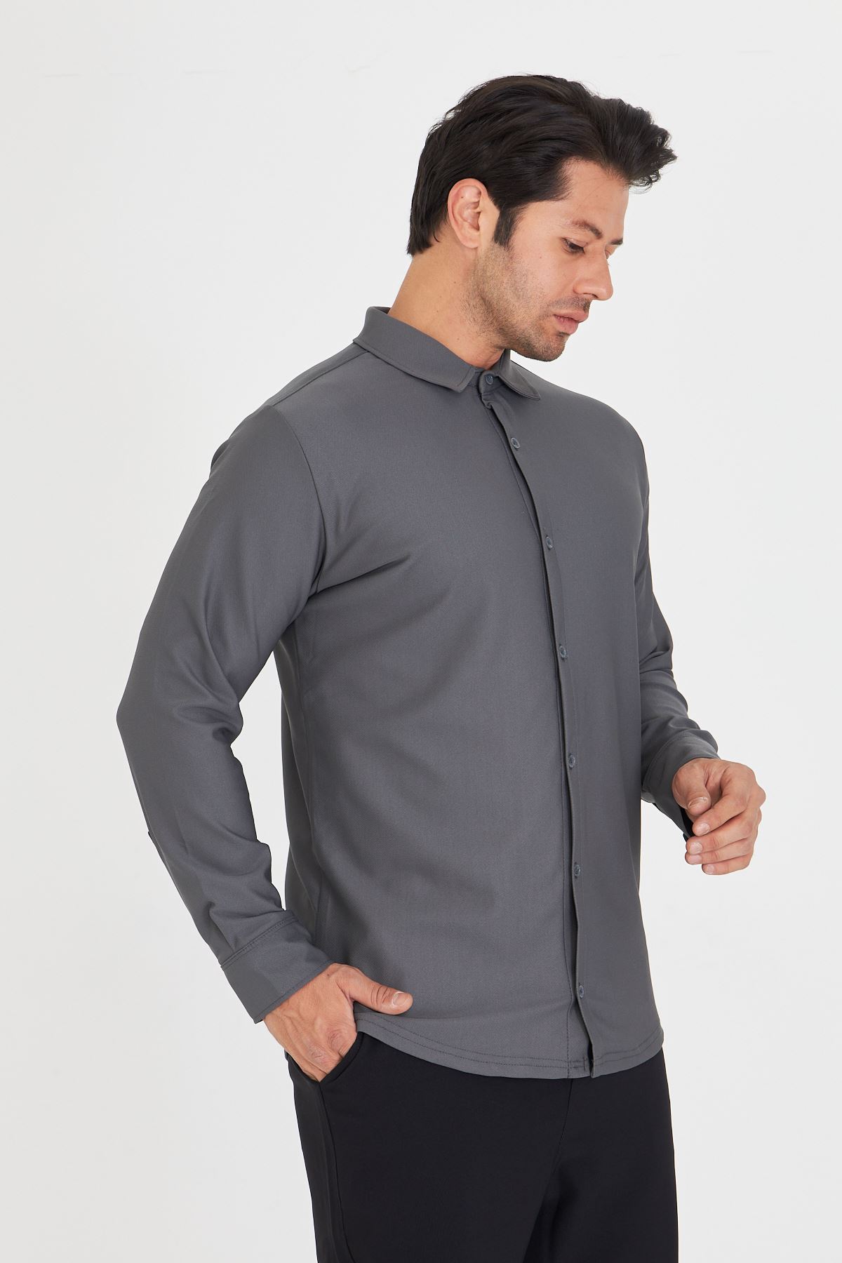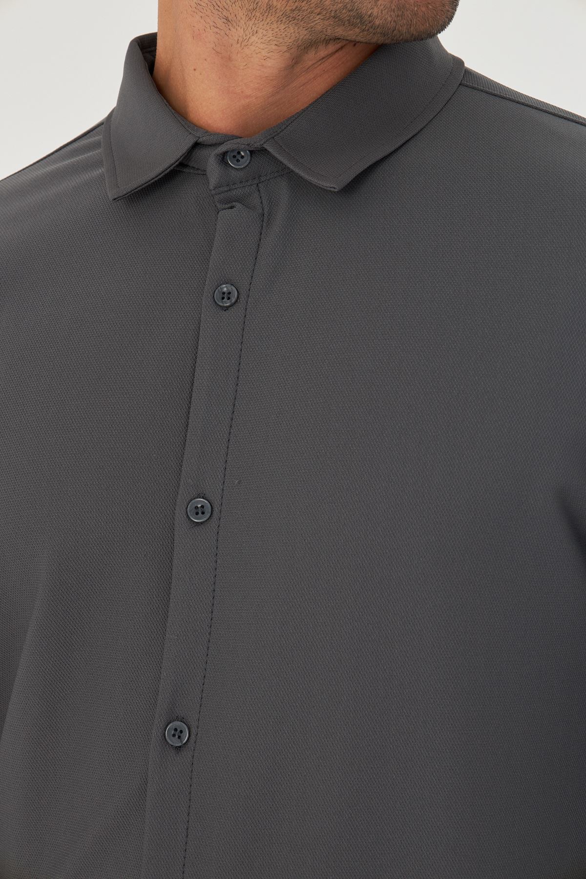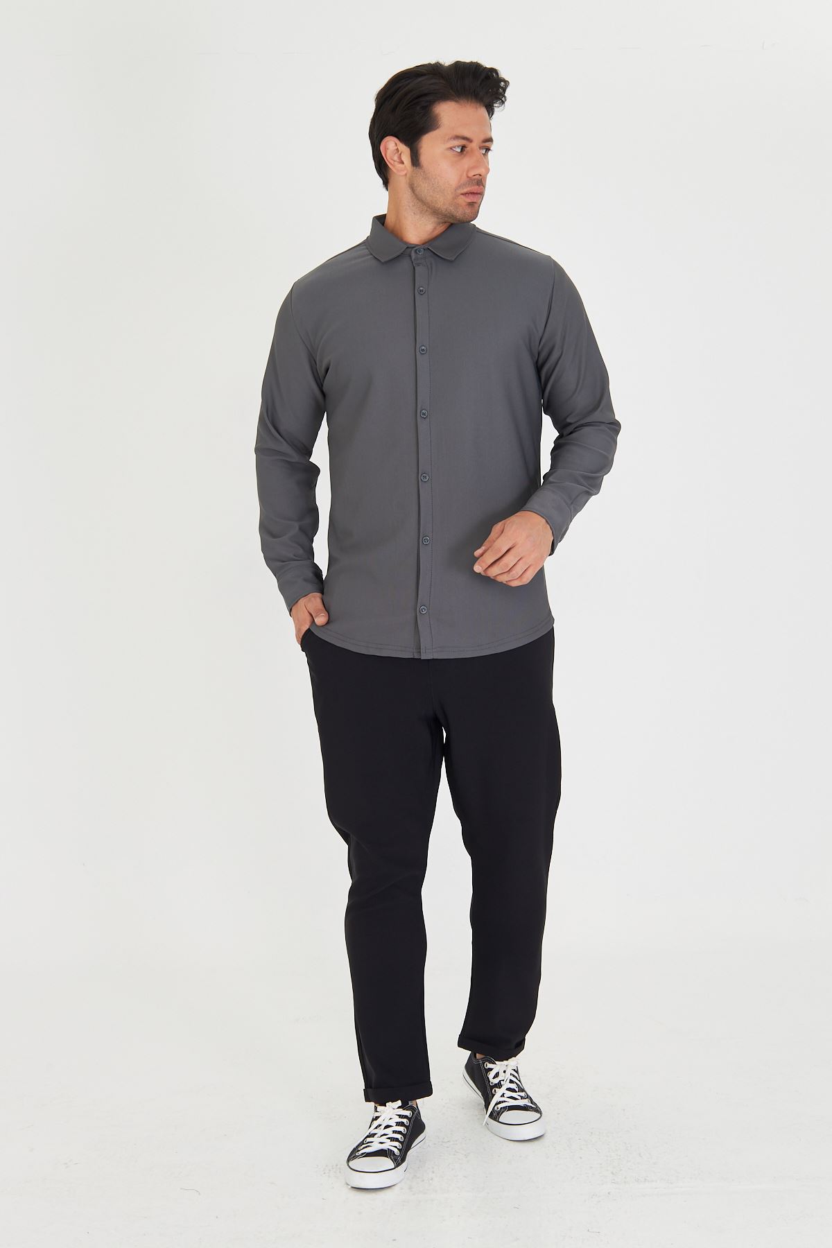 Erkek Uzun Kol Pike Kumaş Dik Yaka Günlük Kullanıma Uygun Slim Klasik Gömlek