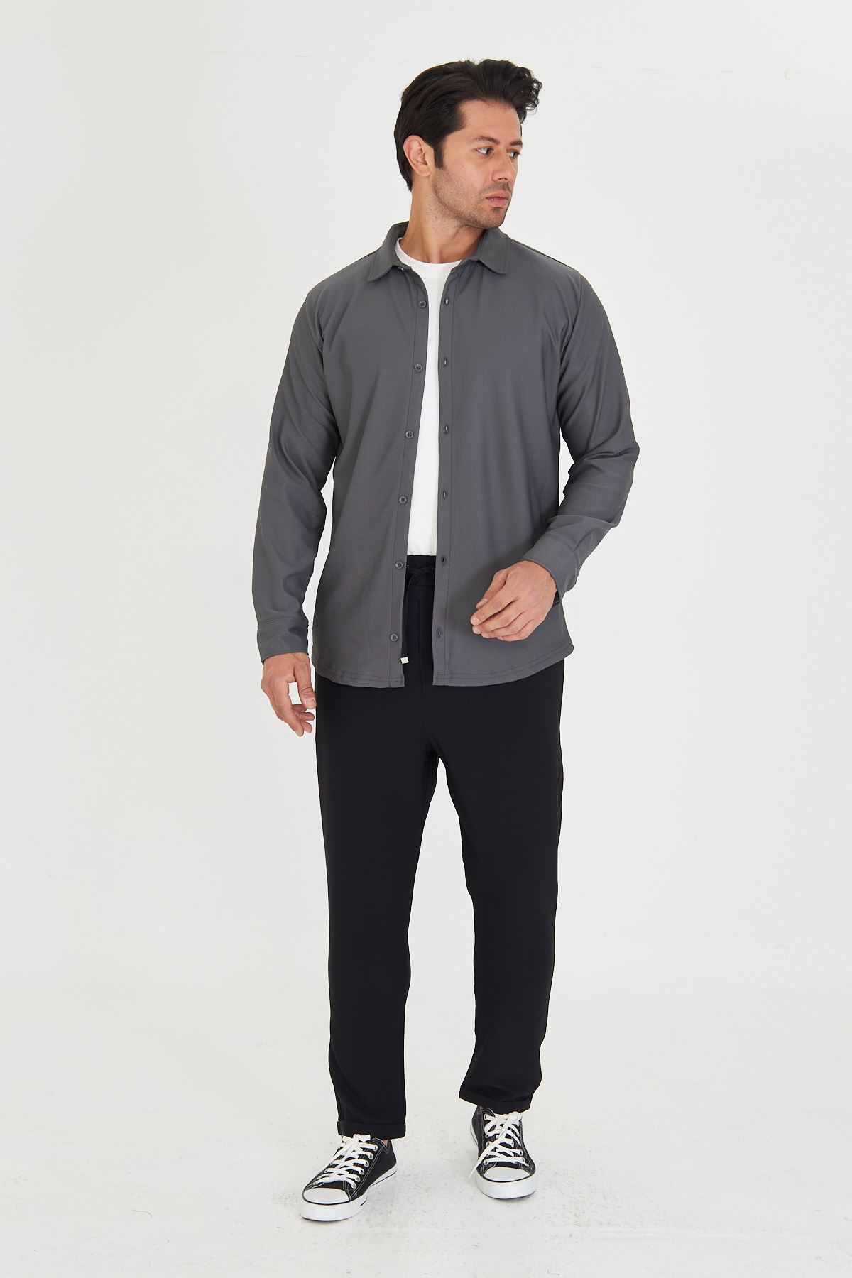 YENİ ÜRÜN Slim Fit Polar Erkek Gömlek Siyah