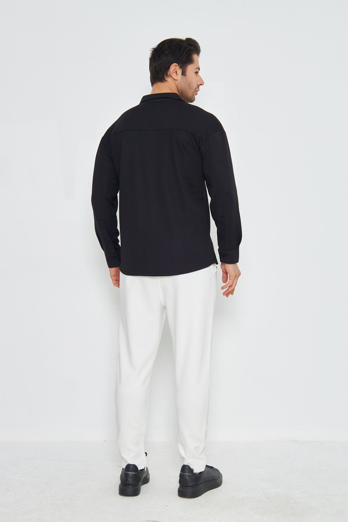 - Rahat ve şık bir görünüm için oversize kesim, uzun kollu ve apaçi yakalı gömlek tasarımı.; - Esnek yapısı sayesinde gün boyu konforlu bir kullanım sunar.; - Her yaş grubuna hitap eden, zamansız tarzıyla dikkat çeker.; - Basic koleksiyonun sadelik ve rahatlığı ön planda tutan parçasıdır.; - Klasik ortamlarda bile stil sahibi olmanızı sağlayacak zarif detaylara sahiptir.; - Sürdürülebilir malzemeler kullanılarak üretilmiş olup çevreye duyarlı bir tercih sunar.; - Düğmeli kapama şekli ile pratik giyip çıkarma imkanı sağlar; ütü gerektirmeden kolayca kombinlenebilir.; - Örme kumaşı sayesinde yumuşak dokunuşuyla teninizde hoş bir his bırakır.; - Standart boy uzunluğuyla farklı vücut tiplerine uyum sağlar.; - Dokulu deseniyle göz alıcı bir görünüm kazandırırken, her mevsime uygun esneklikte tasarlanmıştır.