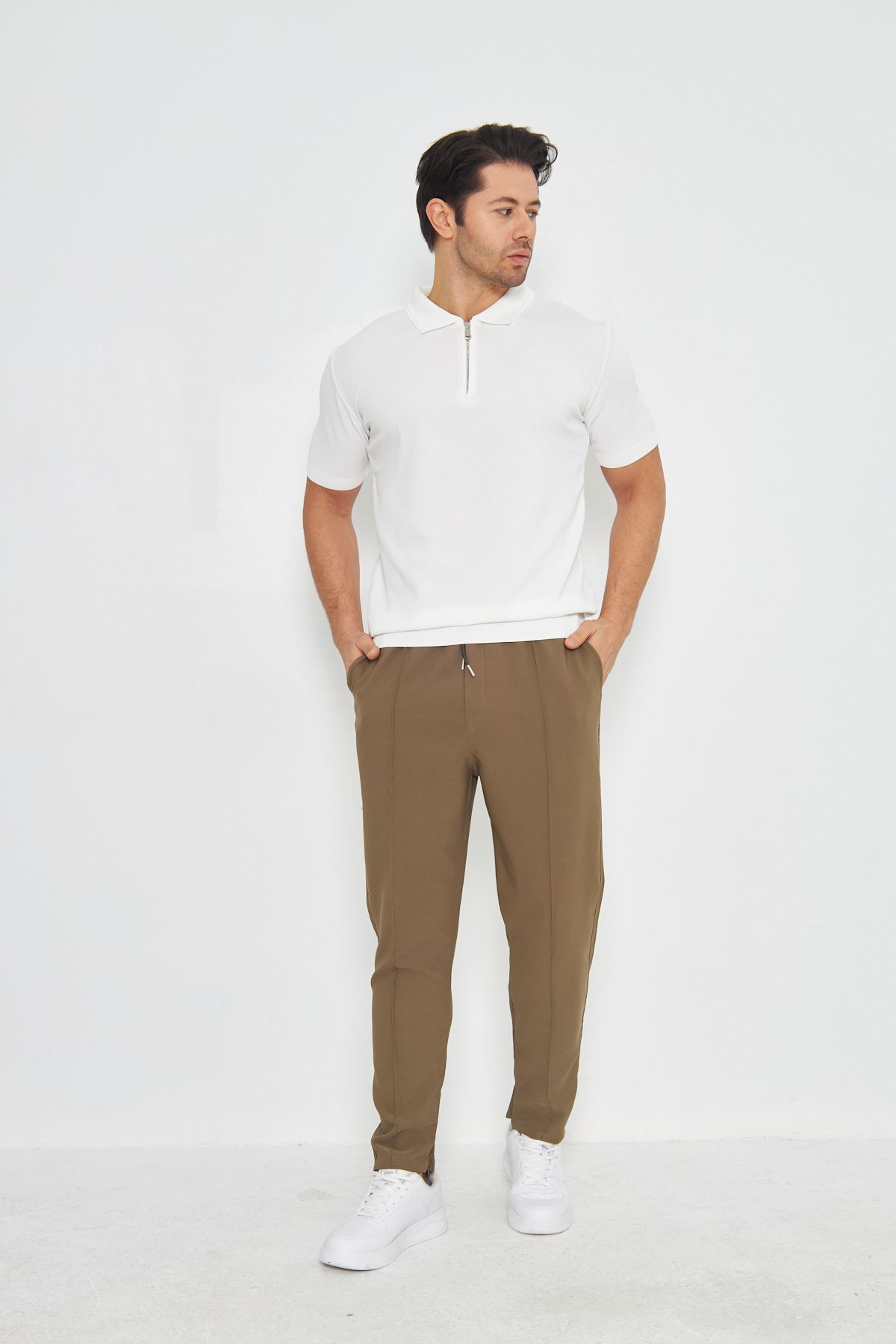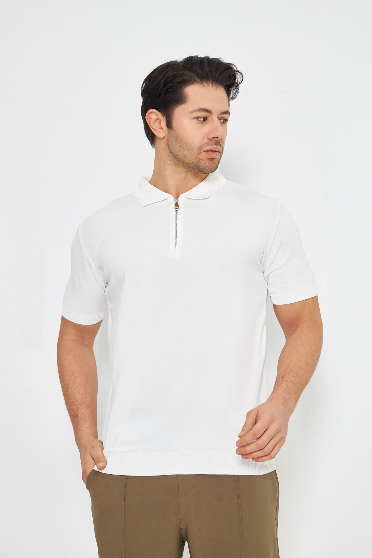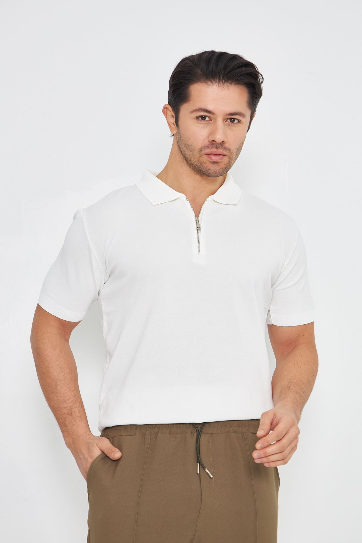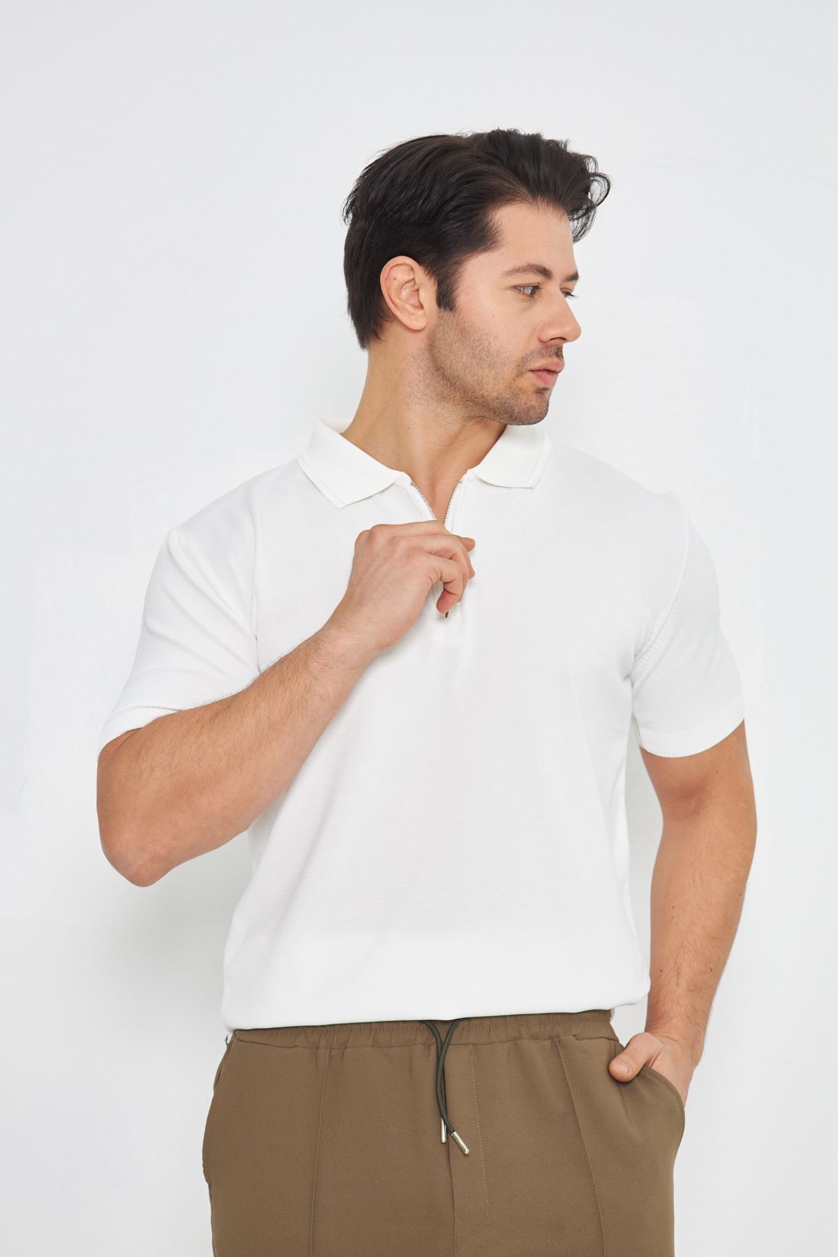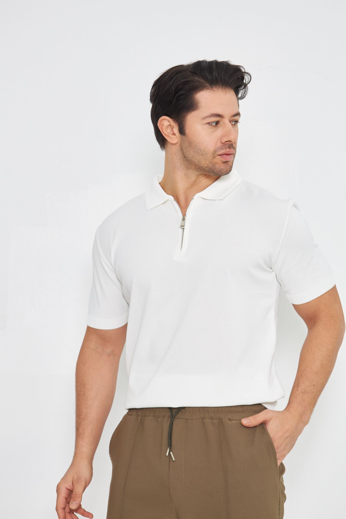 Erkek Yazlık Rahat Ve Trend Polo Yaka Ve Dikey Fermuarlı Klasik Kısa Kollu Kazak