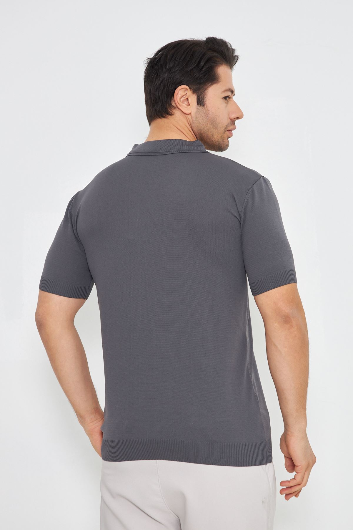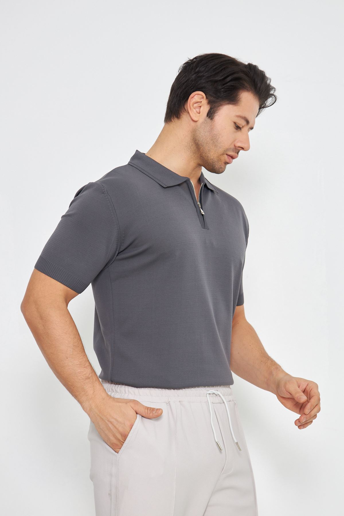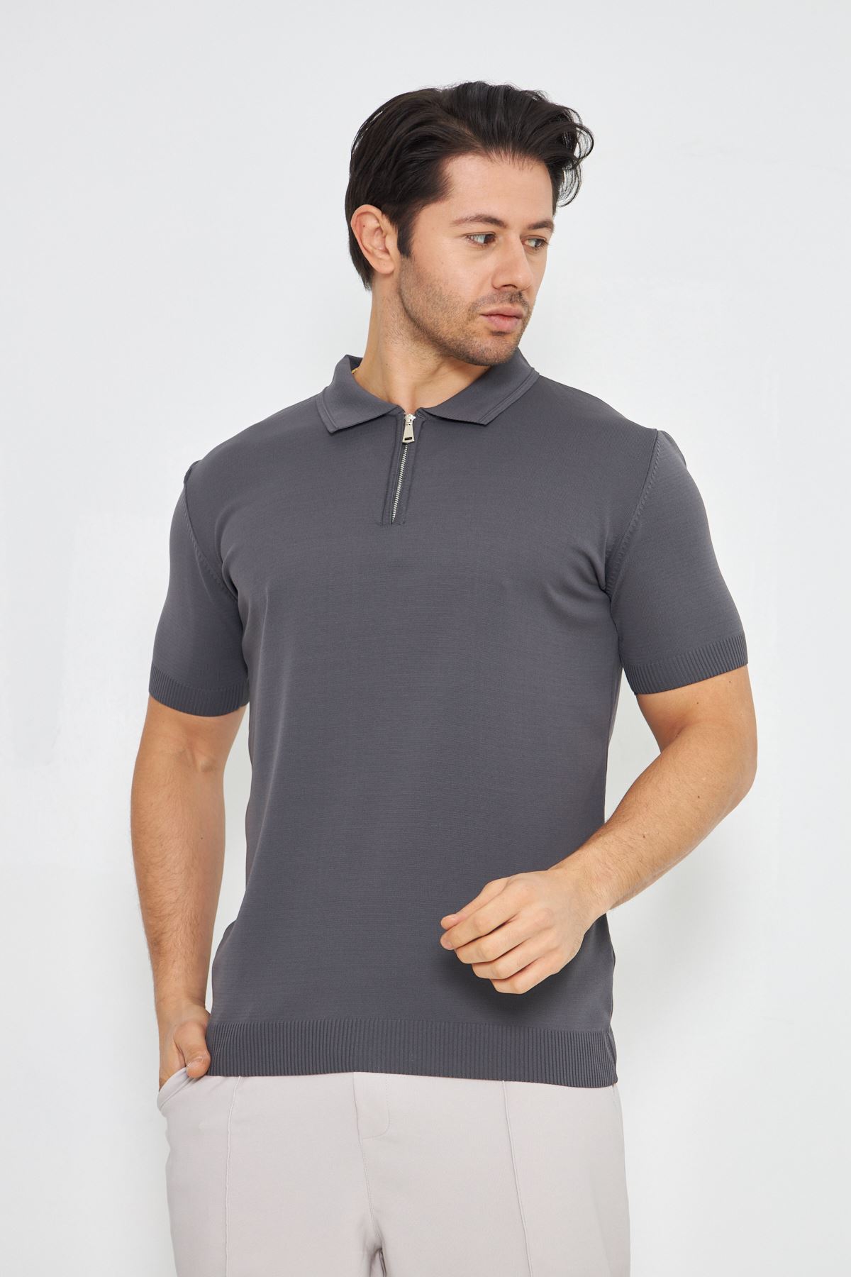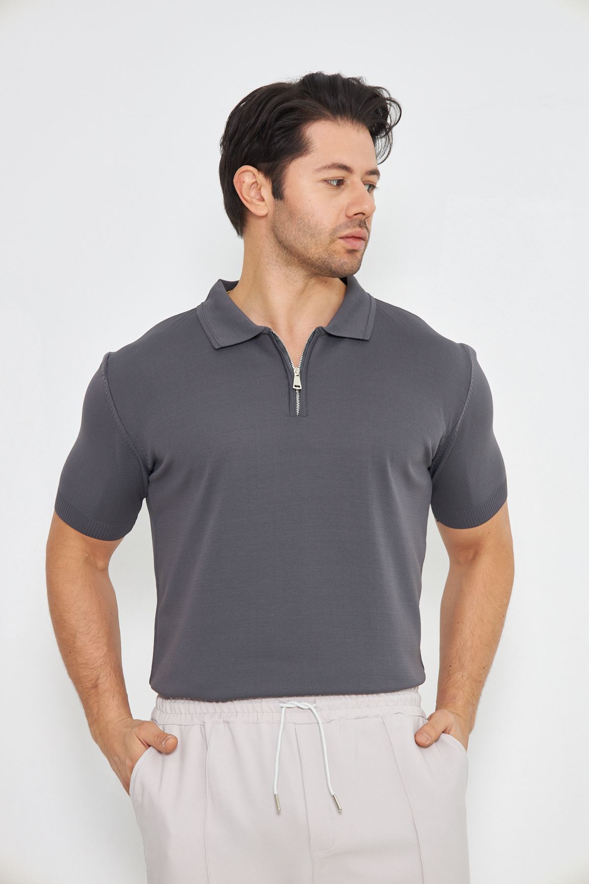 Erkek Yazlık Rahat Ve Trend Polo Yaka Ve Dikey Fermuarlı Klasik Kısa Kollu Kazak