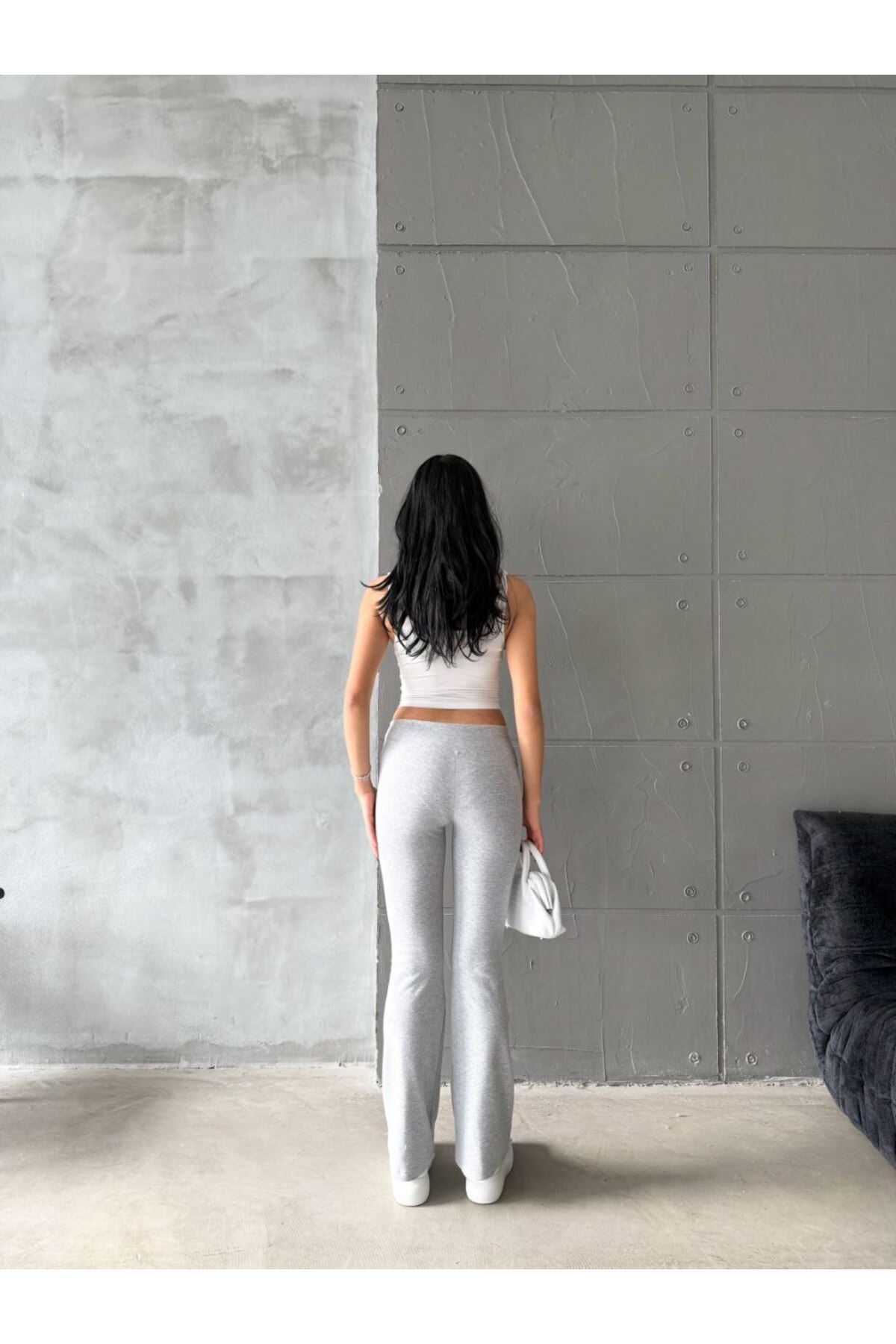 Kadın Gri Ispanyol Paça Normal Bel Likralı Toparlayıcı Tayt Pantolon Oys Marka