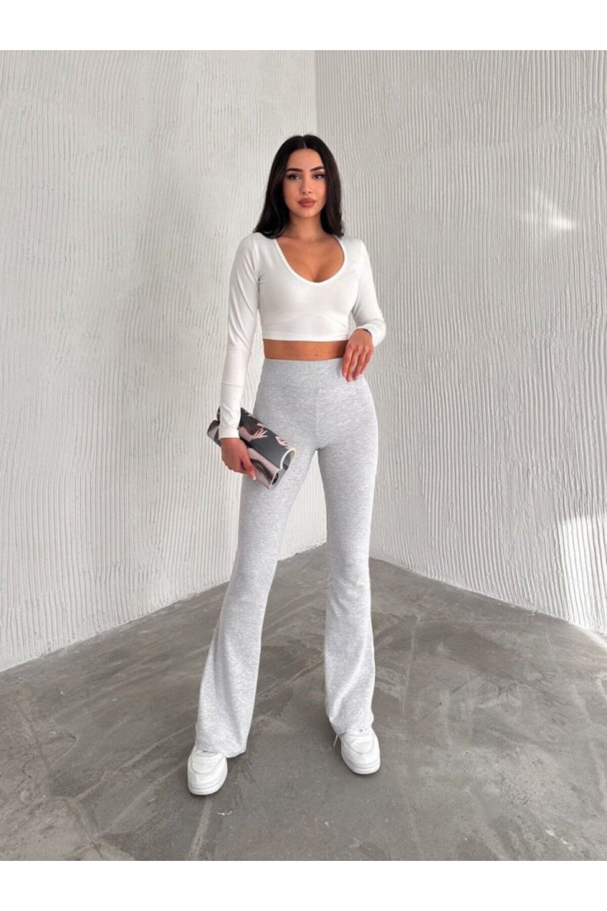 Kadın Ribana Kumaş Ispanyol Paça Yüksek Bel Pantolon Tayt