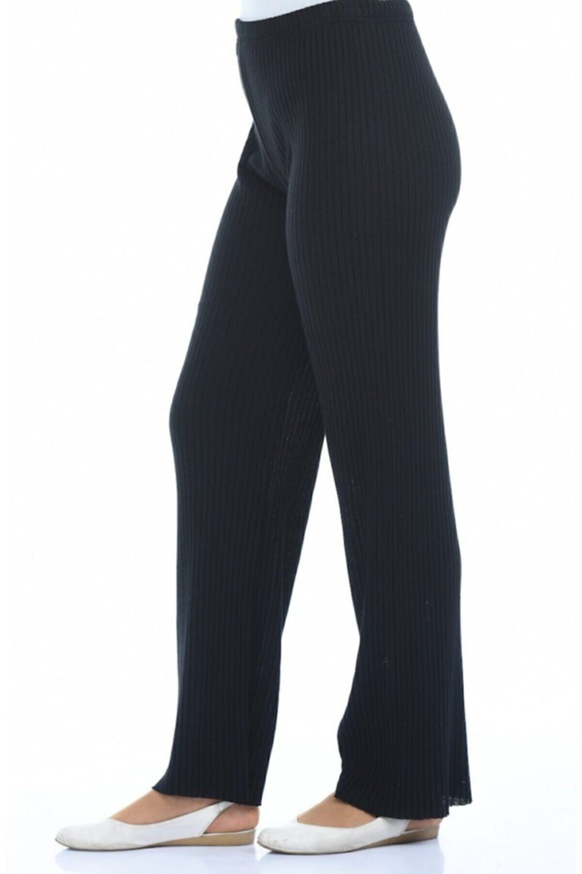 - Rahat kesimiyle gün boyu konfor sunan geniş paça siyah pantolon, hareket özgürlüğünüzü kısıtlamaz.; - Normal bel yüksekliği ve regular kalıp ile her vücut tipine uyum sağlar, şık bir görünüm kazandırır.; - Pamuklu dokusu sayesinde yumuşak bir dokunuş ve nefes alabilirlik sunar, cildinizin rahat etmesini sağlar.; - Tekli paket içeriğiyle pratik kullanım imkanı sunarken, cepli tasarımı küçük eşyalarınız için kolay erişim sağlar.; - Kaşkorse dokuma tipi ile dayanıklılık ve esneklik bir arada; uzun süreli kullanım için idealdir.; - Uzun paça boyu ve dokuma kumaş tipi ile mevsim geçişlerinde ideal bir tercih olurken, lastikli bel detayı konforu artırır.; - Günlük kullanım için ideal olan bu pantolon, rahatlığı ve şıklığı bir arada arayanlar için mükemmeldir.; - Siyah web rengiyle her zaman trend olan renk seçeneğiyle gardrobunuzdaki yerini alacak.; - %95 pamuk ve %5 likra materyal bileşeni sayesinde esneklik kazandırırken konforundan ödün vermez.; - T09 yıkama talimatına uygun şekilde bakım yapıldığında uzun ömürlü kullanım vaat eder.; - Tüm sezonlar için uygun yapısıyla yılın her zamanında giyilebilir; mevsim geçişlerinde de tercih edebilirsiniz.; - Kutu içinde değil, direkt olarak gönderim sağlanarak hızlı ve pratik bir alışveriş deneyimi sunulur.; - TR menşei garantisiyle yerli üretim kalitesini hissedin.