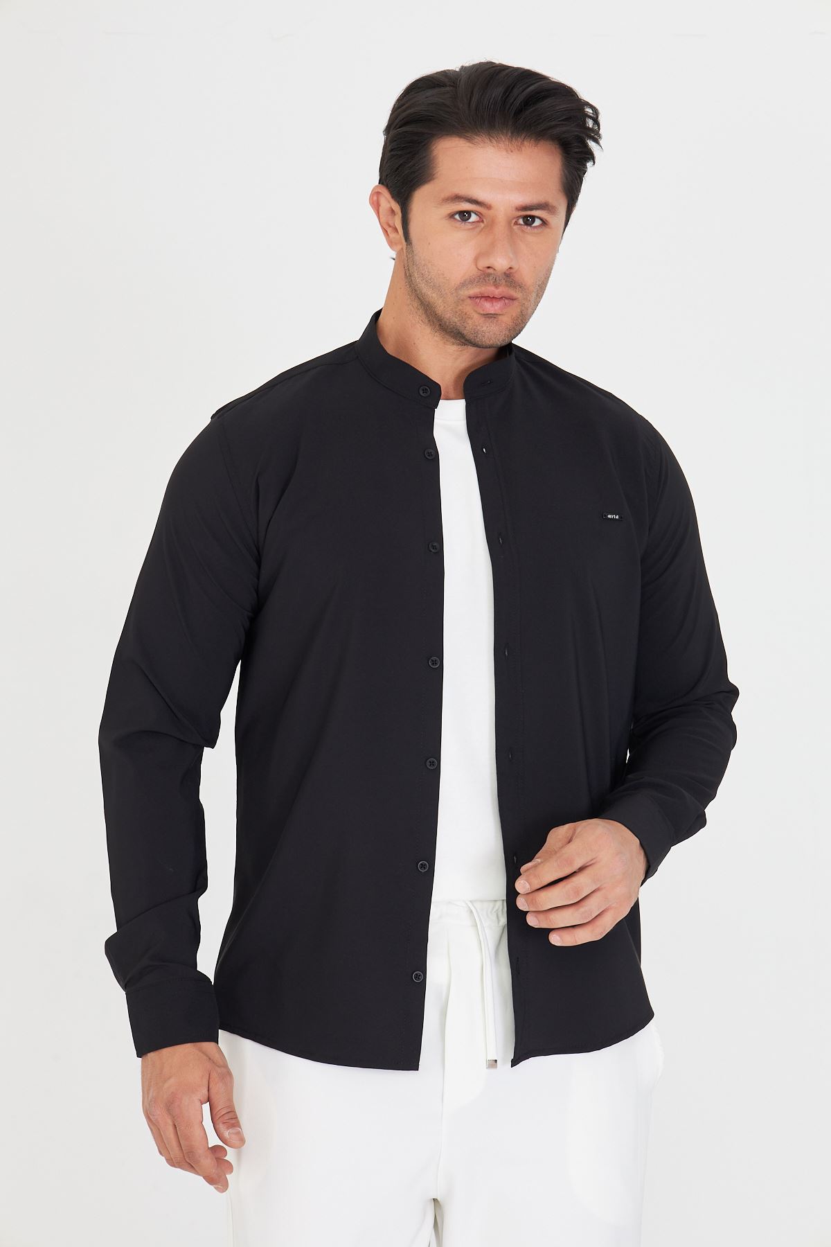 Slim Fit Hakim Yaka Erkek Gömlek Günlük Kullanıma Uygun